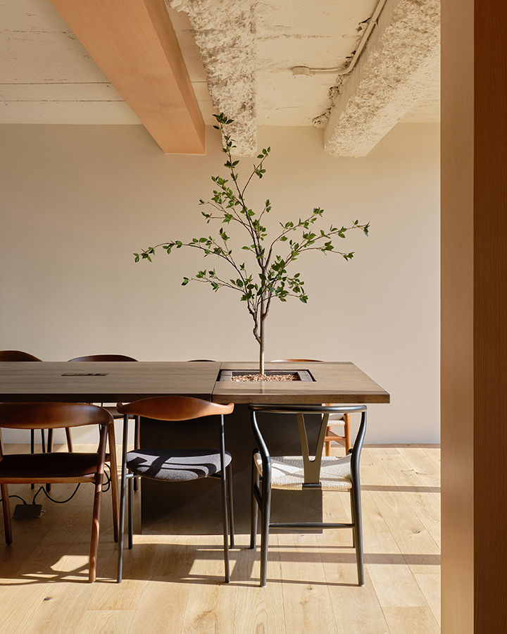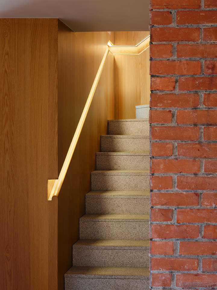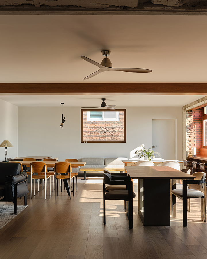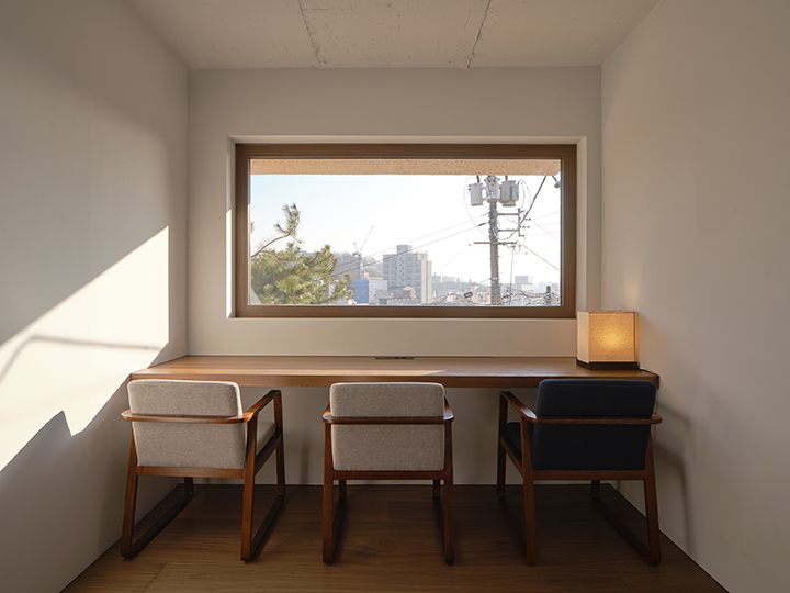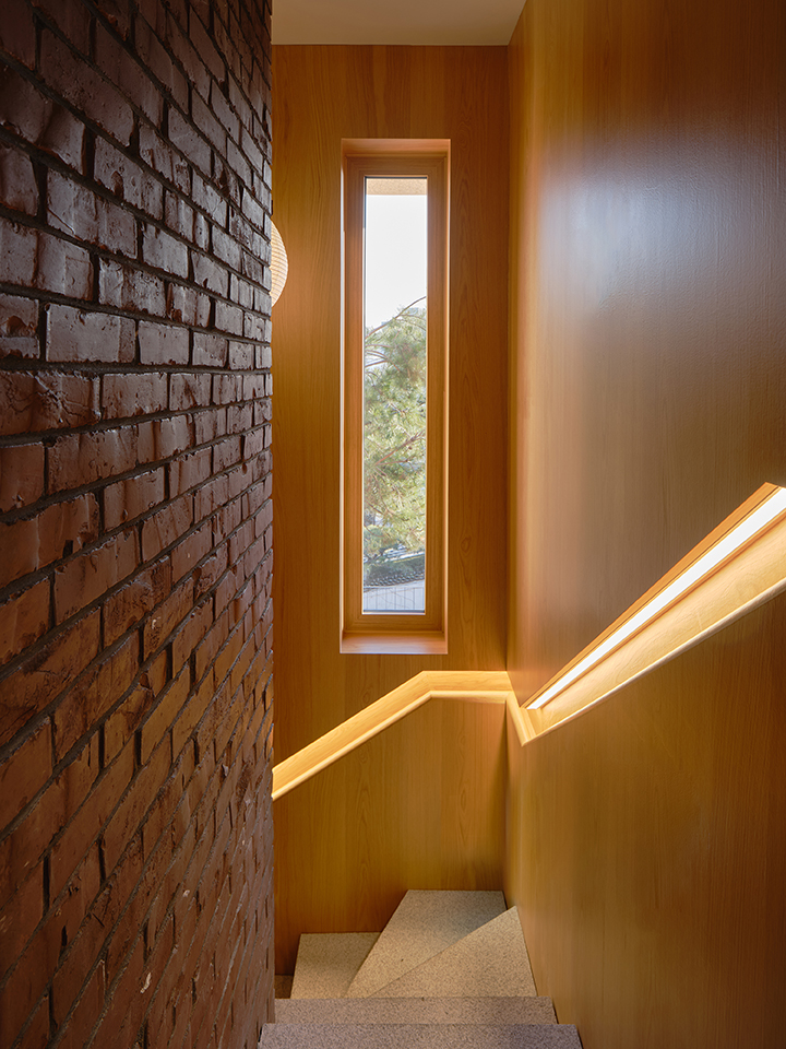 While accepting the red bricks, an element of the existing building, the beauty of the original building was preserved. In addition, the arrangement that accepts the incoming light as it is creates a comfortable mood. Also, we used veneer for most of the finishing materials, which has a double meaning that we focus on the essential rather than the outward splendor.