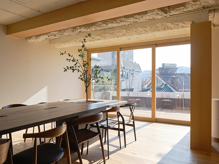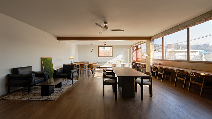 The stairs from the 1st floor to the 2nd floor play a role in connecting different moods and serve as a waist that shows the beauty of the existing building. Vonzrr provides comfort to visitors by eliminating artificial things as much as possible, minimizing the individuality of the space, and providing various seating arrangements. It was designed and designed by imagining a space where you are invited to someone's house and take a break. This allowed Vonzrr to focus on the essentials of enjoying a coffee, having a conversation, and working quietly.