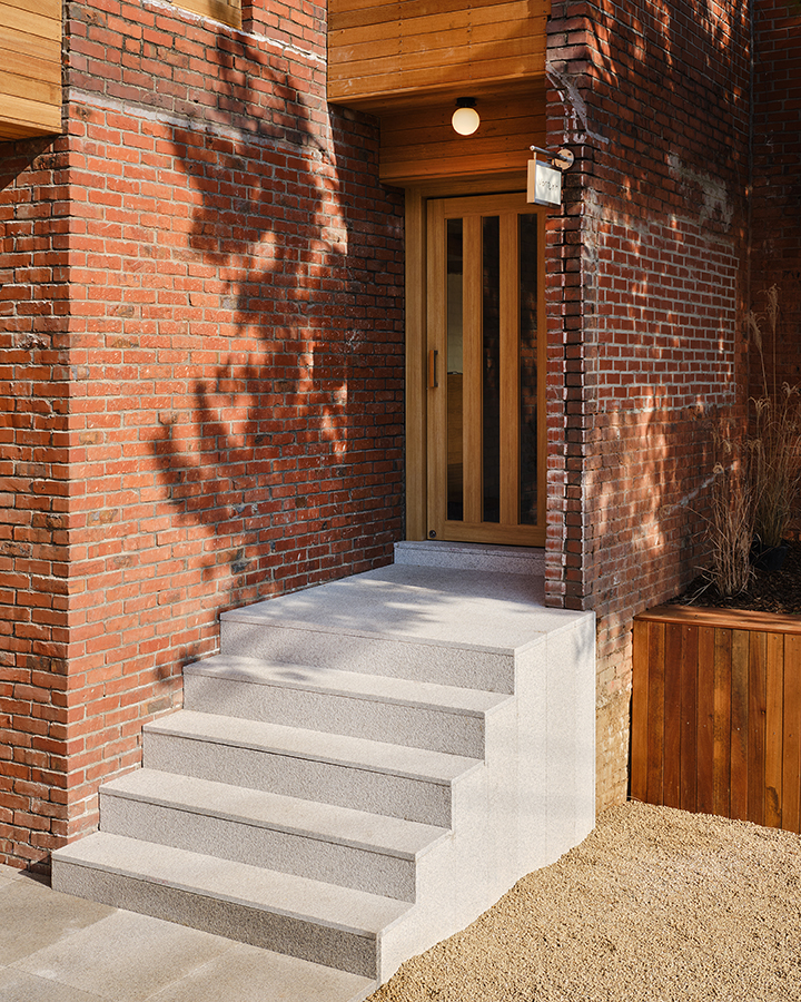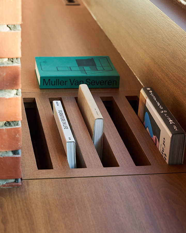 기존 건물의 한 요소인 붉은 벽돌을 수용하면서도 본래 건물의 아름다움을 살렸고, 들어오는 빛을 그대로 받아들이는 배치가 편안한 분위기를 연출합니다. 또한 대부분의 마감재에 무늬목을 사용했는데, 이는 외형적인 화려함보다 본질적인 것을 중시해야한다는 반어적 의미를 내포하고 있습니다. 1층에서 2층으로 올라가는 계단은 서로 다른 분위기를 연결하는 역할을 하며 기존 건물의 아름다움을 보여주는 허리 역할을 합니다. Vonzrr는 인위적인 것을 최대한 배제하고 공간의 개성을 최소화하며 다양한 좌석 배치를 제공하여 방문객에게 편안함을 제공합니다. 누군가의 집에 초대되어 잠시 쉬어가는 공간을 상상하며 디자인하였습니다. 이를 통해 Vonzrr는 커피를 즐기고, 대화를 나누고, 조용히 일하는 데 필수적인 요소에 집중할 수 있었습니다.