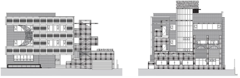 The most important part that we gave a lot of thought to from the initial stage of green remodeling was planning the floor and outer surface of the building in an energy-saving way. First, the large glass windows were removed considering the design of the elevation, and insulation was added to the exterior walls, roof, and the lowest floor to prevent conduction heat less from the exterior. As for the glass windows, triple glass system windows that can secure insulation and airtight performance were applied. Furthermore, water leakage in the multipurpose room on the basement floor, the third-floor hall, and the daycare and machine rooms, which had leakage when it rained, have been improved. Moreover, a heat recovery type ventilation system was installed in each room to secure indoor air quality.