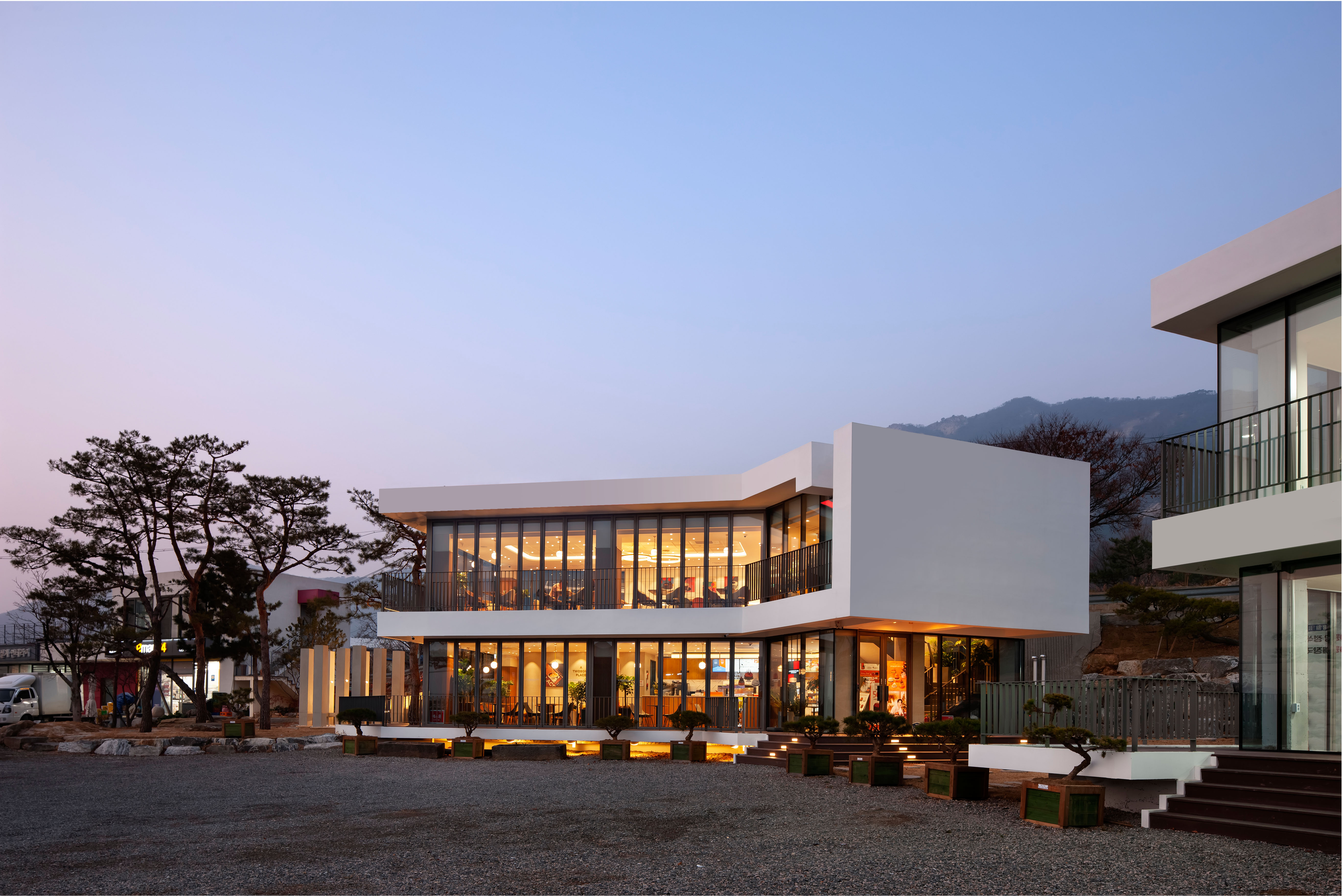 This project is a simple project to plan a coffee shop, a Korean restaurant, as well as an accommodation and lounge for employees on two sites facing the coastal road at the southern end of Ganghwado Island. Initially, the client commissioned to design a private brand coffee shop and Korean restaurant, and planned the interior, but the business direction changed and the interior was constructed with a brand manual. We planned gifts for customers to visit, both on the inside and outside, but it is a project that leaves us regretful that we only set up the outer surface.