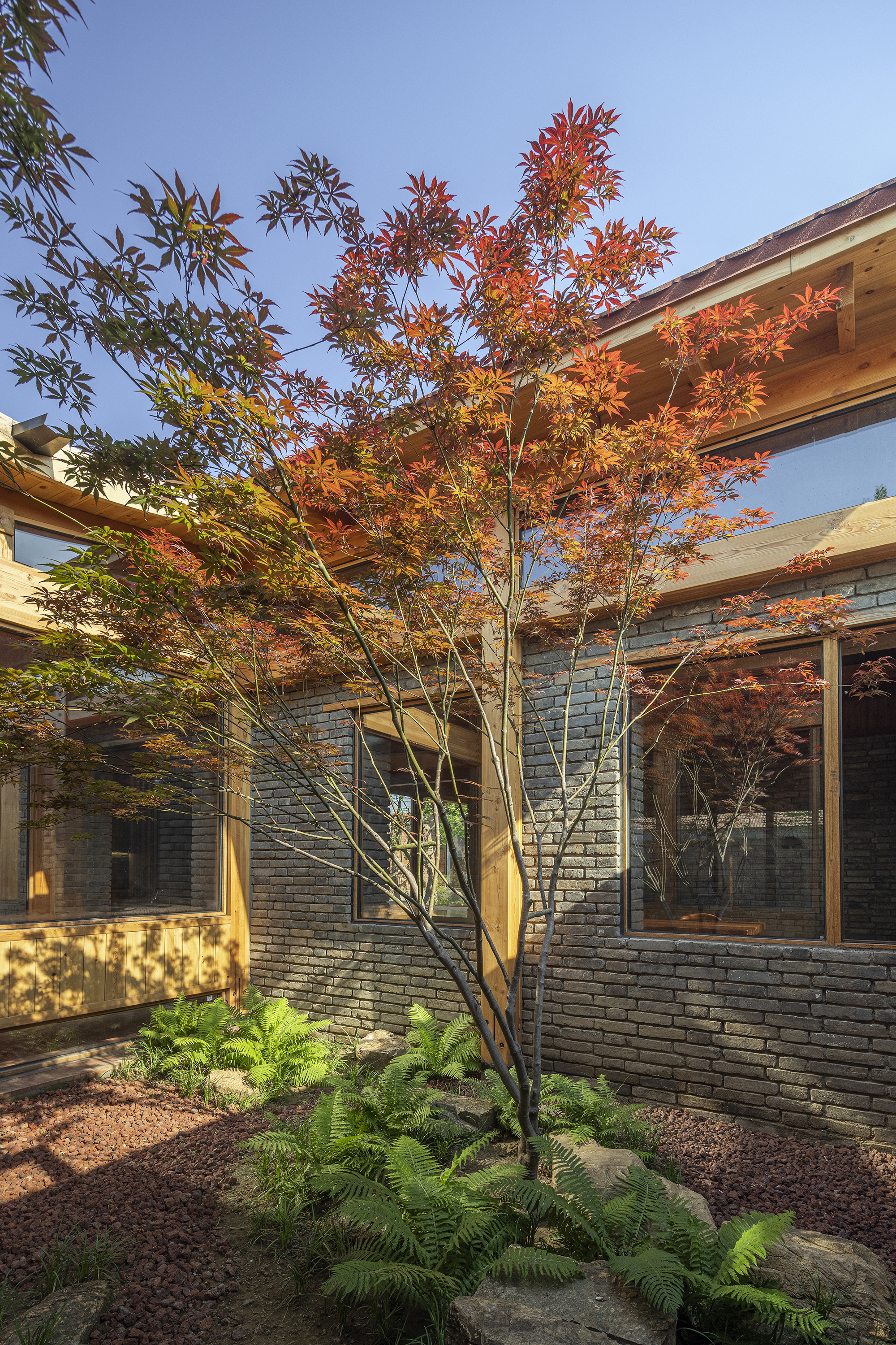 The project is the transformation of a courtyard house in the village. The client, who currently lives in the downtown area, hoped to create a family vacation home and a venue for gathering with friends. As approaching this project, ARCHSTUDIO intended to present an architectural status that mixes the old and new, and to build a connection between the project and the built landscape of the village. The goal was to let the renovated architecture integrate into the village with a low-profile gesture, and meanwhile to create a rich and natural small world inside the courtyard house. The original spatial pattern featuring one front yard and one back yard are reorganized, to form six yards with different scales, landscapes and functions. The front yard is set at the southwest core of the site. Opening the metal gate, a bamboo path leads the occupants to the building entrance. Pushing the door and entering the foyer, a courtyard with a maple tree comes into view. The maple tree displays the colors of nature in different seasons and becomes a highlighted view between the living room and the dining room. Space set aside between the living room and the south enclosure wall forms a side yard, where trees and stones are set. In sunny days, the folding doors of the living room can be completely opened, to extend the yard into the interior.