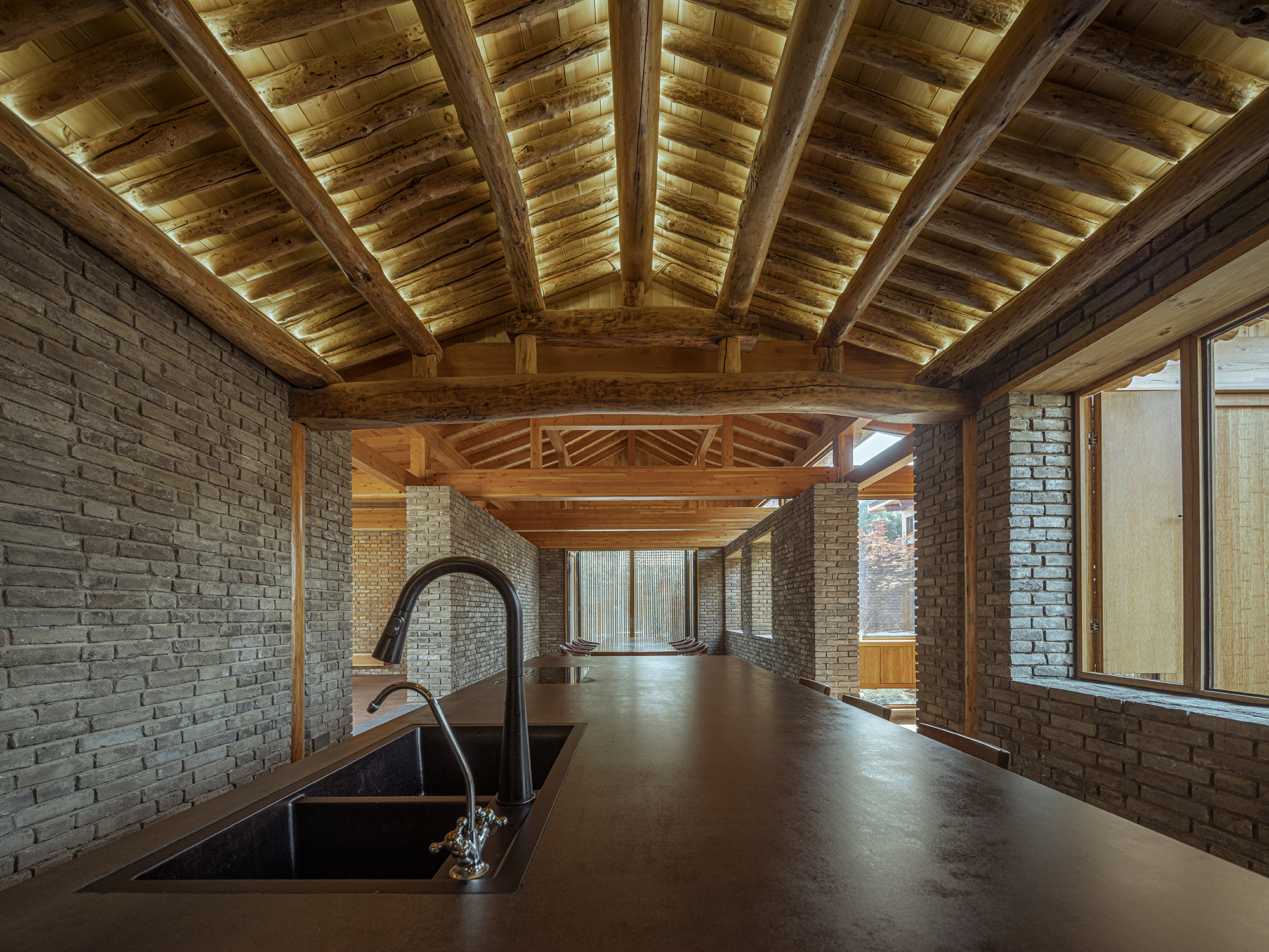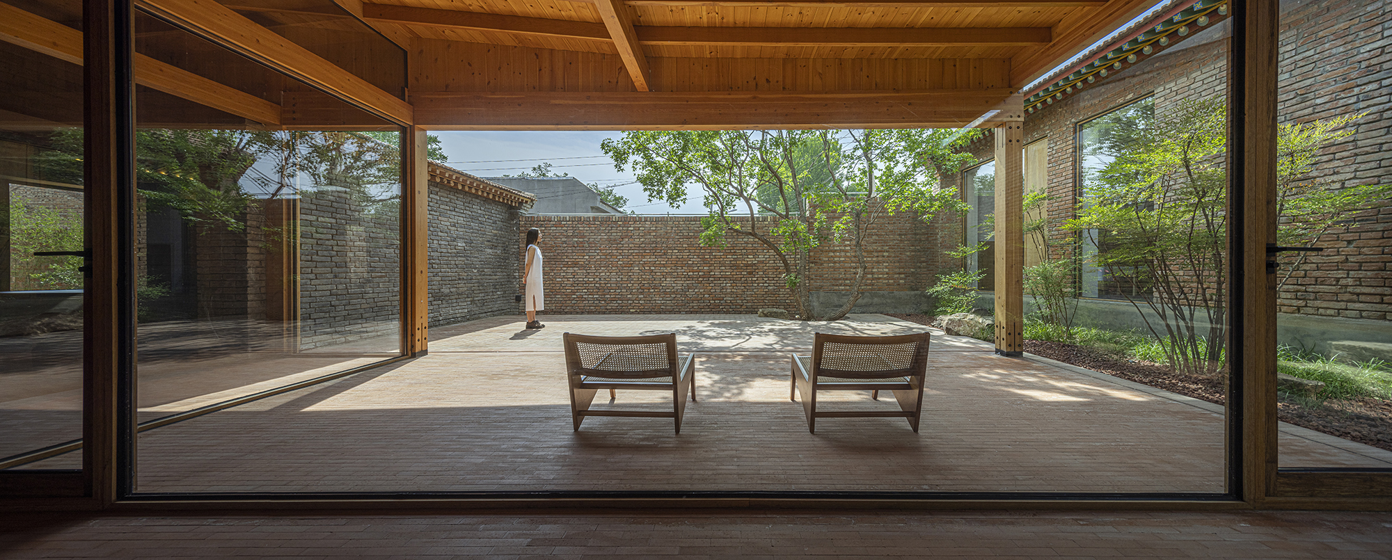 The project is located an ordinary village on the outskirts of Beijing, a typical plain-based northern Chinese village mainly composed of one- and two- storey courtyard houses. Most houses in the village face south and feature red bricks and tiles. Besides, there are also various added constructions built independently by local villagers for meeting their changing living needs, such as shanties with colored-steel roof or glass roof, which blend with the natural fabrics of the village.