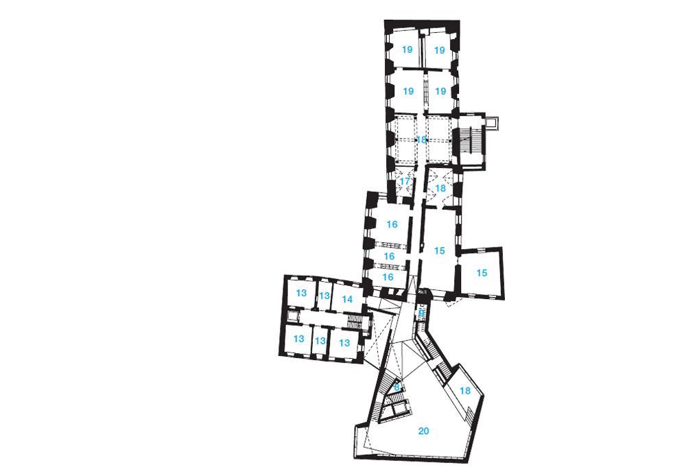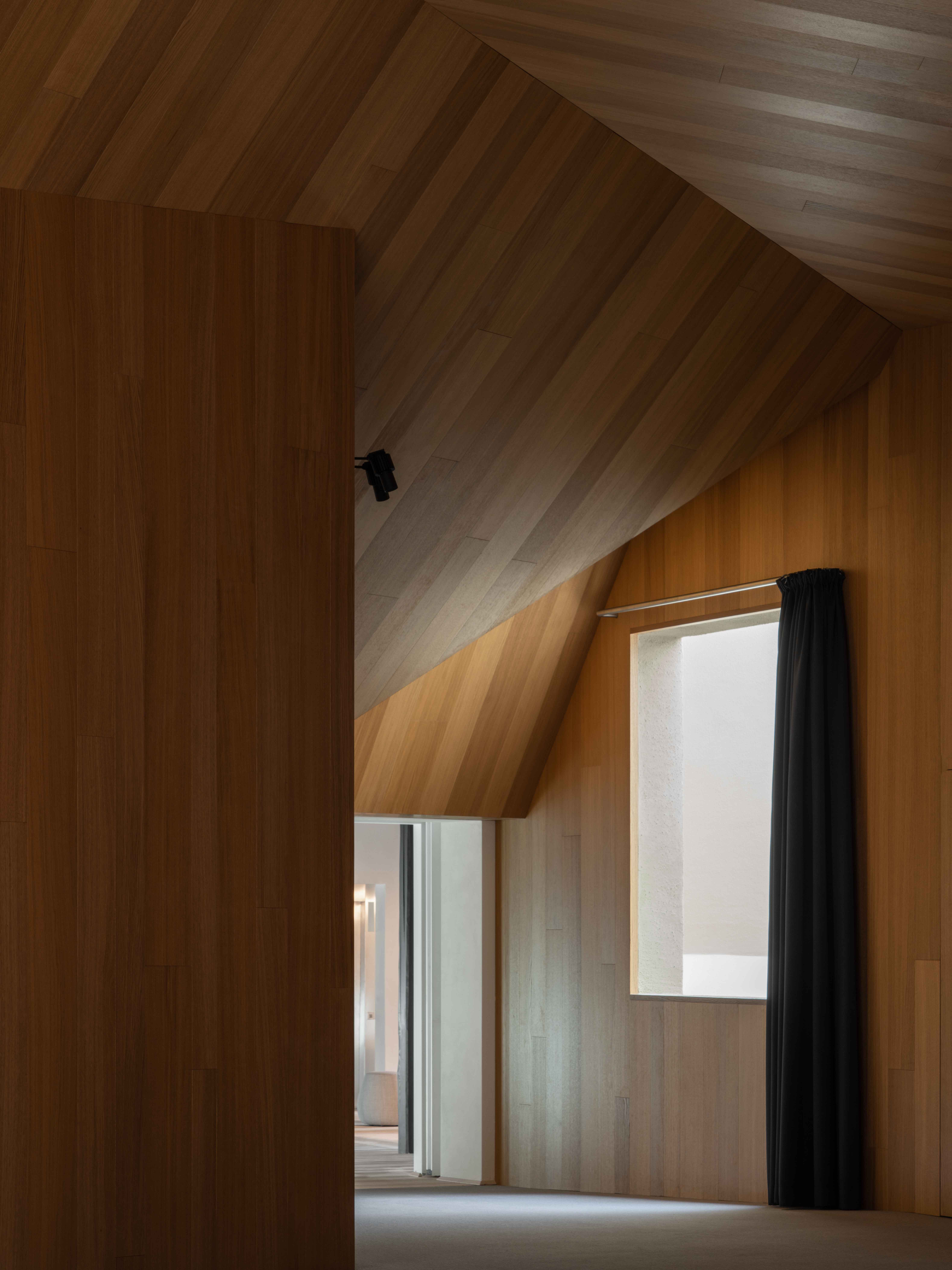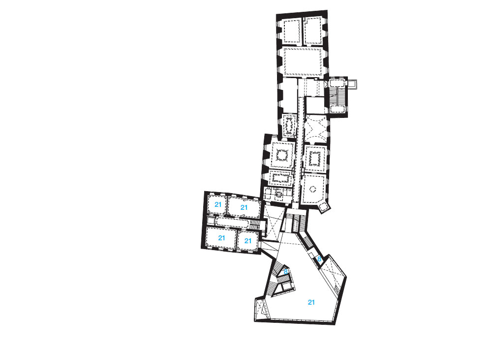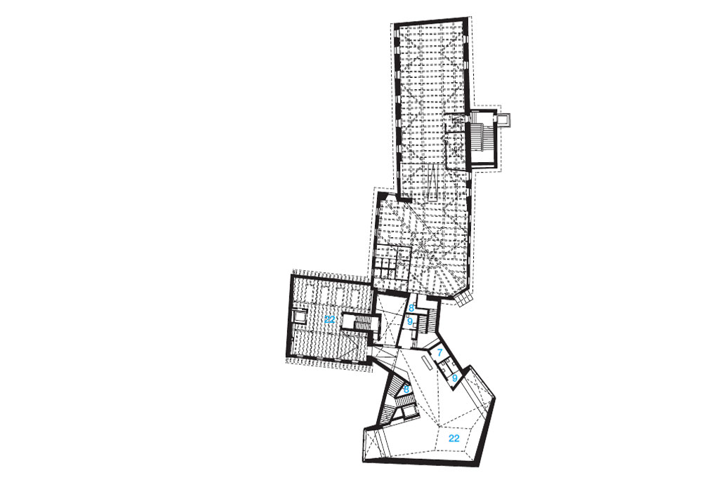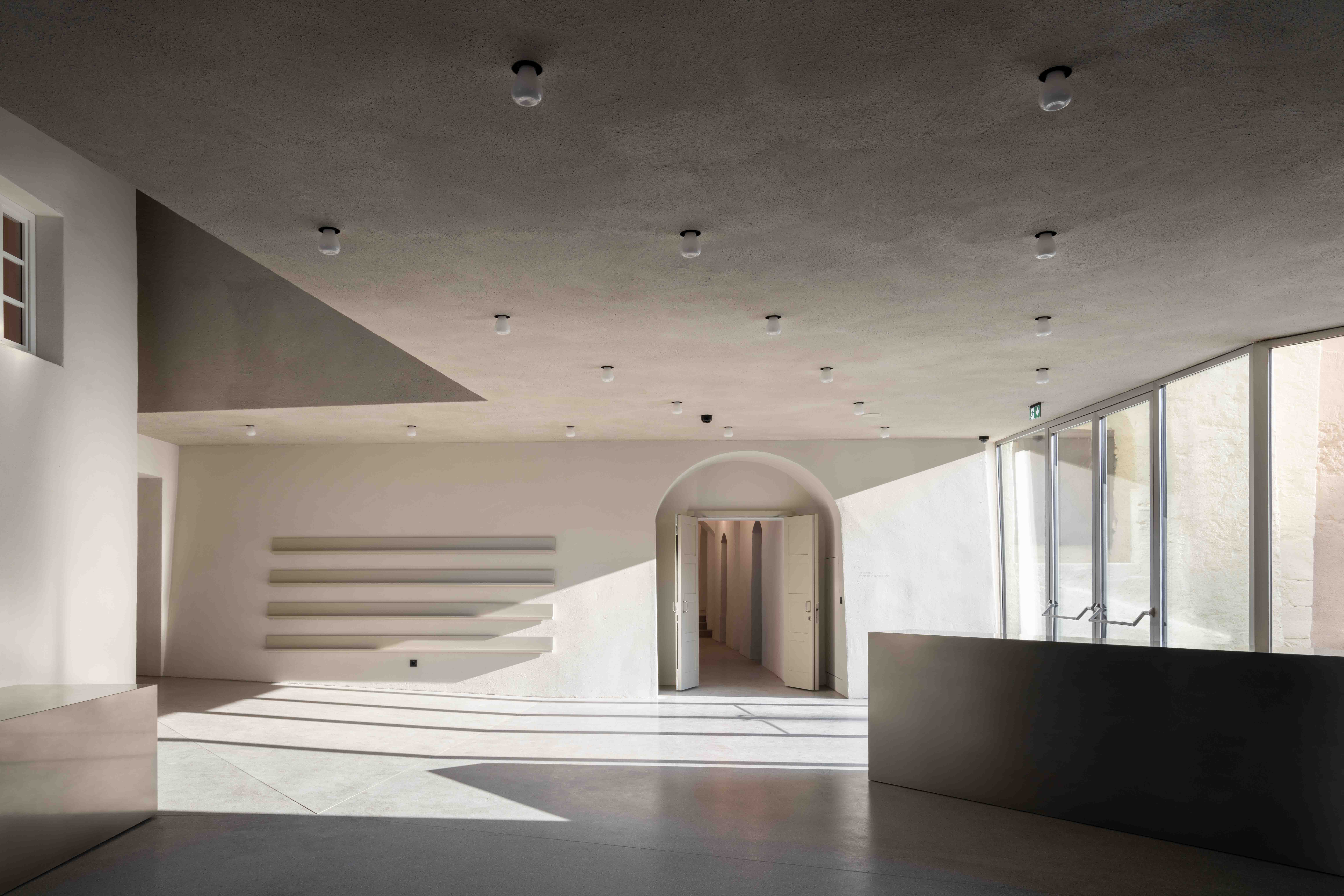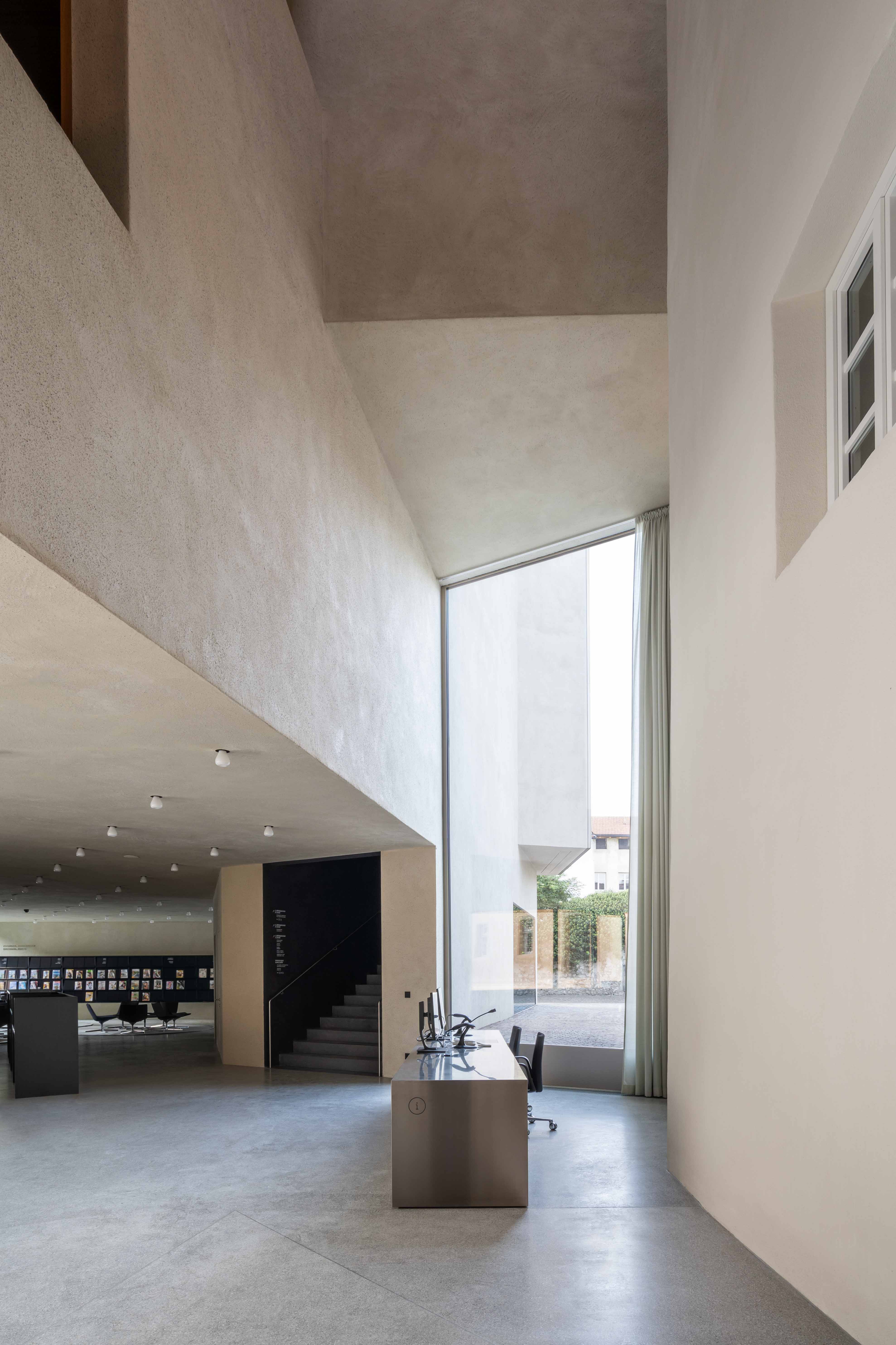 Planting itself silently and extremely respectfully into its surroundings, the intervention is located south of the Ex Court, in the void generated between two existing buildings, where, before the demolition, there was a lot belonging to the Diocese. A real connecting infrastructure, the new building behaves structurally like a “tree” that leans its cement “branches” towards the buildings of the Ex Finance and the Ex Court, establishing a perpetual relationship between new and old, and inspiring the architects to rename the project, “Kulturbaum, tree of culture”. Access to the new building is from the ground floor through the infotheque. From here, a generous quadruple height space, occupied by the reception area, grants access to the lifts.