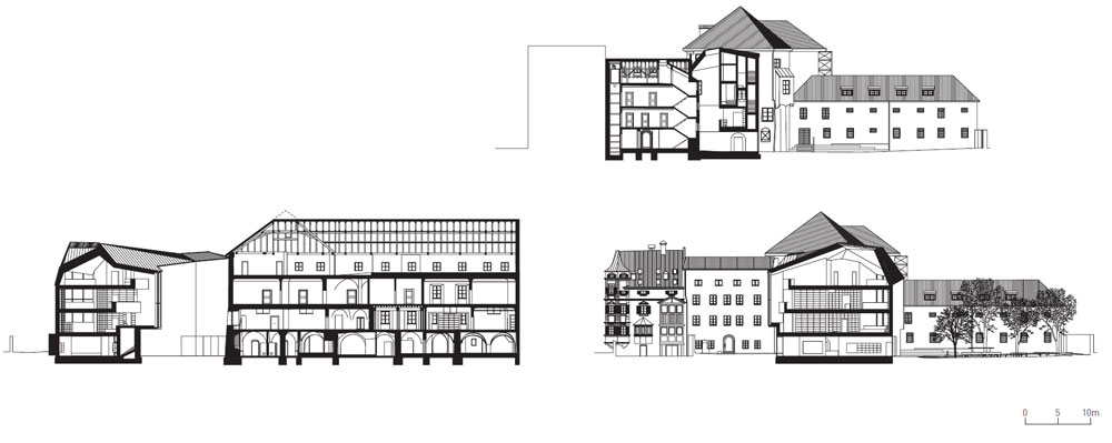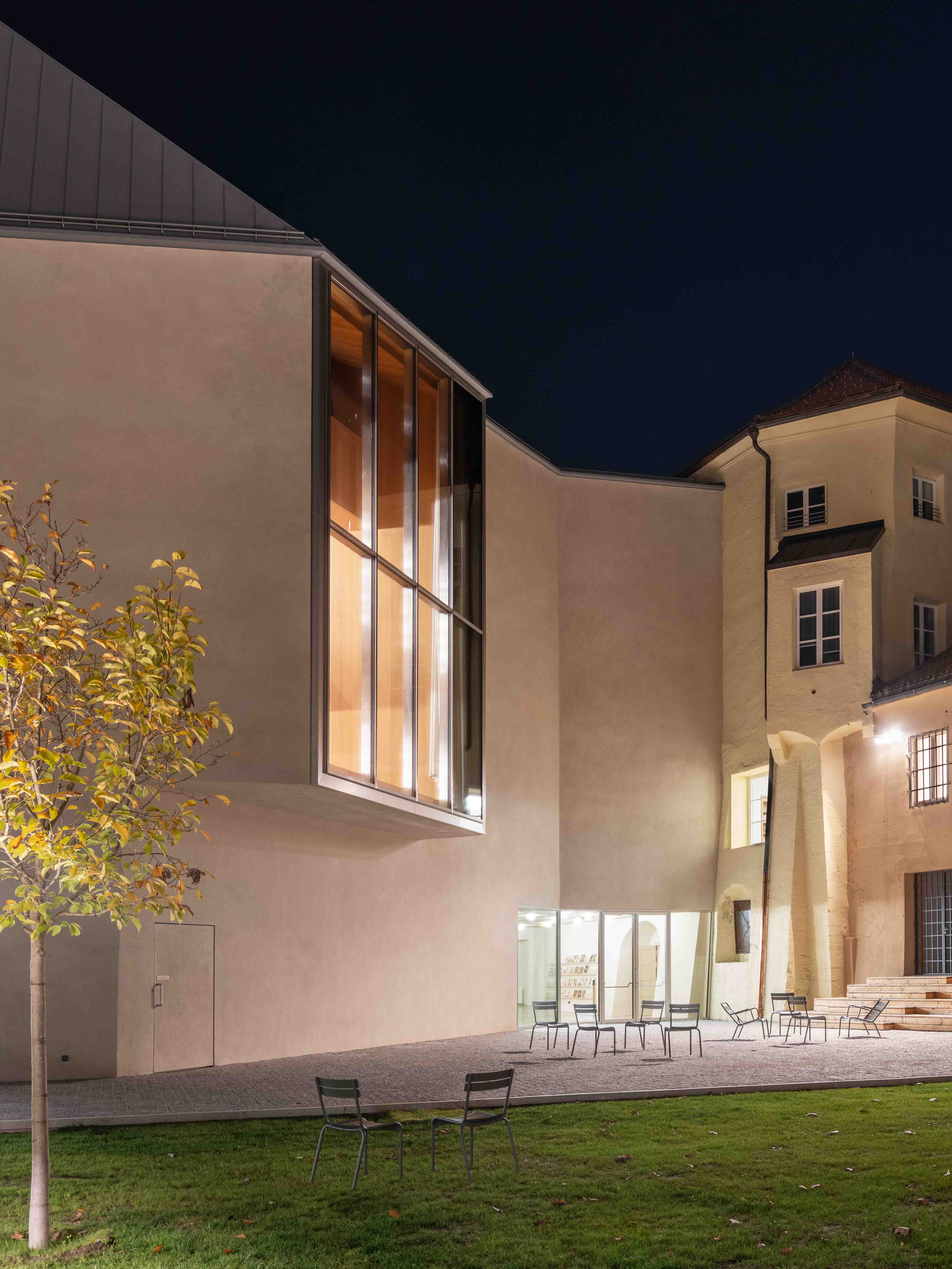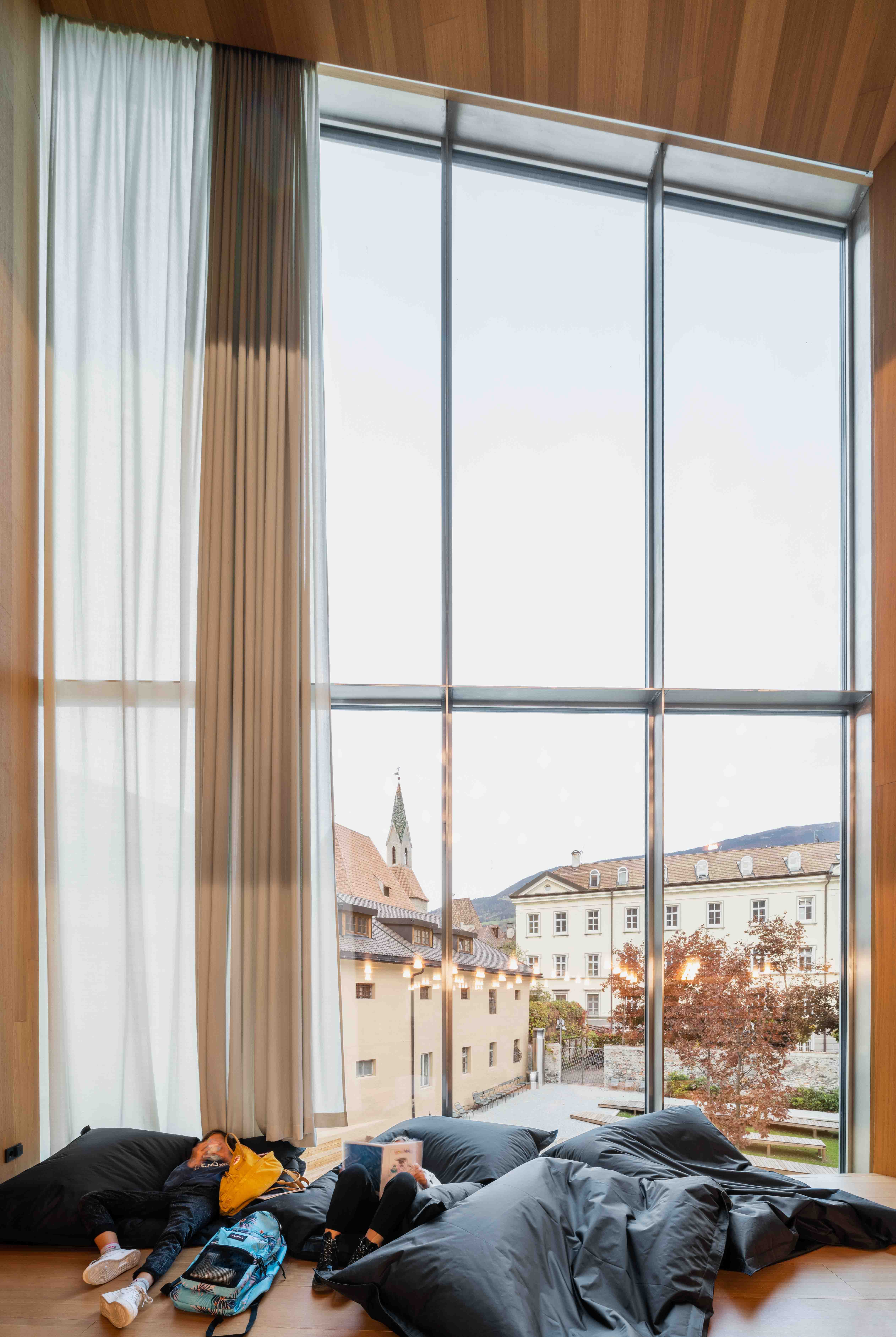 The main components of the context have been reinterpreted in a contemporary key, such as the characteristic “erker”? typical bow windows that characterize the historic center. Two of these, of a giant order, favor strategic views: the building overlooks the two main areas of Brixen, the White Tower and the bell tower of the Cathedral on one side, and the Bishop’s Palace on the other, tracing a line of continuity with the city’s landmarks and most iconic elements. The large windows, which trace the boundary between inside and outside, have been designed to favor indirect light at the points where there is the greatest flux and concentration of people. Finally, two large skylights placed at the top of the complex pitched roof allow the sun’s rays to cross the entire height of the building and reach the ground floor, thanks to an articulated system of retraction of the different floors, which plays a fundamental role in the introspection system between them. The new Brixen Public Library intensifies the close relationship between architecture and context. Its formal outcome is a public venue, inspired by the architectural characteristics of Brixen, where the new feeds the old and vice versa, restoring exceptional architecture capable of interweaving historical and contemporary fabric.
