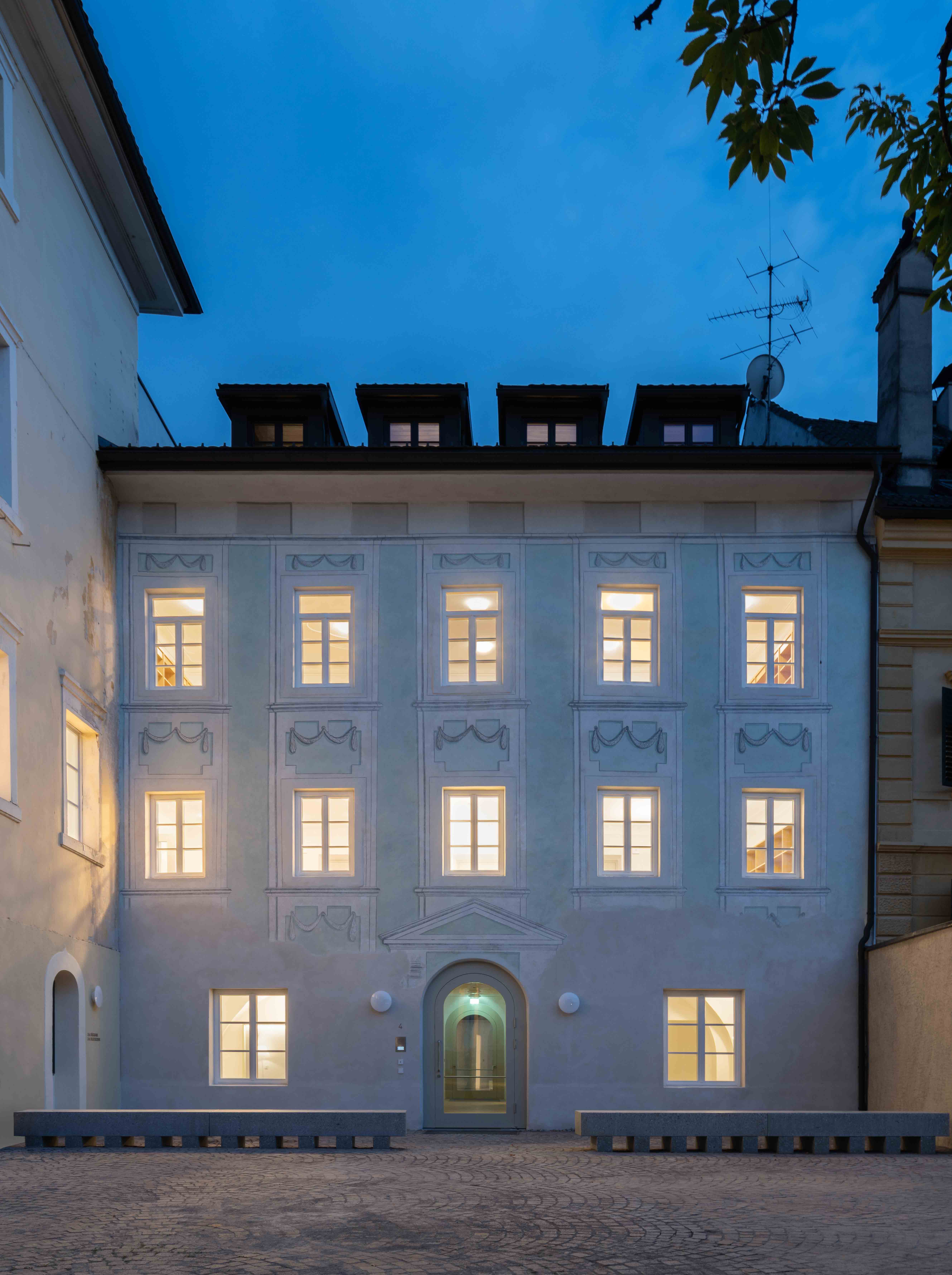 Cooperation (Lighting consultant) Von Lutz Studio Associato / (Acoustic consultant) Nira Consulting_project phase, Studio Architetto Eleonora Strada_construction phase / (External doors and windows) Askeen / (Suppliers) Nerobutto_restoration and special paints, Boden Service_concrete floors, Seeber_wood and carpet flooring, Inoxferdi_blacksmith work, Falegnameria Longato_carpentry / (Furniture) Erlacher_custom furniture, Arte_furniture in series, Serima_infographics and signage