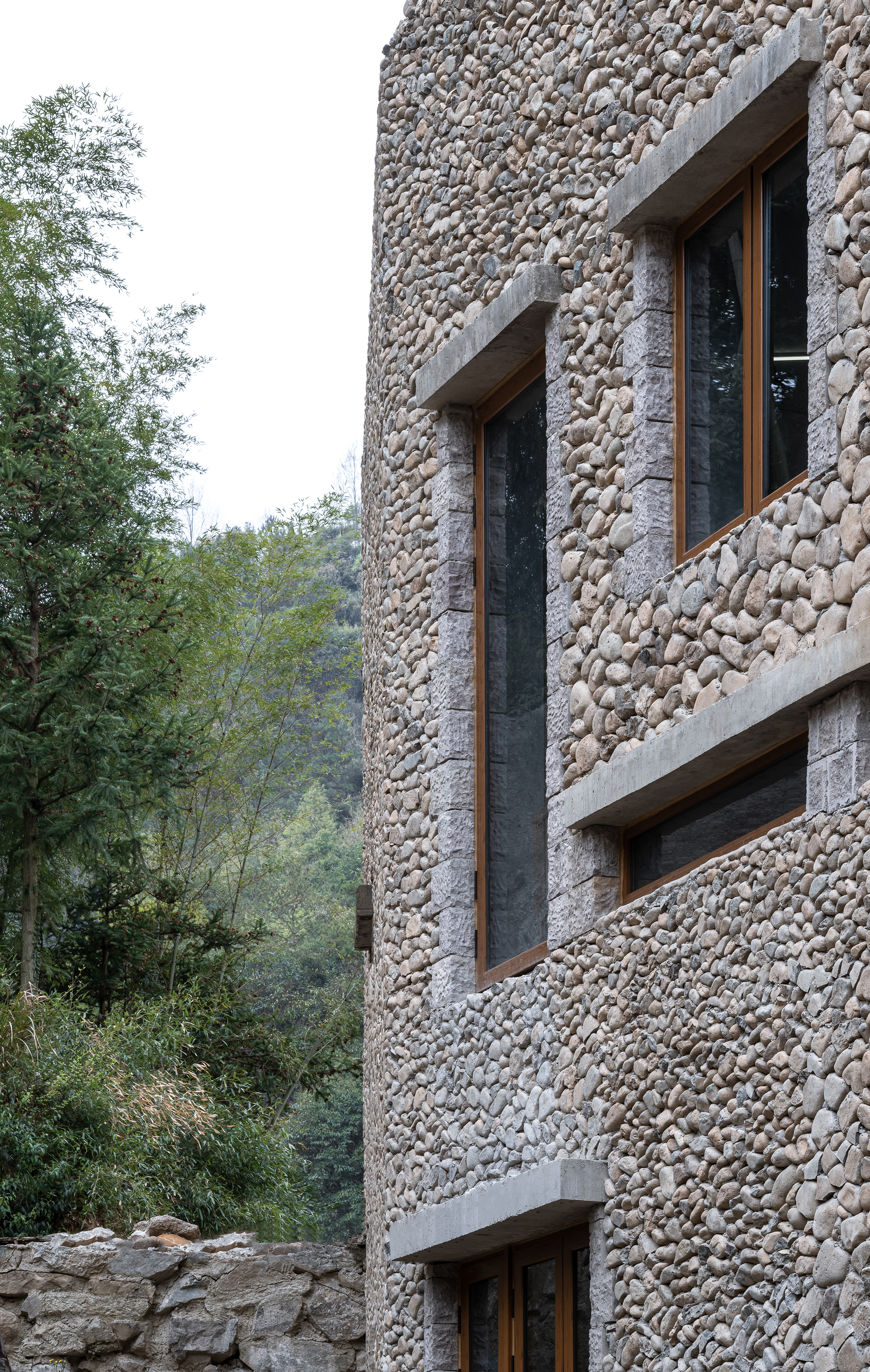 이번 프로젝트의 주요 설계 원칙은 자연을 존중하고, 환경과 조화를 이루는 것이다. 이 프로젝트는 산과 물이 가까운 아름다운 계단식 밭에 자리 잡고 있다. 외부 공간은 대지의 지형과 자연환경에 맞추어 지어졌다. 건물의 실루엣은 지형과 조화를 이루도록 계단식으로 지어졌다. 또한, 옥상에는 농작물을 심어 주변의 계단식 밭과 조화를 이룬다. 내부 공간은 외부 형태를 따라 만들어졌다. 불규칙한 벽과 엇갈린 지붕은 시골에서 볼 수 있는 다양한 골목처럼 공간마다 독특하고 다양한 변화로 가득하게 한다. 자연광이 창문과 채광창을 뚫고 벽과 바닥을 비추고, 공간마다 다양한 장면을 연출한다. 건설 과정에서 지역 재료를 선택하여 최대한 활용했다. 지역 내 경험이 풍부한 석공을 고용하고, 현지 자연석을 사용해 건물을 지었으며, 계단식 밭이라는 독특한 특징을 보여주고 있다. 단순한 기술과 방법을 사용해 건물 전체의 질감과 형태가 주변의 계단식 밭과 산과 함께 조화를 이룬다. 돌로 된 창틀과 물방울 가장자리 같은 디테일에는 장인의 세심함을 볼 수 있다. 실내 공간을 위해 선택된 재료는 질감을 그대로 드러낸다. 노출 콘크리트 천장, 흰색 규조토 벽, 나무색 문과 창을 통해 시골 건축의 원시적인 미학을 표현한다.