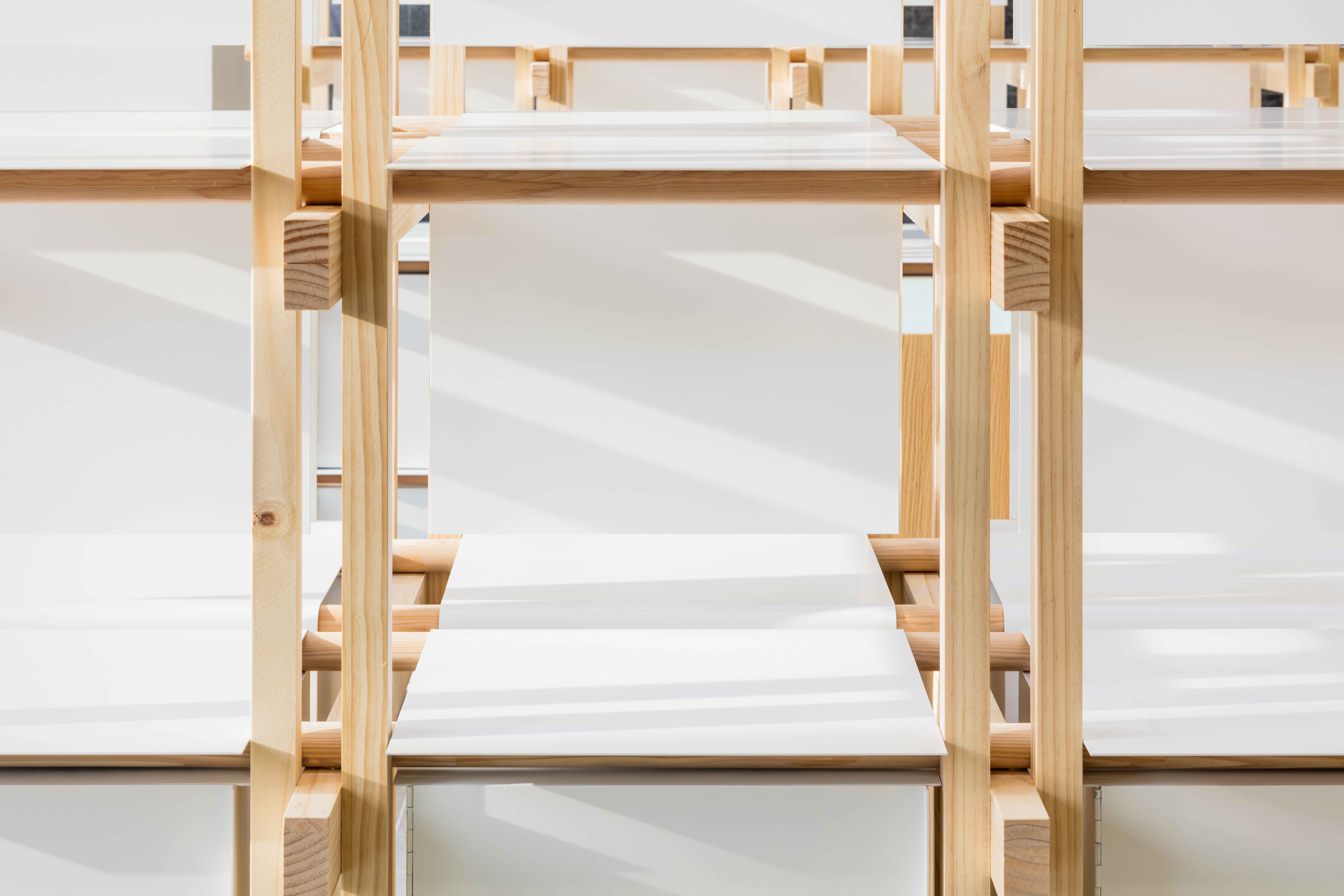As a passive branding strategy, we focused on forming a spatial image that conveys the excellence of the Punggi Korean Ginseng to customers by giving a differentiated image to the brand, which is not currently well-known. The pure white exhibition space and sophisticated furniture designed with wood as the main finish deliver the inherent value of the brand and furthermore, it can naturally lead to the process of consumption. The promotion wall, where the main products are arranged as objets, and the display stand that is designed in a furniture-type structure, create a contrast in physical materials and display methods. The display stand was finished with wood as the main finish, and each display case was designed to highlight the displayed products with a pure white background that flows softly and naturally along the circular wooden member.