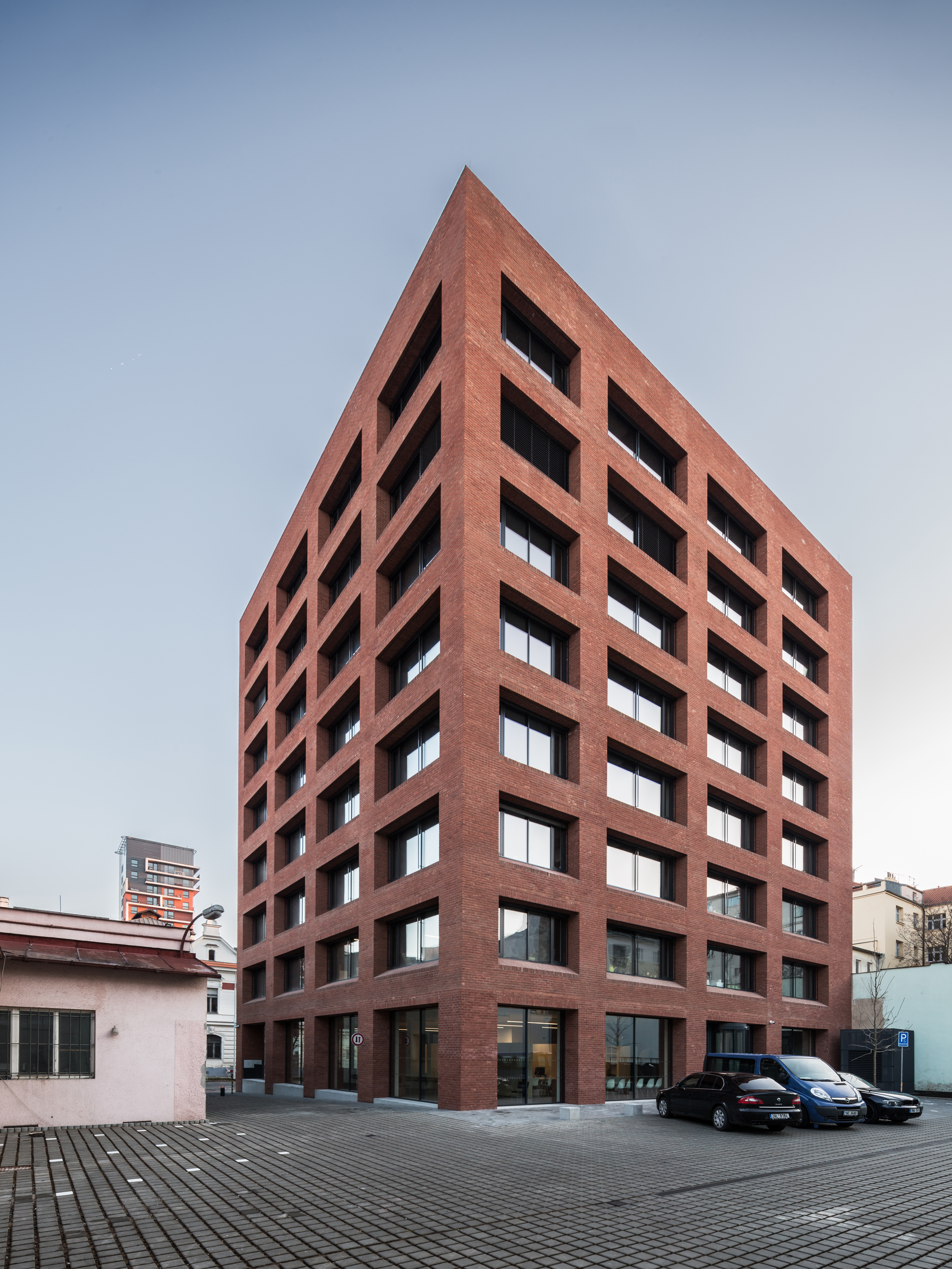 The expressive elements used in the reconstruction of the house quote the morphology and matter of Holešovice, the house honours the historical context of the district, respects its specifics, and honours the industrial aesthetics of Holešovice often built on brick detail. Although the building is distinctive, its expressiveness is achieved in a humble way - by using traditional Holešovice motifs. The original object is stripped down to the skeleton itself, to a technical necessity - the supporting structure, which we perceive as beautiful. The beauty of engineering structures lies in their genuineness and sincerity. That is why we honor the size of the building modules, the rhythm of the construction. We use motifs that make an ordinary house a noble house - a town hall.