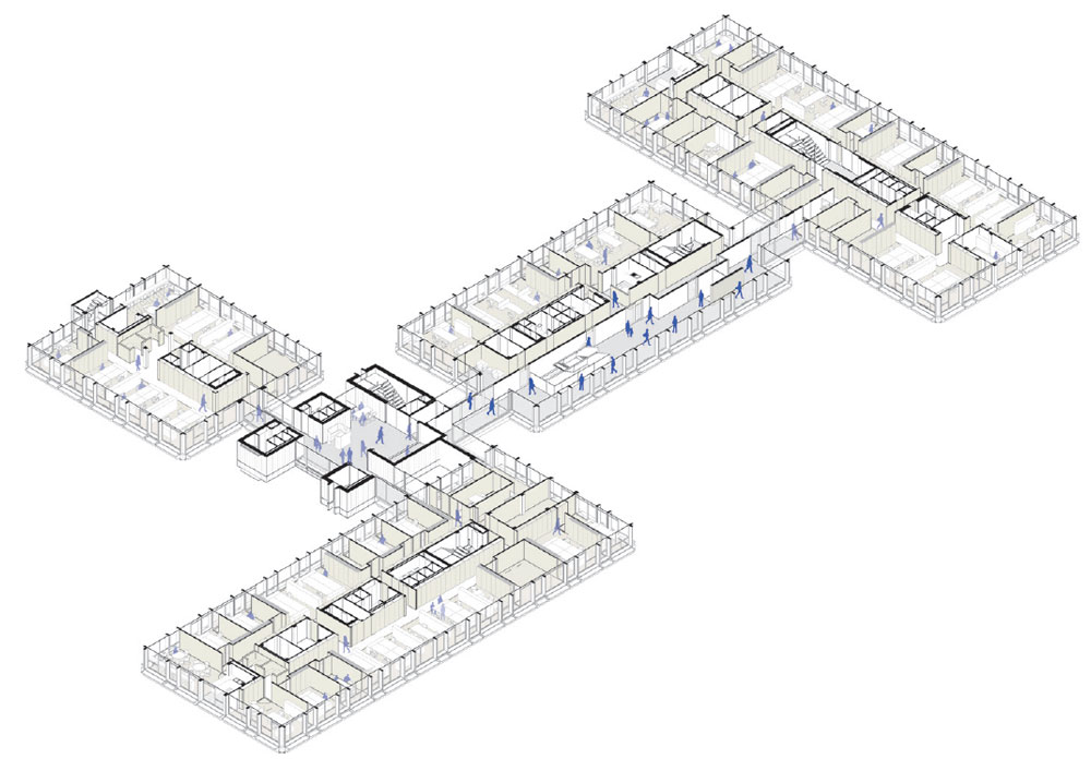 유연한 공간 건축가는 끊임없이 변화하는 행정부의 요구를 충족할 수 있는 모듈식 업무공간을 설계했다. 더 나아가 역동적인 업무 환경을 만들기 위해 홀과 통로를 자발적으로 상호작용할 수 있는 비공식 회의 장소로 변화시켰다. 또한, 이 공간은 주변의 공공정원과 시각적으로 연결되고, 풍부한 자연 채광을 가진다. 업무 공간의 내부 설계와 가구, 그리고 간판까지 모두 건축가가 디자인했다. 명백한 동선 계획은 방문객과 직원이 1층과 공공 영역에서 상호작용할 수 있게 하면서도 건물 전체에서는 분리된 다른 동산을 가진다.