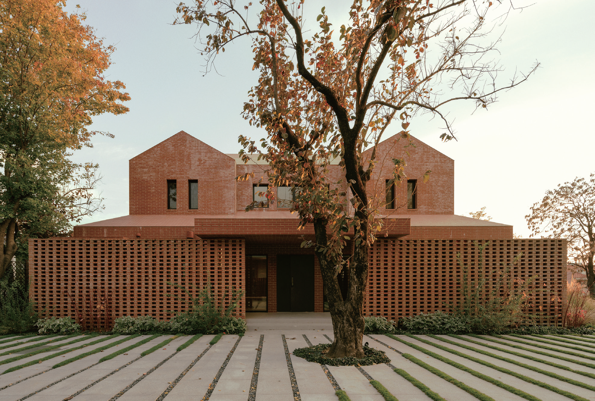 창핑구는 베이징에서 북쪽으로 30㎞ 떨어져 있으며, 국제도시와는 전혀 다른 풍경을 가진 곳이다. 무성한 산과 거울 같은 호수는 소음에 대한 자연적인 장벽을 제공하여 집주인들을 많이 끌어들인다. 원래의 부지에는 넓은 안마당과 유럽식 주택이 들어서 있다. 이러한 대조는 팀이 다시 생각하도록 영감을 주었다. 디자이너는 우선 ‘지형과 건물’, ‘건축적 외관과 주변 환경’, ‘기능과 생활 경험’ 등의 다차원적인 내용이 포함된 주택과 지형의 관계를 재정립하기로 했다. 부지의 8m 높이 차이를 최대한 활용하고, 원래의 건축 구조를 유지하는 것을 전제로 유럽식 정면 장식은 완전히 벗겨졌고, 단순한 기하학적 블록과 투박한 북부 붉은 벽돌로 대체되었다.