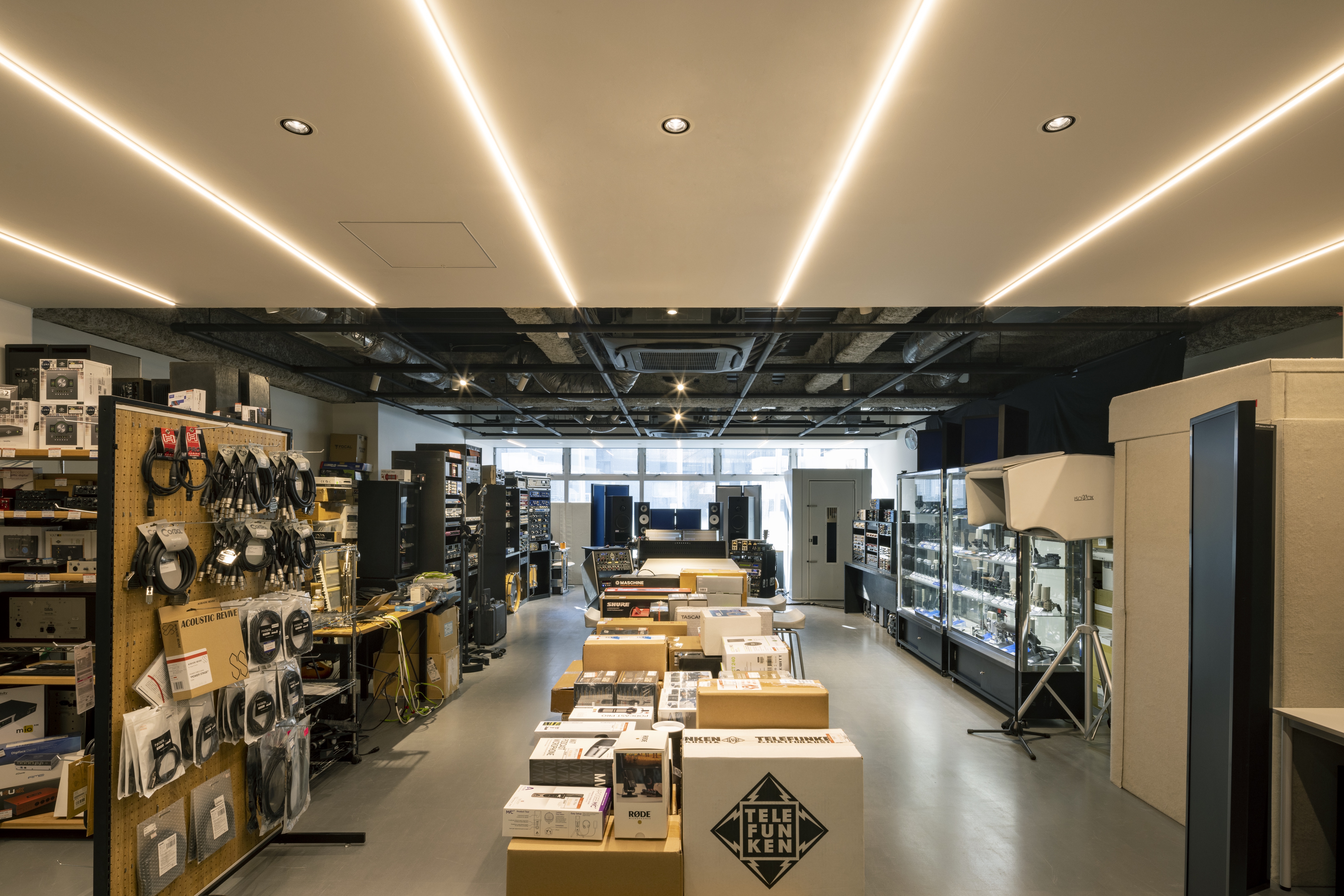 ‘음악 복합공간’은 오랜 역사를 가진 음악관련 회사의 사옥이며 스튜디오다. 레슨실, 악기 판매 및 보관 공간, 회사의 주요 업무 공간 등이 포함된다. 또한, 이 건축물이 자리잡은 도쿄의 간다-오차노미즈 지역은 레코즈 가게가 많기로 유명한 곳으로 좁고 불규칙한 골목이다. 건축주는 피아노, 바이올린, 기타 악기 레슨실, 리사이틀을 위한 작은 홀, 전문 녹음 장비 가게, 악기 도매 판매를 위한 창고, 이러한 사업을 관리할 사무실 등 다양한 기능을 복합적으로 수행할 수 있는 공간을 요청했다.
