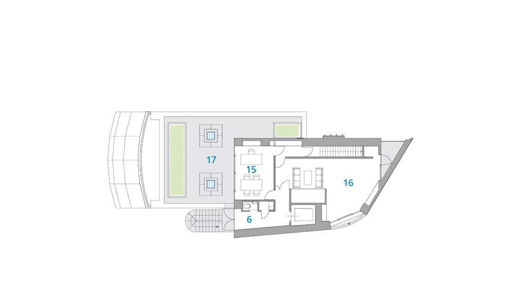 ‘음악 복합공간’은 오랜 역사를 가진 음악관련 회사의 사옥이며 스튜디오다. 레슨실, 악기 판매 및 보관 공간, 회사의 주요 업무 공간 등이 포함된다. 또한, 이 건축물이 자리잡은 도쿄의 간다-오차노미즈 지역은 레코즈 가게가 많기로 유명한 곳으로 좁고 불규칙한 골목이다. 건축주는 피아노, 바이올린, 기타 악기 레슨실, 리사이틀을 위한 작은 홀, 전문 녹음 장비 가게, 악기 도매 판매를 위한 창고, 이러한 사업을 관리할 사무실 등 다양한 기능을 복합적으로 수행할 수 있는 공간을 요청했다.