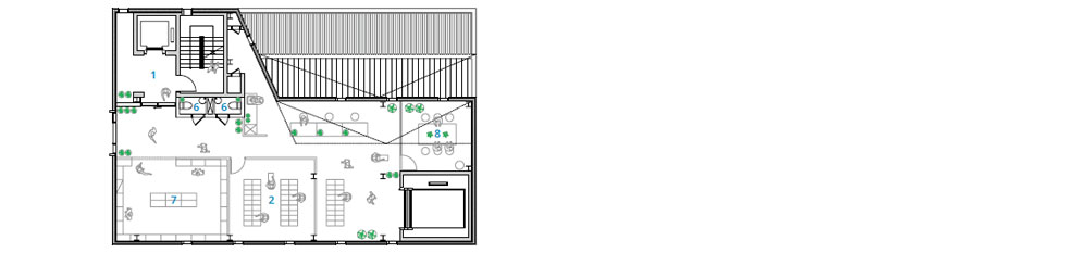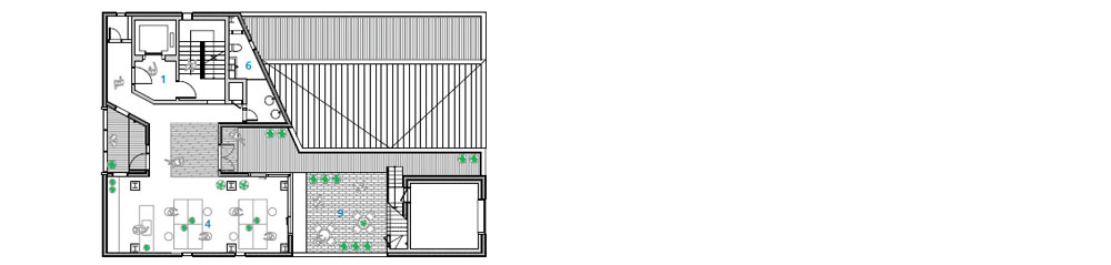 대상지는 큰 도로에 면한 필지와 이면 필지가 합쳐진 땅인데, 필지 안쪽으로 들어갈수록 30년 이상된 다가구주택들로 둘러 싸여 속도, 소리, 스케일, 재료, 시간성 측면에서 큰 도로 쪽 공간과 대비되는 감각을 느끼도록 했다. 물류 중심 공간이지만, 건물 안에서 일하며 머무는 사람들이 건물 곳곳의 내외부 공간에서 그러한 다양한 감각적 경험과 함께 ‘도시 속 안식’을 느낄 수 있도록 재료, 시퀀스, 조경, 경관 등의 측면을 함께 고려했다.
