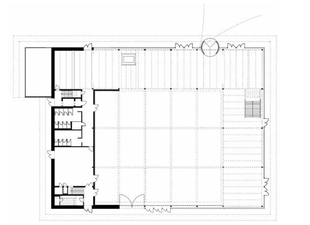 내부는 개방적이고 유연하도록 설계되었다. 최대한 공간을 확보하기 위해 부속시설을 모두 최외각에 집중시켜 나머지 건물은 자유롭게 만들었다. 따라서 전시장이나 갤러리 공간에서 닫힌 공연장에 이르는 커튼과 같은 커튼 시스템을 통해 파빌리온을 변형하여 사용 할 수 있다. 커튼이 열리면 주변 녹지가 홀 내부로 바로 흘러 들어가고, 닫히면 완벽한 블랙박스가 만들어진다. 방문객은 자신의 내면과 녹색을 동시에 발견한다. 제한적이면서도 아름다운 요소는 노출된 강철 구조물이 보존된 건물의 기존 구조물이다.
