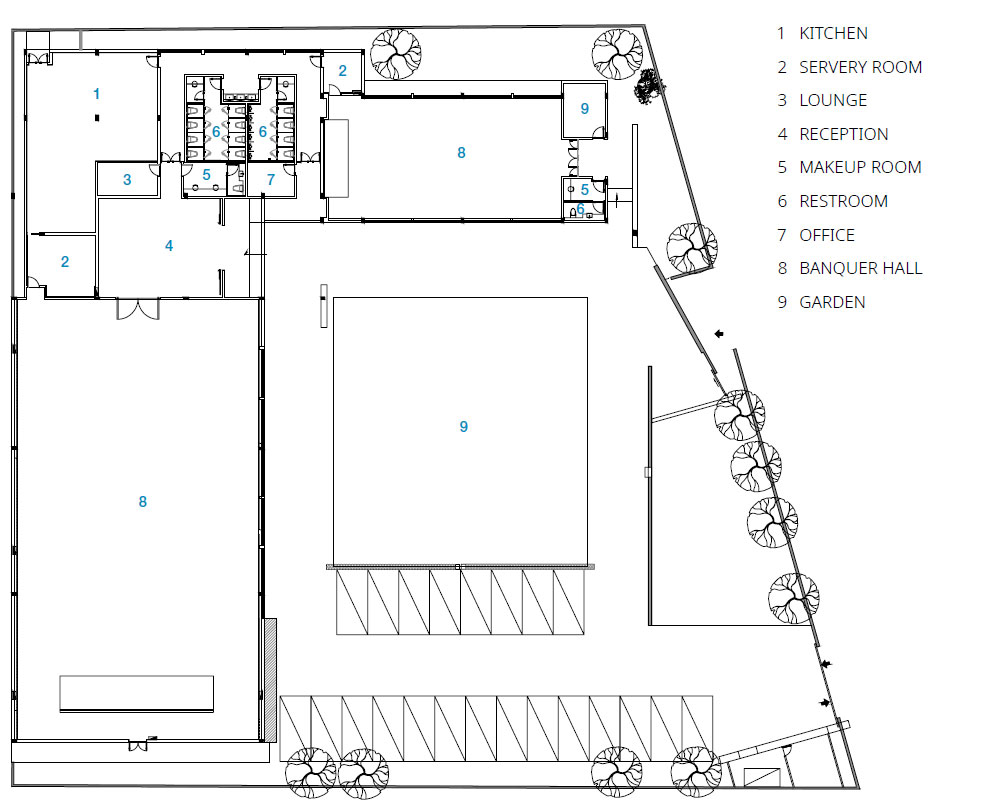 이번 프로젝트에서 에에디 아키텍처는 건축을 넘어 프로젝트의 경계에 대해 고민하고 디자인을 통해 도시와 사회를 대변하고자 했다. 디자인 팀은 기존의 건축적 의미에서 벗어나 도시와 사회의 관점에서 프로젝트에 접근하여 시장과 공공 생활에 통합되는 예술 공간을 만들고 디자인의 가치와 따뜻함을 전달하고자 했다. 오랫동안 많은 마을의 농촌 개발은 계획 없이 이루어졌다. 이 프로젝트는 새로운 질서를 만들고 상업 예술을 소개하며 새로운 커뮤니티를 형성하는 데 도움을 주기 위한 것이다. 단순한 디자인 접근 방식으로 건축가는 ‘빈’ 공간을 만들어 장소의 상업적 운영을 지원하기 위해 더 많은 기능적 가능성을 제공했다. 웨딩과 연회를 위한 기본 기능에서 시작하여 디자인 팀은 공간을 보다 효율적으로 사용하고 운영을 풍부하게 할 수 있도록 정의되지 않은 가능성을 부여했다.