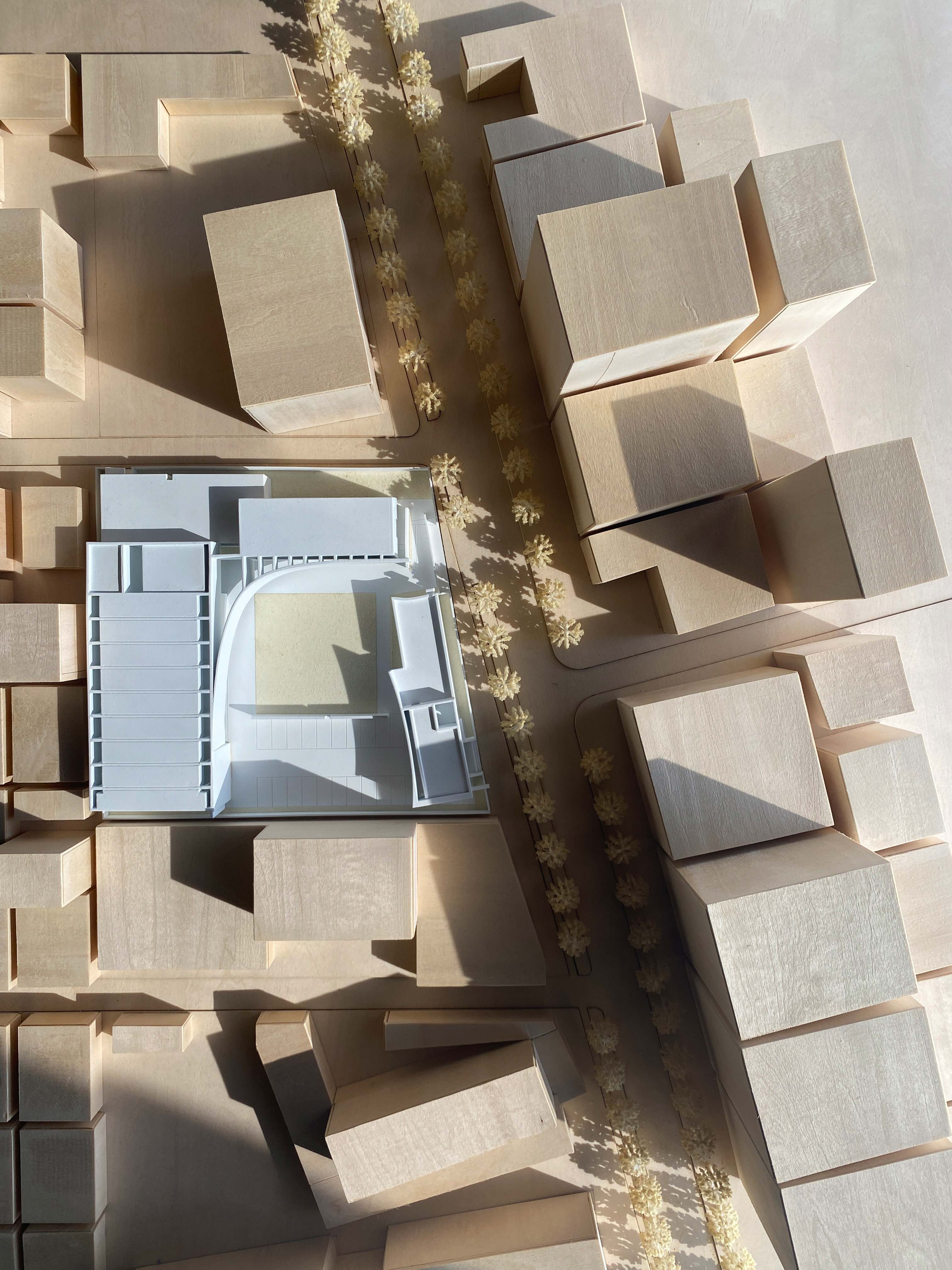 추상적인 기하학을 가지고 노는 듯한 디자인으로 방문자가 건축물을 탐험하도록 초대하는 단순하고 예술적인 건물을 계획했다. 전통적인 중정의 지혜를 살려 안마당과 바깥마당이 사람을 모이게 하여 현대적인 모습을 보여준다. 이 건축물은 평범한 마을에 미적 및 예술적 감각을 더하며 눈길을 끄는 시각적 정체성을 만들어내는 곡선으로 상징적인 스카이라인을 만들어낸다. 빛과 그림자의 자유로운 변화는 하루 종일 공간의 형태를 풍부하게 하여 다양한 미적 감각과 흥미로운 공간을 만들어 낸다. 자유로운 빛과 그림자 효과는 디자인 전략을 통해 미리 설정된다. 그 빛은 구조물과 공간을 돋보이게 한다. 단순한 건물은 일반적인 강철 구조와 크고 하얀 벽 표면을 특징으로 하며, 설계 계획의 완벽한 실행을 보장한다. 건물의 미니멀리즘 미학은 친근감을 전달한다. 간단하지만 포괄적인 어휘다.