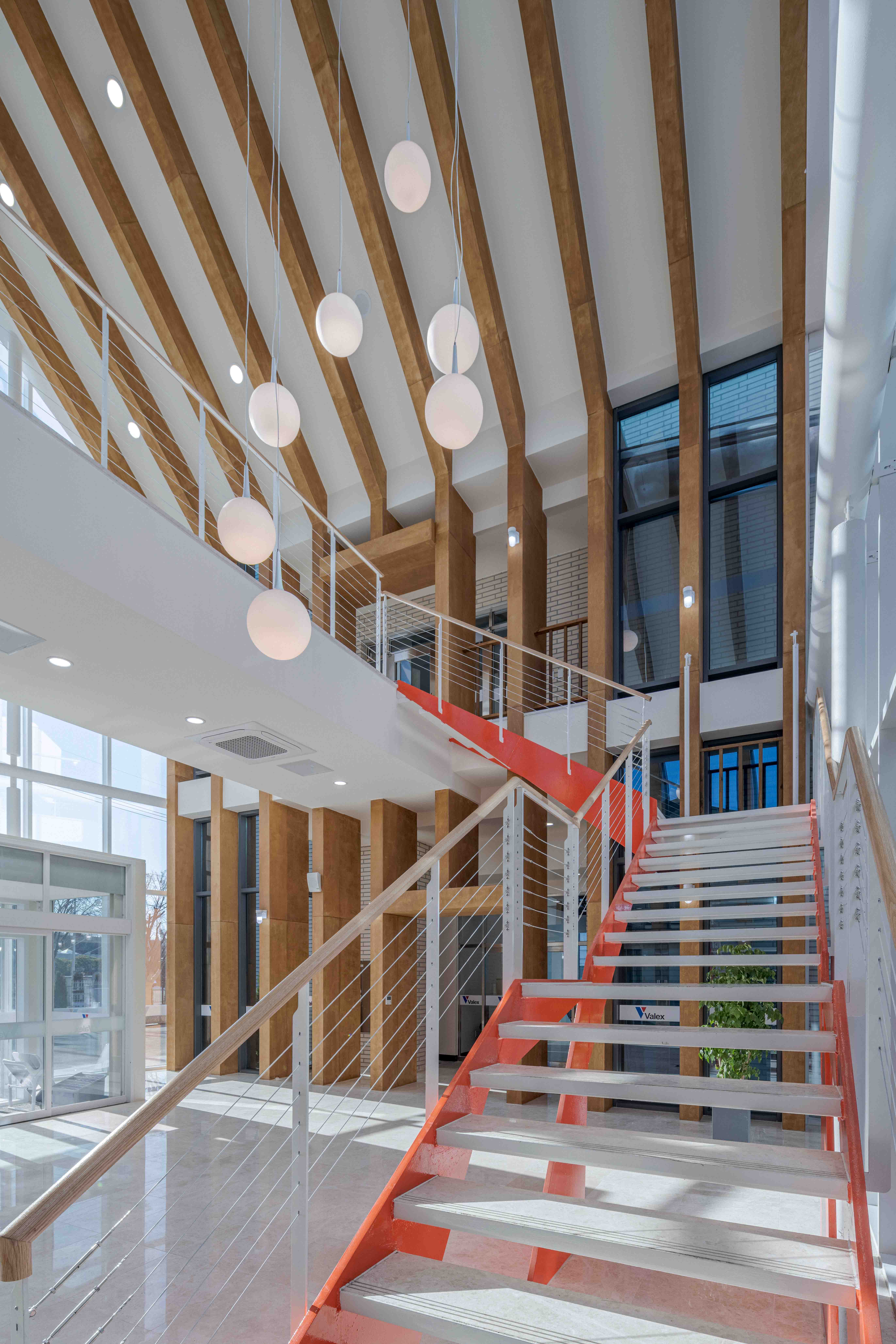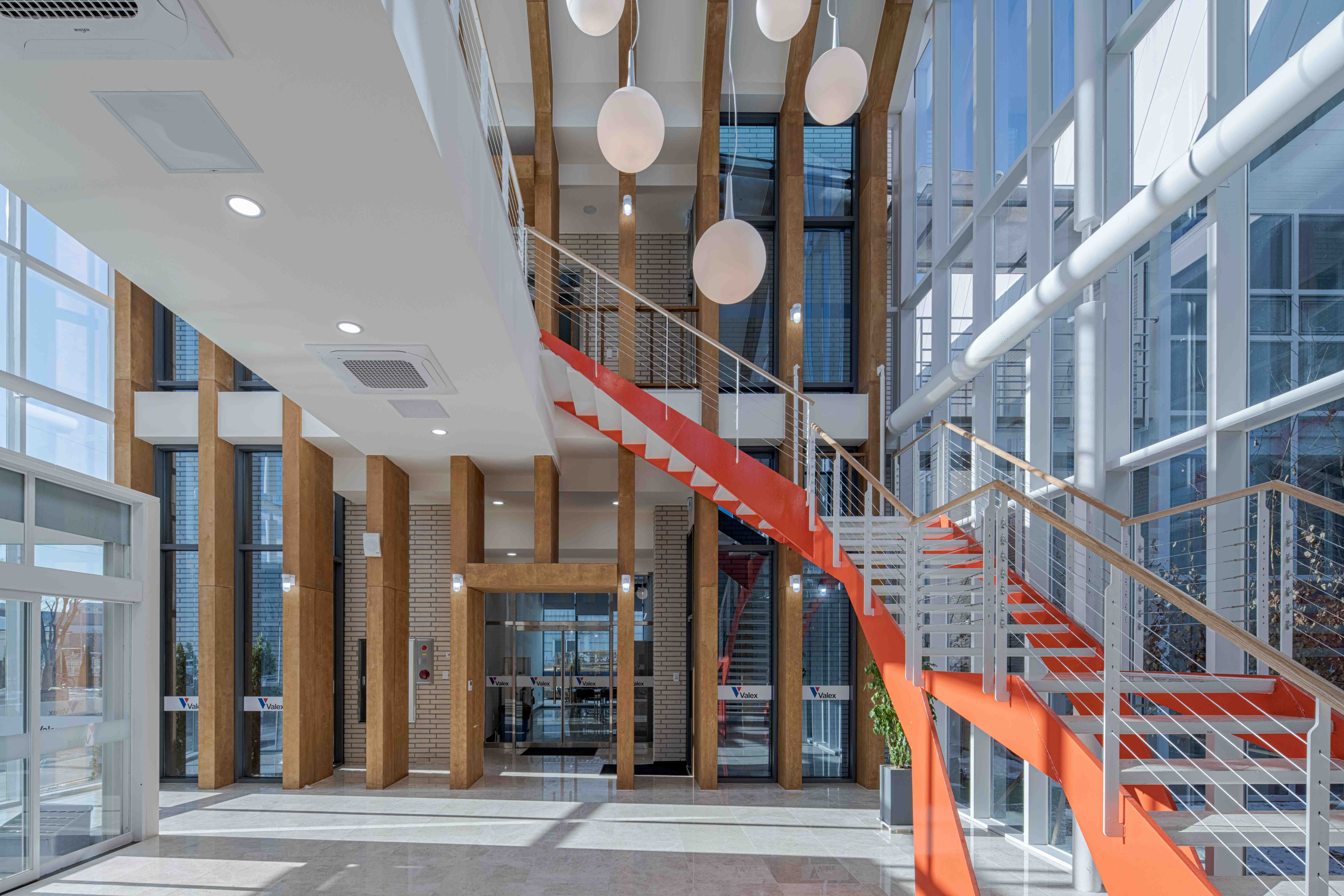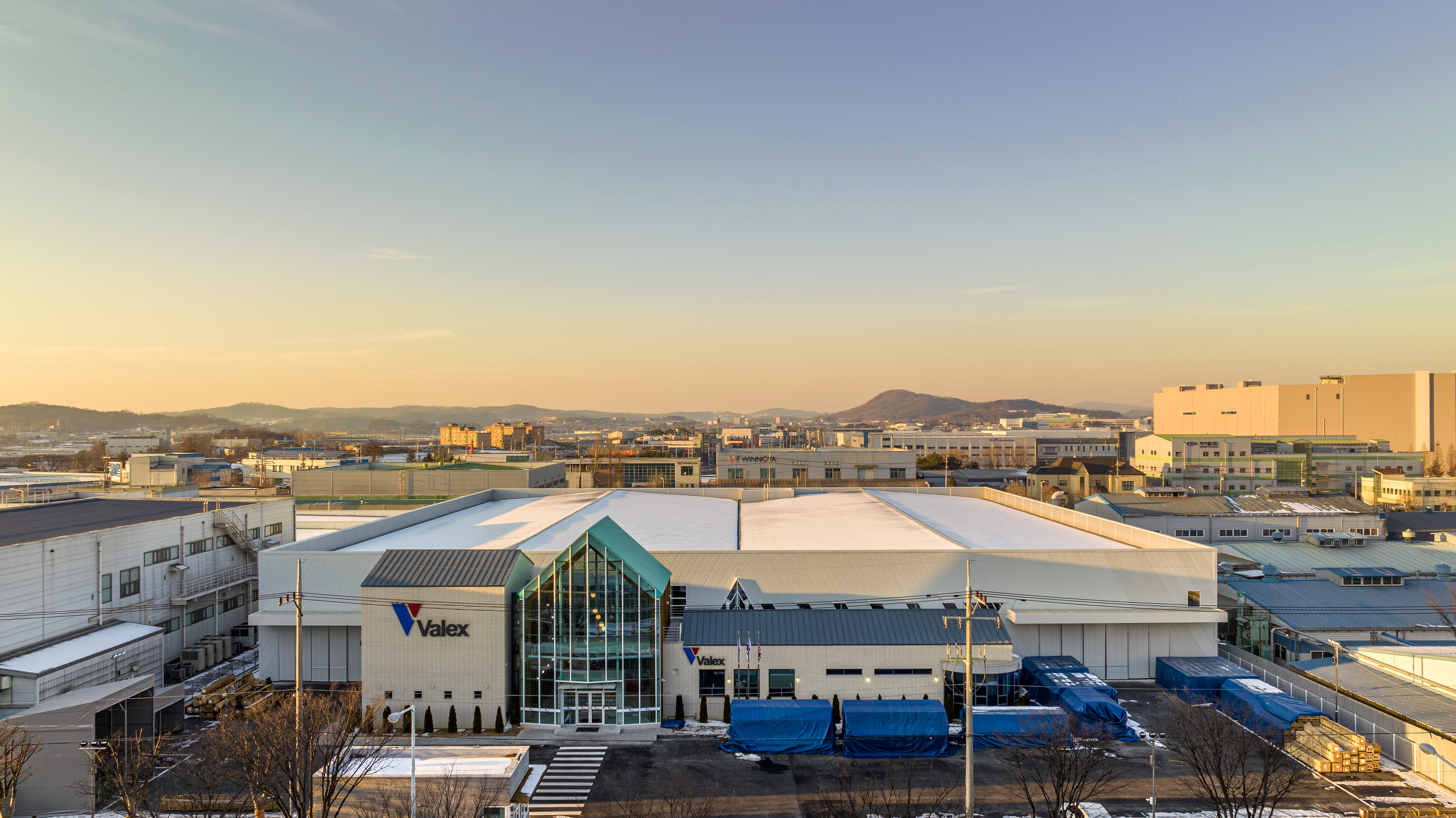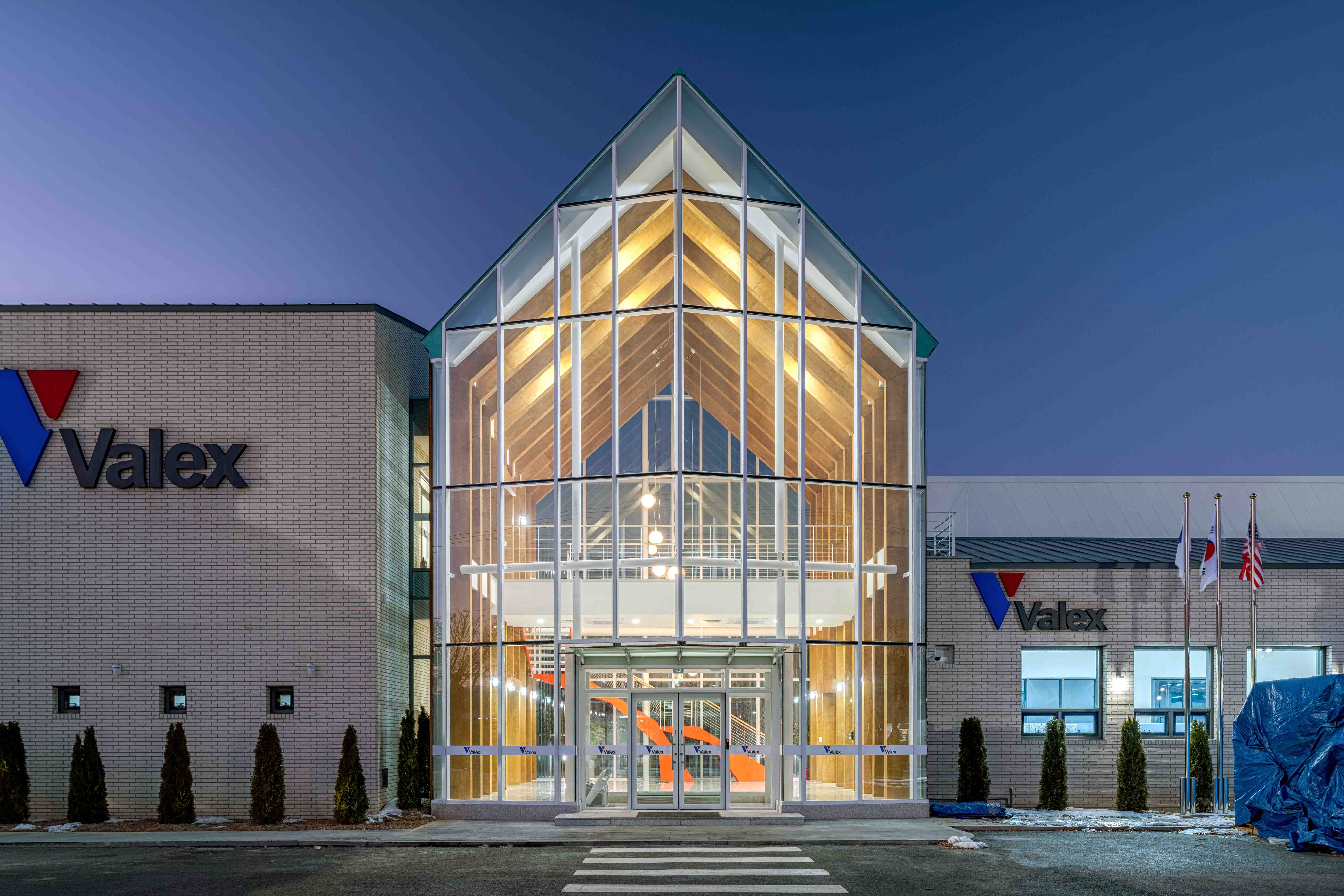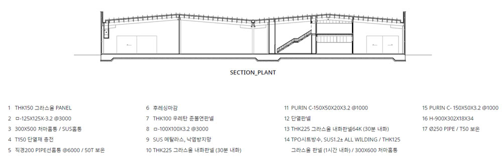 설계 의뢰를 받고 가본 이 지역은 평택에 위치한 공단지역이었다. 우리나라 공단 건물들이 그러하듯이 이곳도 예외는 아니었다. 뚝딱 지어지는 샌드위치 패널 건물들로 빽빽이 들어차 폐쇄적이고 삭막했다. 평소에 공장 근로자들의 열악한 근무 환경에 안타까움이 있었기에 이번 기회를 통해 좀 더 행복한 마음으로 일할 수 있는 공장을 설계하고자 했다. 이 대지는 삼면이 다른 공장들로 둘러싸여 있는데, 매스가 큰 공장동은 뒷면으로 배치하였고, 관리동은 전면에 위치하며 근로자 근무환경 및 편의성을 위한 설계다. 공장의 독특한 형태의 채광창은 답답한 공장에서 일하던 근로자들에게 따스한 햇살을 맞게 해주고, 연결마당으로부터 사계절의 변화를 느끼며 자연과 함께 일 할 수 있다. 출근길에 가장 먼저 접하는 관리동은 직원들을 반겨주는 계단과 자작나무 마당으로 활기찬 하루의 시작을 알리고, 업무 중 잠시 쉬어갈 수 있는 공간을 직원들에게 제공할 것이다.