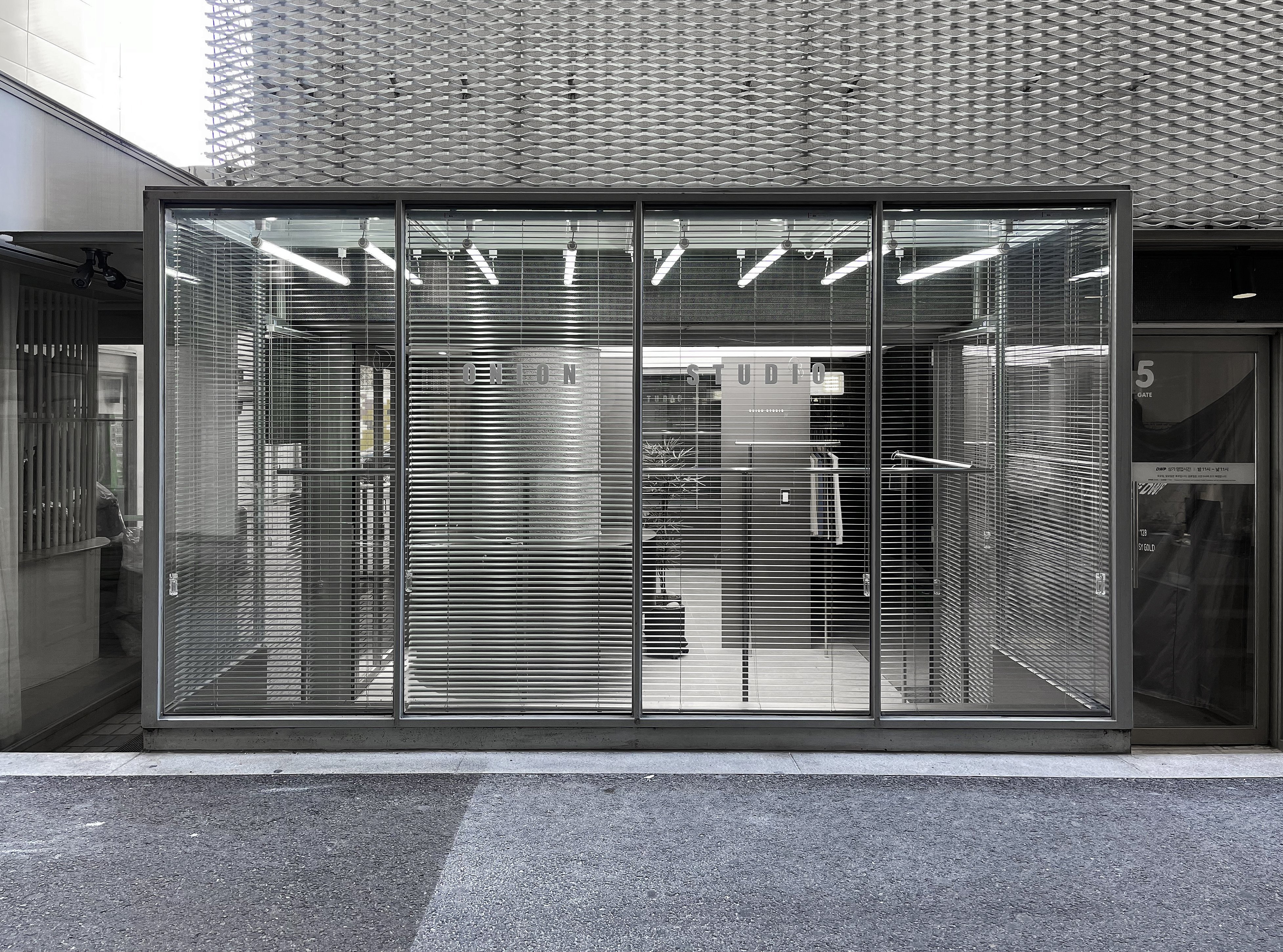 Onion Studio is a clothing select shop that proposes a unique street look for the MZ generation. This store is located in a large shopping mall in Dongdaemun, the center of fashion in Korea, and it was designed in consideration of various special matters.