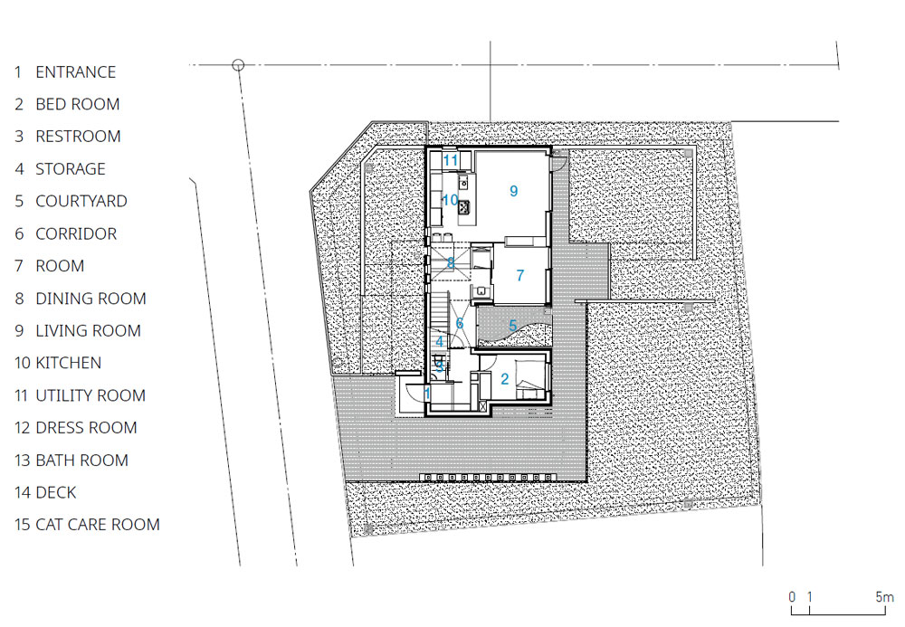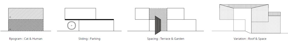 건축주는 고양이와 함께 살 50평 내외의 주택을 꿈꿨다. 고양이 놀이터, 보호실과 고양이를 위한 자그마한 기능적인 요구들뿐 아니라 두 사람이 누릴 수 있는 자그마한 공간까지 구체적인 요구 사항이 있었다. 특히, 건축주는 고양이가 집 밖으로 나가는 상황에 대한 우려가 컸으며, 그런 우려는 고양이 탈출을 막을 수 있는 중정형 주택을 염두에 두고 있을 정도였다.