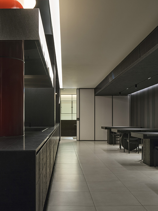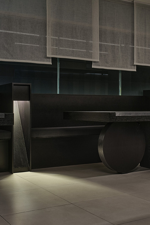 Grilling meat over charcoal is a very old and traditional cooking method. Sutimoon intends to interpret traditional Korean food culture in a modern way based on this charcoal-grilling technique. They sharpens special ingredients, finds the harmony of each dish, and heads for a new variation. We propose an elegant and original Korean style charcoal-grilled dining that encompasses the original taste wisdom and modern sense. The space of Sutimoon serves as a vessel that can capture Korea's traditional and elegant aesthetic values. It is a space where the original taste and modern sense can be combined to form a harmony of the five senses, and its value accumulates over time, suggesting a direction to shine more. It was drawn based on the appearance that the subtle light emitted by charcoal resembles the moon in the night sky. Sutimoon, the name of Sutimoon, was created by combining the Korean dialect of Charcoal and the English expressions of Moonlight Night (Wolseok). The image felt from the name leads to a narrative from the design of the space. The subtle but powerful vision was realized with a combination of rough, dark walls and moonlight-like lighting.