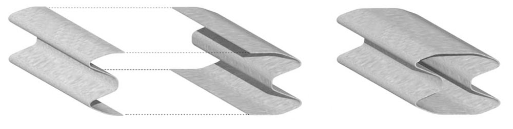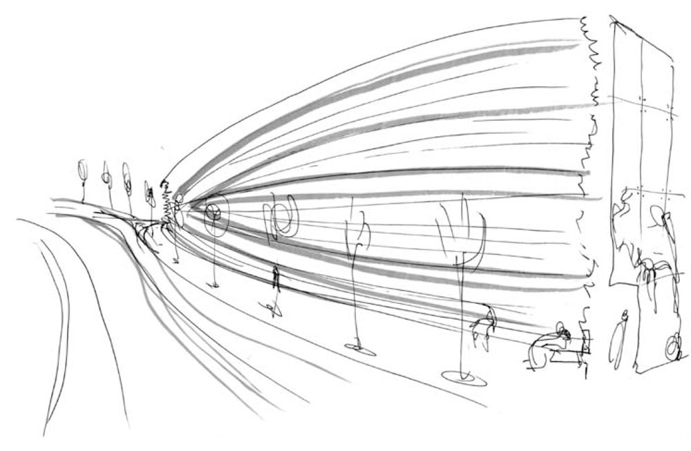 건축 속 빛의 모습을 만든다. 아연을 입힌 장벽의 패널은 건물의 세 면을 광학적으로, 표현적으로 모두 연결하는 방식으로 사용되었다.