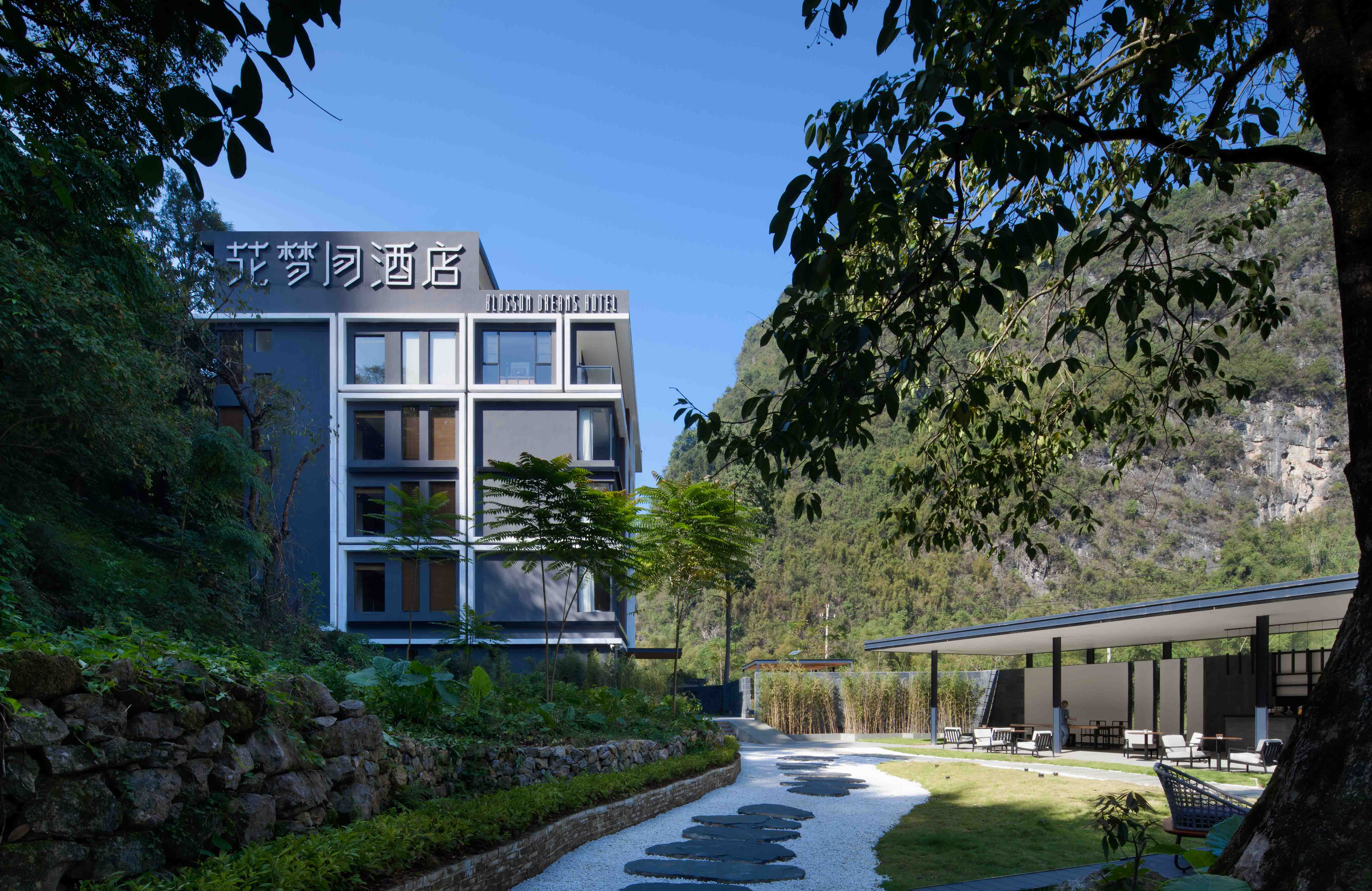 The project is situated at Jima Village in the east of Yangshuo — a famous tourist county surrounded by karst mountains, winding rivers and beautiful scenery. The name "Jima" in Chinese is very poetic, meaning "steed", which makes the secluded, old and austere village appear to be dreamy to some extent. With tranquil ambience and beautiful landscape, it's a perfect site for a resort hotel where people can stay away from the hustle and bustle of urban life. Goethe called music frozen architecture, while Laozi believed that "a great sound is hard to hear". Inspired by those philosophical views, the design studio, Co-Direction Design, worked to give the architectural facade a flexible rhythm. For the overall design of the hotel, the designers combined dynamic rhythm and static proportional relationships perfectly, thereby breaking the whole into parts and producing continuous visual effects.