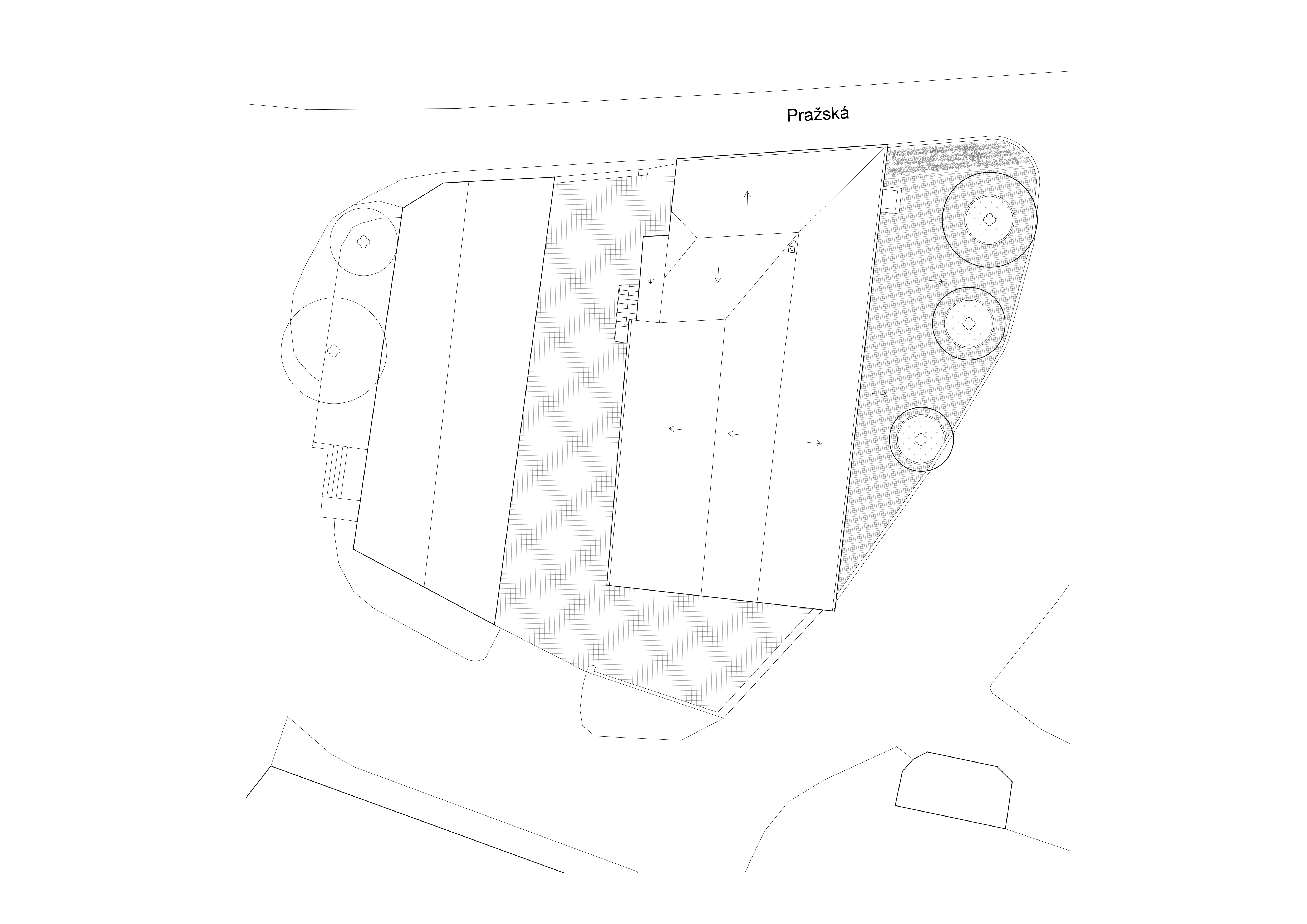 The underlying idea was to design a house which sensitively fits into its surroundings, does not stand out and looks contemporary at the same time. The house with a pub and multi-purpose hall is situated in the heart of Máslovice, a village north of Prague. Its location in the centre of Máslovice is ideal for a number of purposes and naturally turns it into the cultural and social centre of the village.