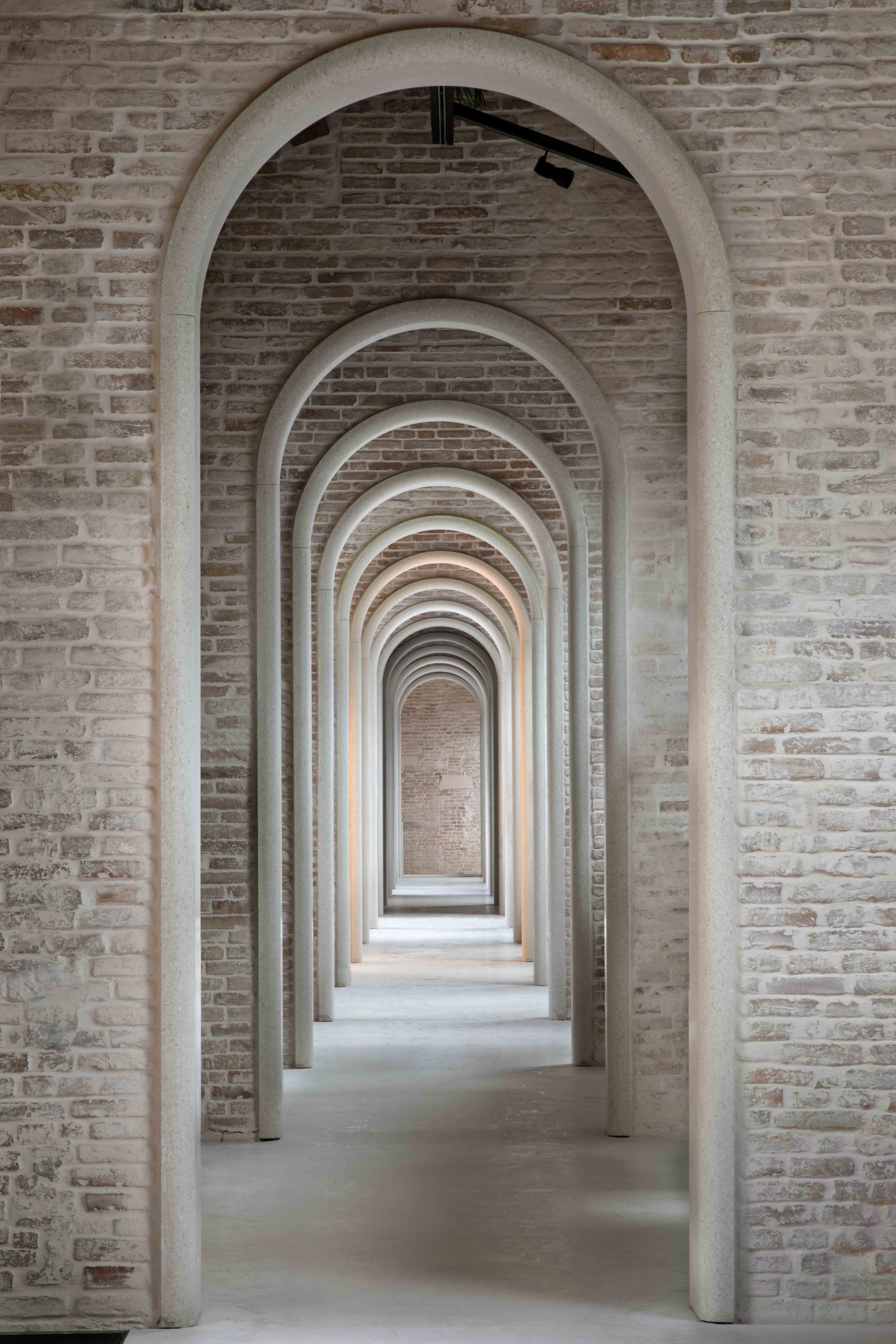 The Interventions include the Restoration of the first and second floors, where the most prestigious Offices of the Generali insurance company are situated, the Reorganisation of accessibility and usability through the inclusion of new vertical circulation, and the Renovation of the third floor, with public access to the exhibition spaces as well as workspaces, event spaces and an auditorium linked to The Human Safety Net. The Interventions looked to ancient, local and traditional construction techniques and made use of artisanal craftsmanship for the flooring, walling and ceiling, using pastellone and terrazzo, marmorino and scialbatura, but also cocciopesto and cotto, seeking not to impose but rather to inherit, in order to complete into a single whole and reclaim the integrity of what has been present for hundreds of years in probably the most representative place in Venice.