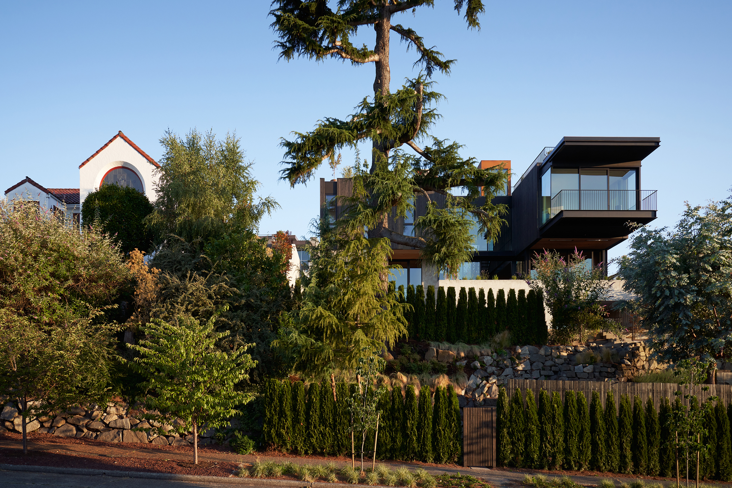 Sound House is a 5,500sf single-family home on a steep slope site in Seattle’s Magnolia neighborhood. The program for the house was unique, in that it needed to house a large blended family of two adults and six children living together for the first time. An emphasis was placed on providing large shared spaces to enjoy together and smaller areas of retreat for all members of the family. All spaces in the house needed to maximize the extensive views across the city and Puget Sound. Working closely with the owners and how their large family prioritizes communal spaces was key to deriving a plan that would function well for their needs.