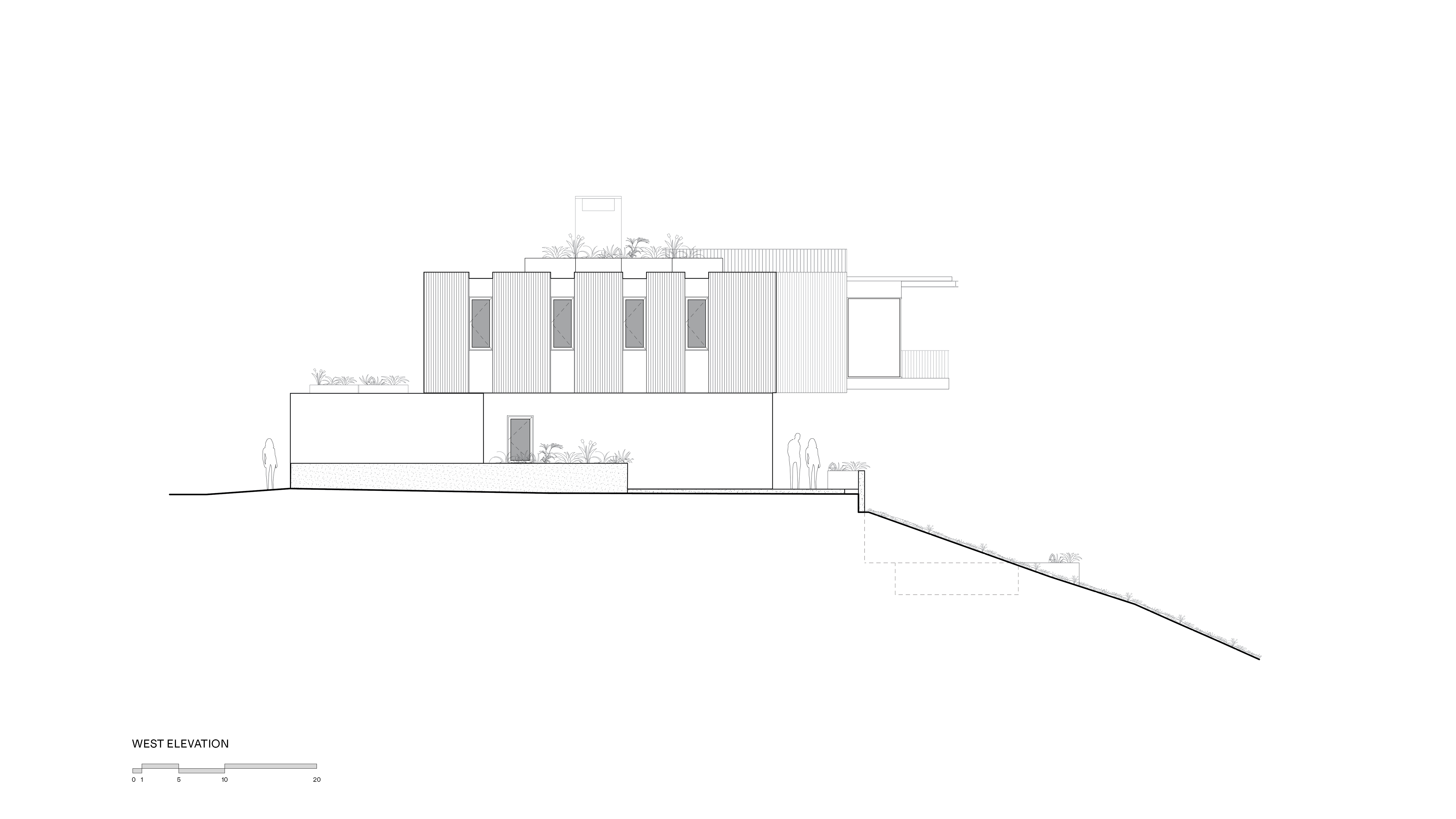 비좁은 부지에 이웃과 더불어 살 수 있는 대가족의 주택을 어떻게 만들어야 하는지는 이 프로젝트의 또 다른 과제였다. 집을 설계함에 있어 가파른 경사면과의 관계를 이해하고 남쪽을 향한 전망을 이해하는데 단면도의 역할이 중요했다. 집의 북쪽으로는 규모 있는 주변건물들이 보이고 대지의 아래로 내려가면서 남쪽 풍경이 보인다. 중앙의 거실은 단차를 만들어 공간 간의 공유가 가능하도록 함과 동시에 동쪽과 서쪽편으로는 공간분리가 가능하도록 하였다. 중앙의 넓은 유리창을 통해 건물 내부 깊숙한 곳까지 빛이 들어오도록 했다.