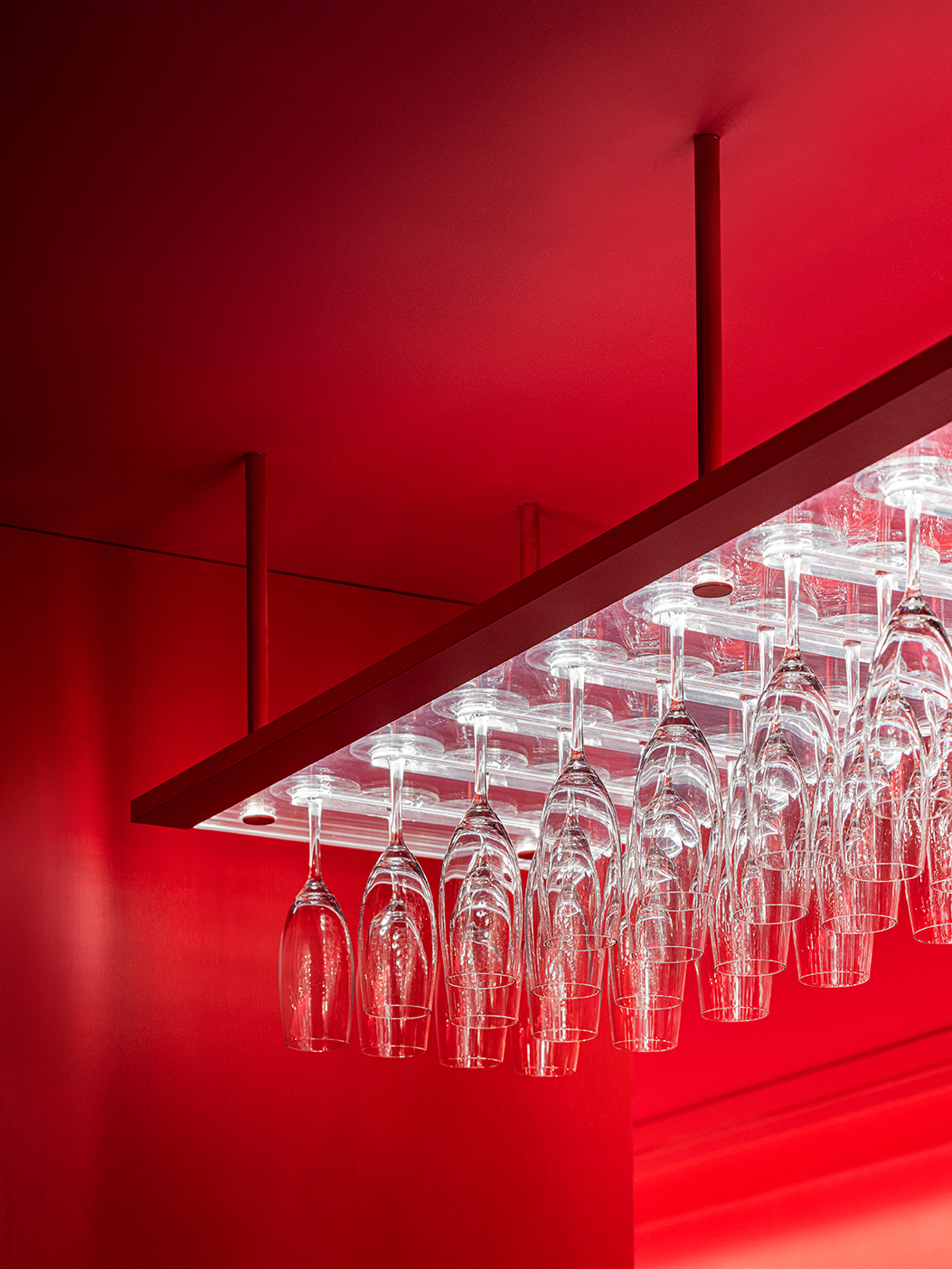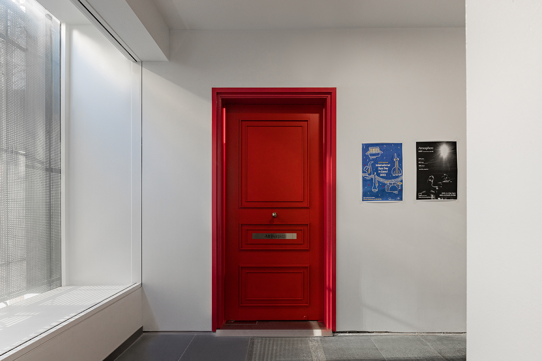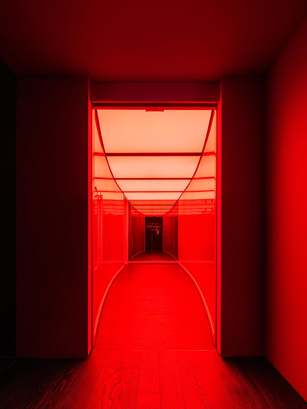 음악은 특별한 순간을 기억하고, 그때의 감정과 장소를 함께 떠오르게 한다. 붉게 물든 재즈의 선율이 가득했던 과거의 올 댓 재즈를 회상하며 시각적 정체성을 추출하였다. 역사와 전통을 보호하기 위해 생성된 단단한 조직처럼 올 댓 재즈의 시각적 정체성으로 추출된 붉은색 레이어를 공간에 감싸 안았다.