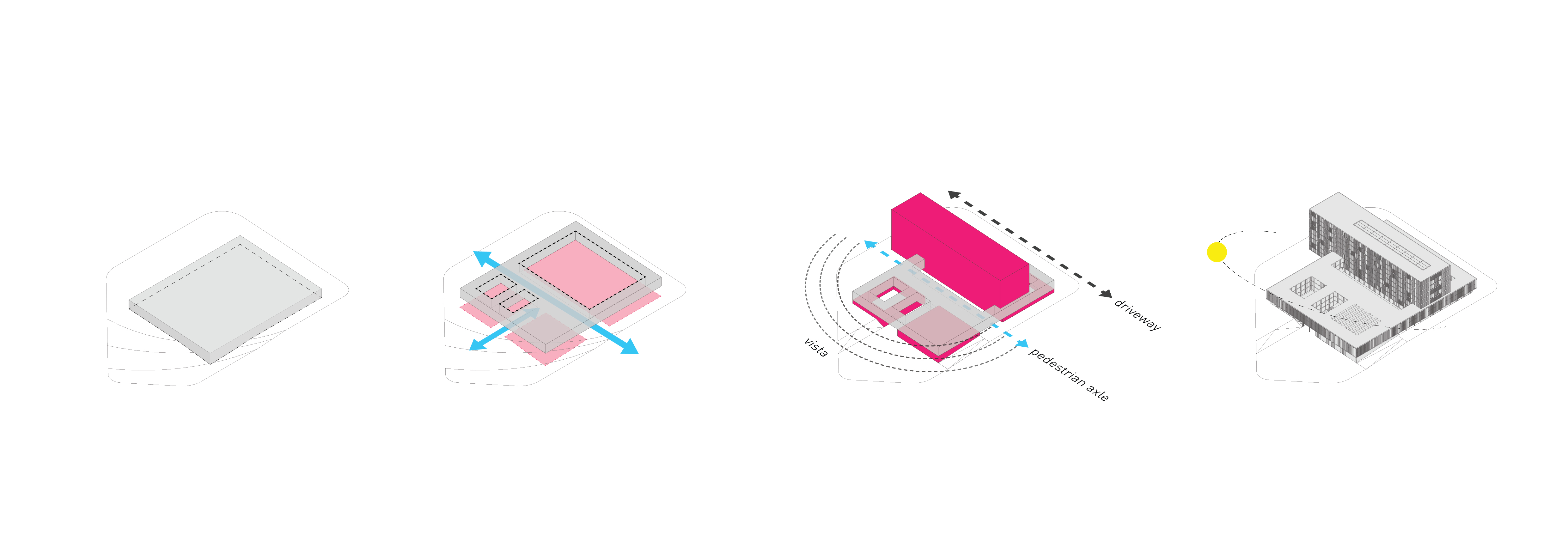 The project consists of municipal services building, city square and city park. During decision making process, this design was planned to act as a generator in urban development level. A particular importance was given to the public use; the level difference between municipal services building, city square and city park used as an advantage. The Service Building has been handled in a way that questions a classic town hall. Instead of a town hall, disconnected from the city and its inhabitants, which makes its presence felt with all its majesty in the center of urban life, defines an inaccessible volume in the city outside of working hours, where only those who have a job are obliged to visit; it is aimed to design a building that turns the size of its scale into an advantage that dissolves its own borders, allows urban life to flow through it, encourages participation, is nourished by it, belongs to the people and speaks the word of the people. In line with the aforementioned design decisions; The City Hall was designed to have a form that leaves the ground to the citizens, rather than a structure that rests on the ground. The structure, which is intended to contain functions of different characters; with its form, it has been ensured that it has a holistic attitude that both considers urban decisions and fulfills the requirements of hierarchical construction within the building. Municipal services building was designed hierarchically in order to provide this public use. Ground floor consists of service, cultural and social units; the floor level sitting on top of it consists of administrative units and office block has service units again. Service building is in direct relation with the city square and the park which creates an attraction point for the new city center. Green areas on the Northwest and the Southeast contribute to the city square, as a result of that the square and the park have fluid boundaries and they became continuous.