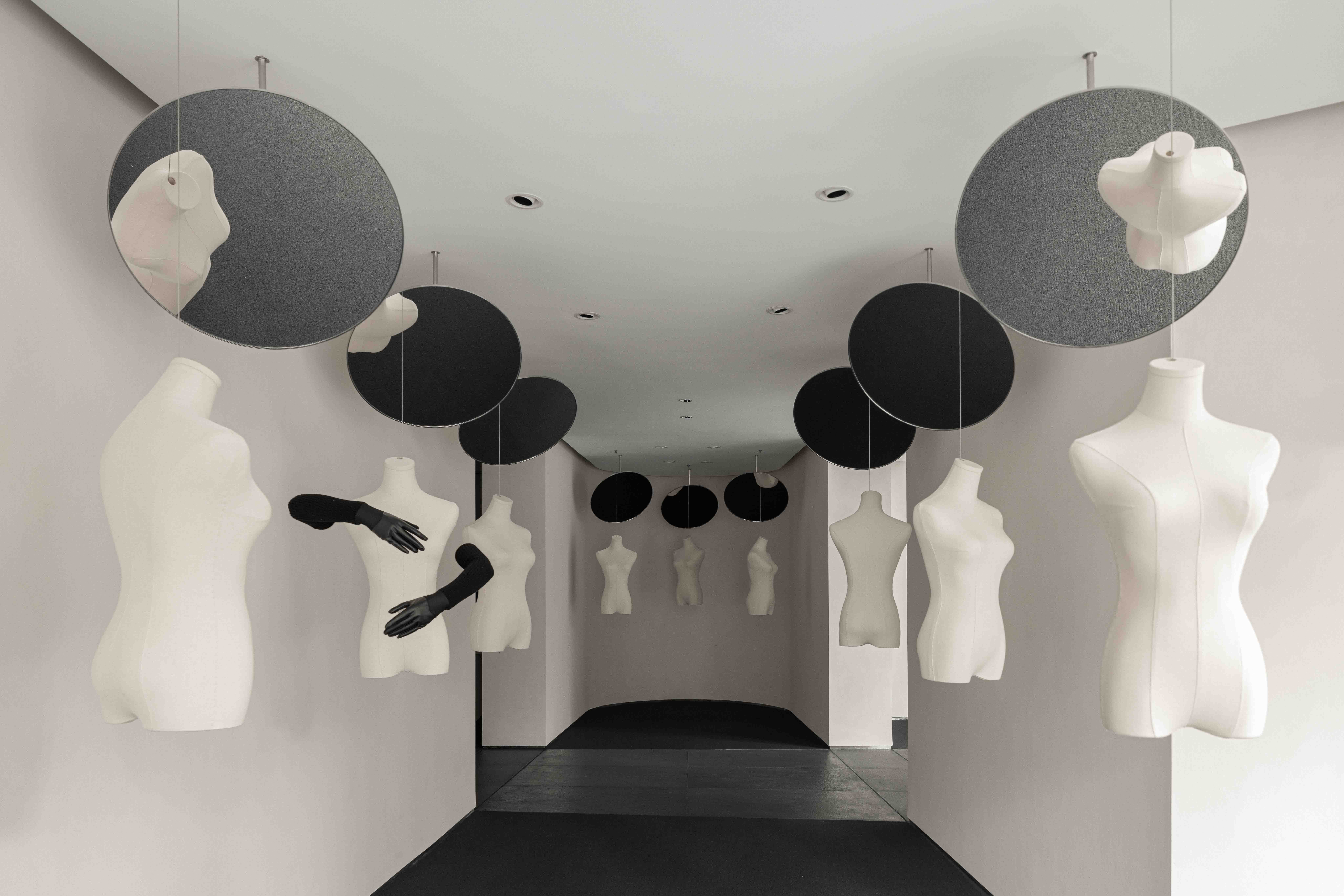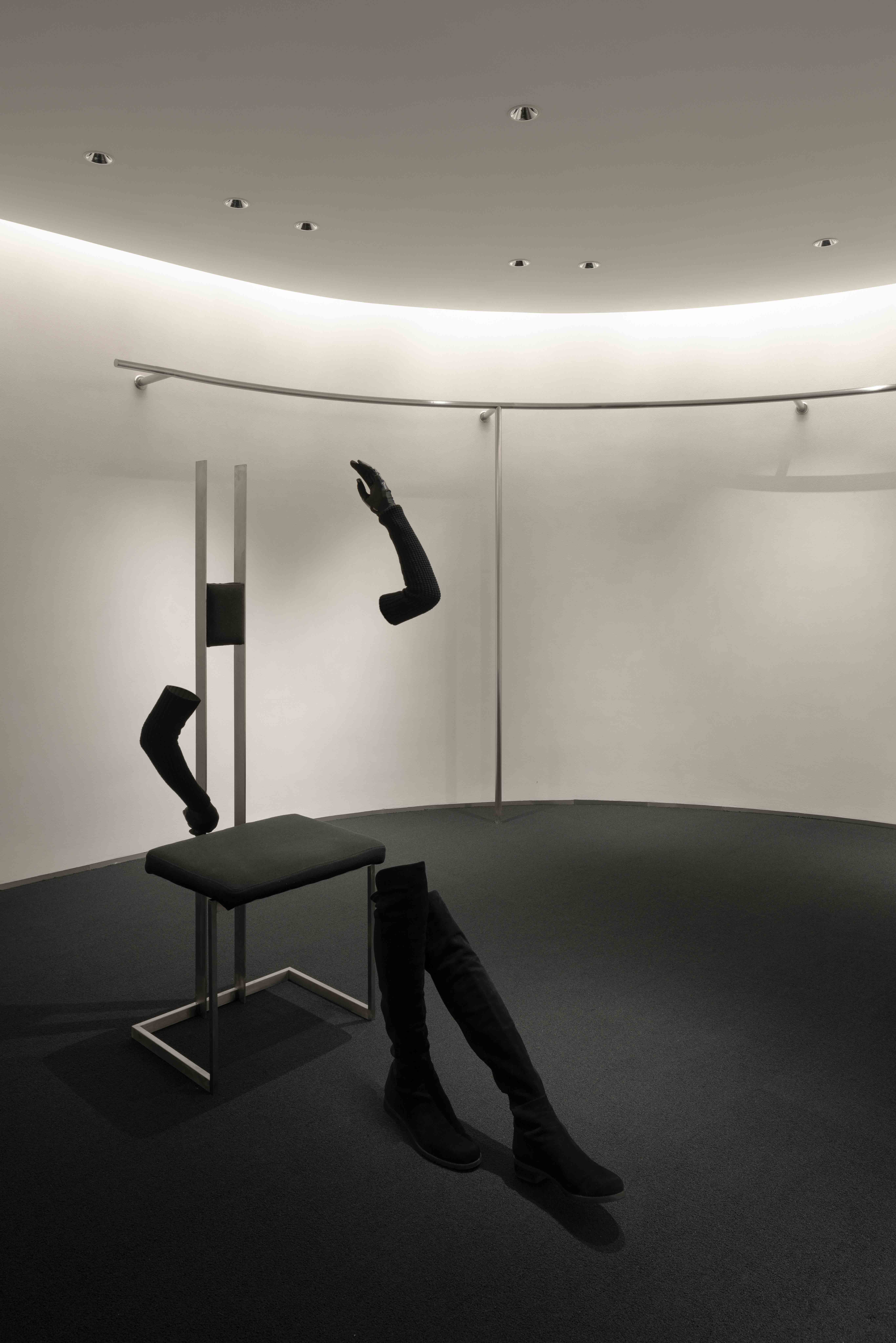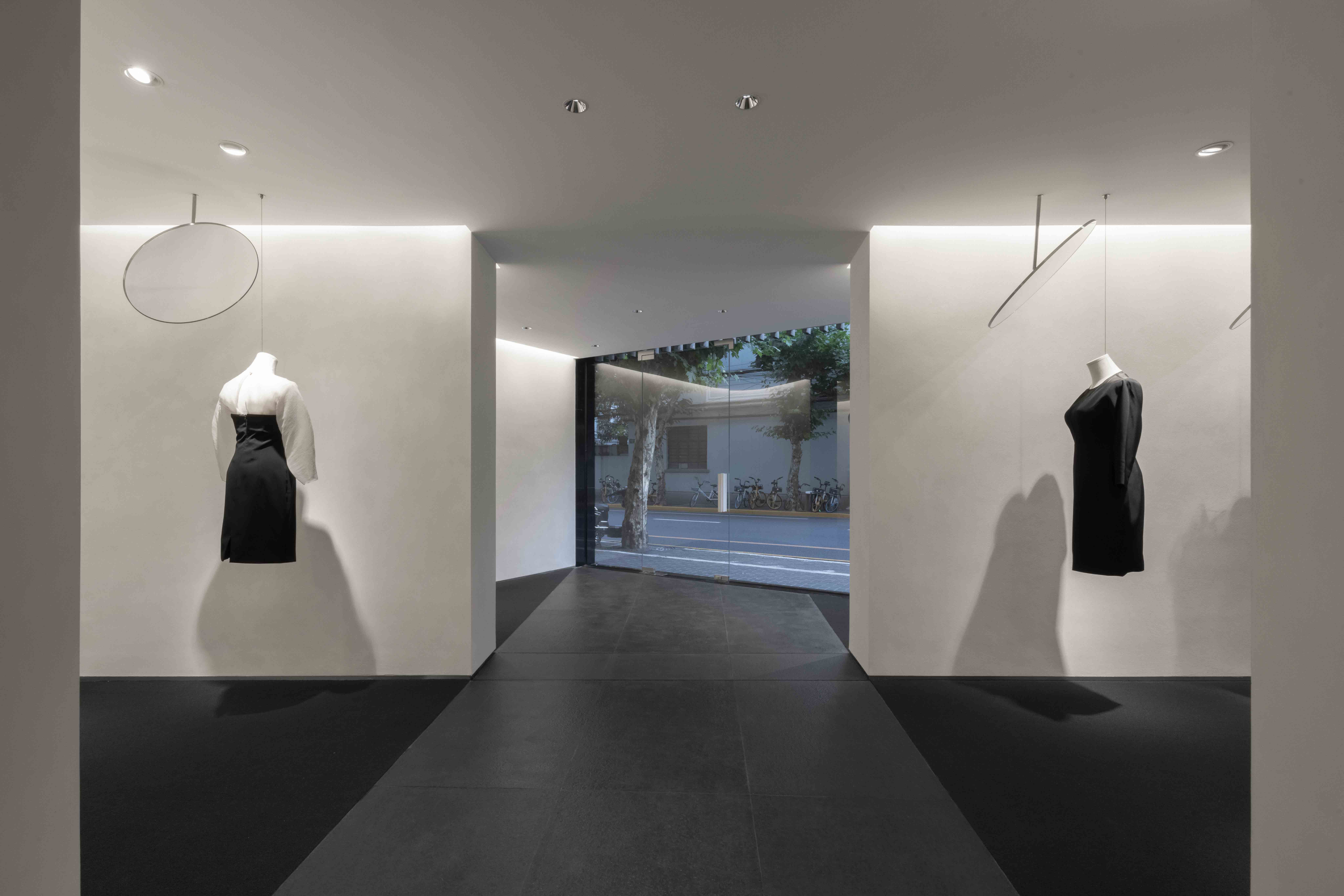 옷은 자신이 생각하는 이미지를 투영하여 보여주는 존재다. 상점 유리창 너머로 옷이 전시되는 방식은 거울 속 무대이다. 고객들은 쇼윈도를 지날 때 거울에 비친 자신의 모습을 본다. 시각적 반사는 또한 도시, 거리, 나무 및 햇빛에 대한 고객의 관심을 포착하여 흥미로운 사람과 물체의 상호 작용을 생성한다. 사람, 사물, 도시, 자연의 다중 반사는 현실과 반사의 상호작용적 관계를 불러오는 것이다. 이렇게 이 상점에 사용된 거울은 고객들이 더 가까이 다가갈 수 있도록 만드는 요소다. 휘어진 벽과 옷걸이와 메탈 소재의 가구는 뚜렷한 대조를 이룬다. 디자이너는 곡선과 부드러운 터치감을 더하기 위해 곡선 건축물처럼 접히는 벨벳 커튼을 설치했다. 중앙에 있는 큰 거울은 예술적인 매력을 발산 하며 아주 은밀하고 개인적인 공간을 만들어 낸다.