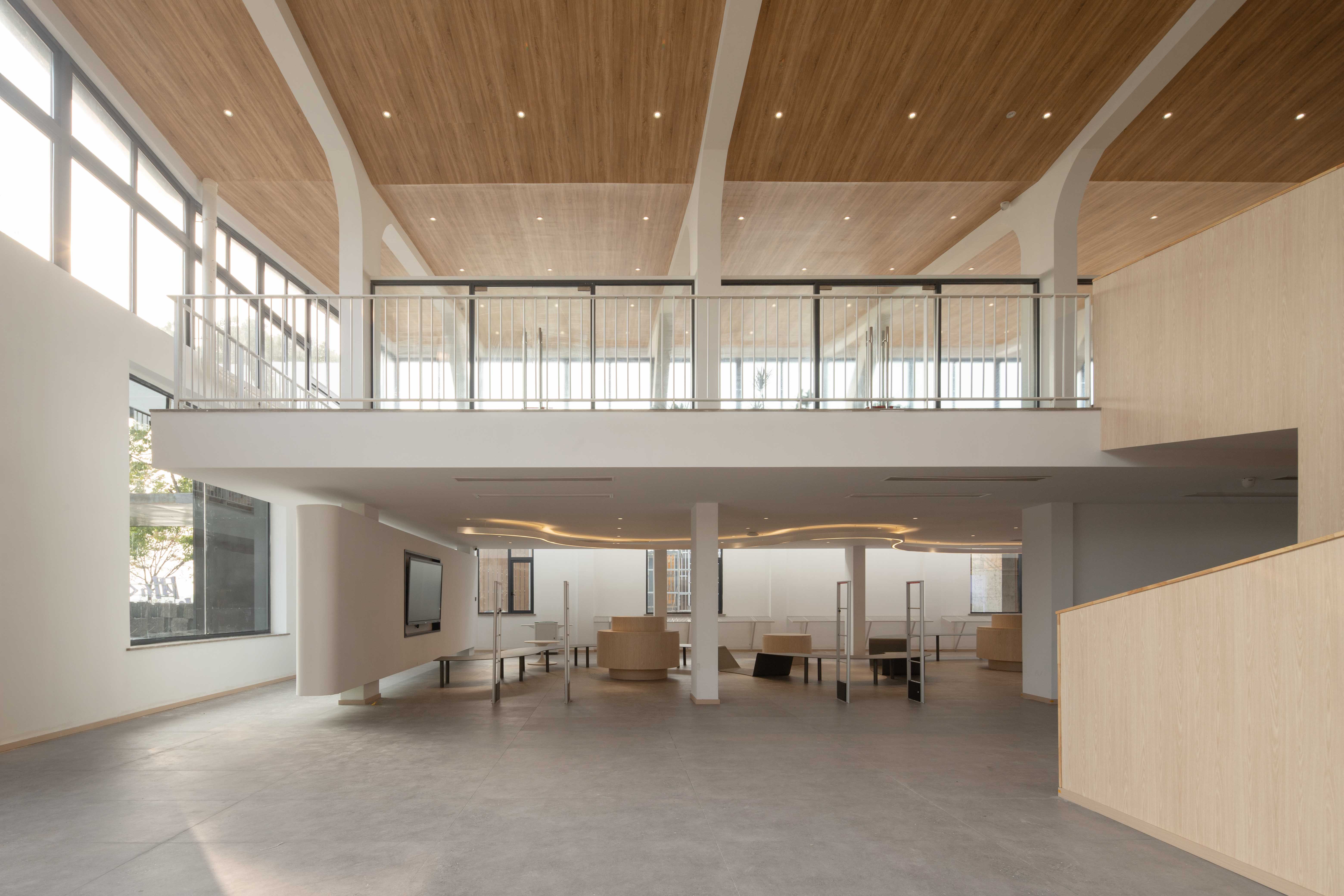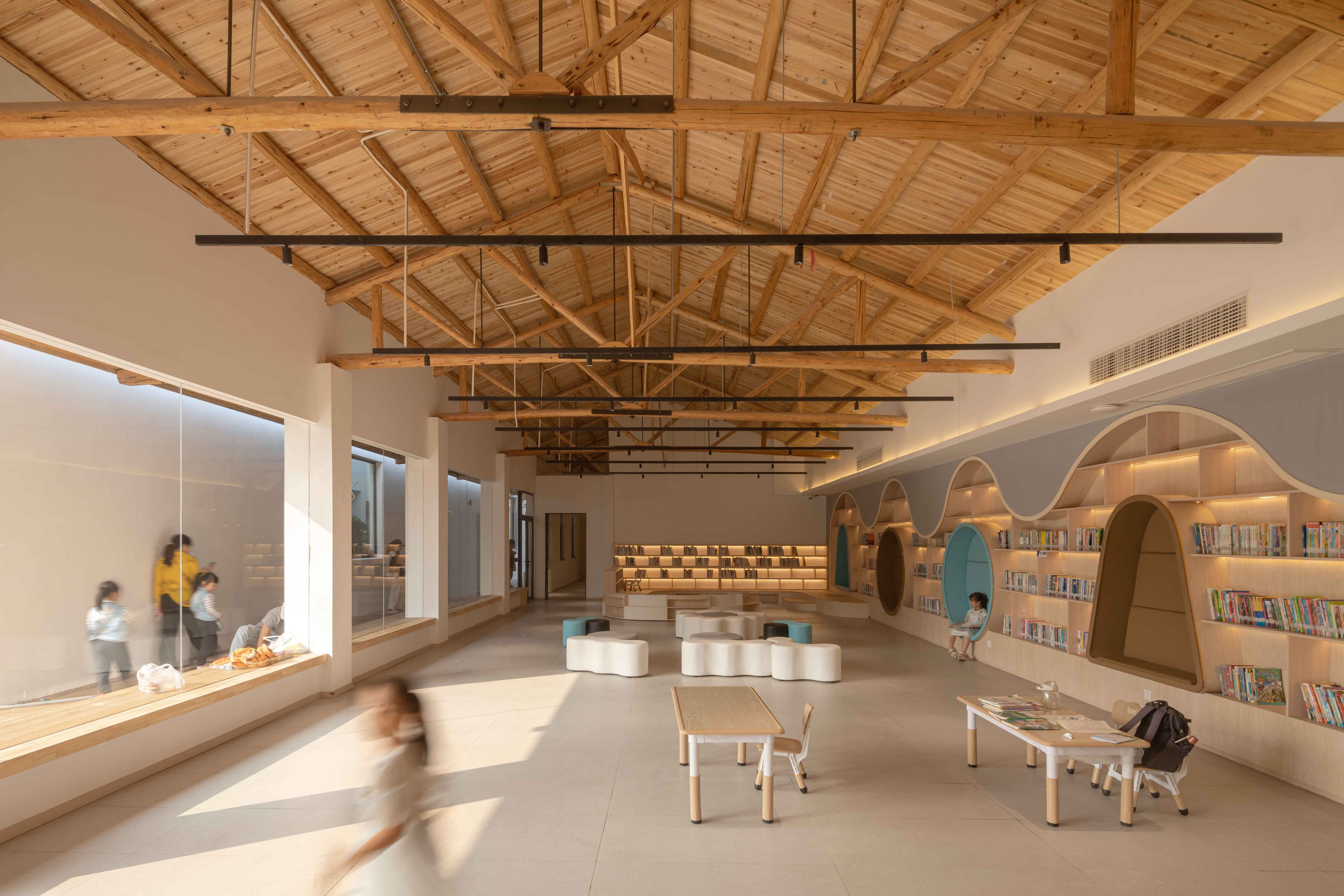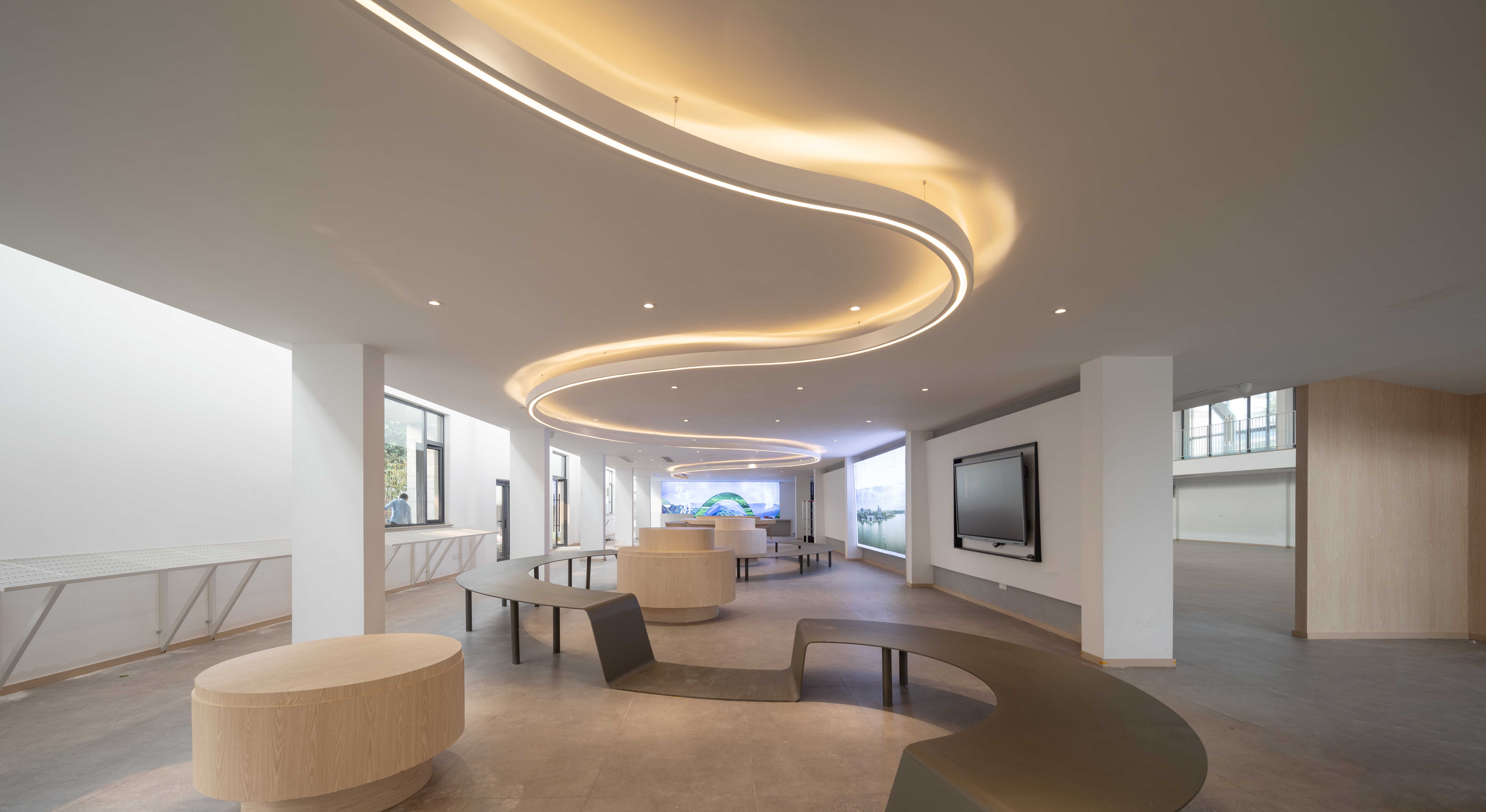This Rural Life Center is located in Tuanshi Village, Xiaonanhai Town, belonging to Longyou Xian in Quzhou. It faces the Qu Jiang River to the south, and if you cross the road from the site, you can see the river view at a glance. The Rural Life Center was constructed with a design approach centered on on-site communication. A new process was adopted to produce the necessary drawings, and discussions about the execution method took place directly on-site. As a public space for local residents, the Rural Life Center was converted from a building that was originally used as a factory into a large and spacious space that can be used for commercial purposes. It provides various functions such as property management services for village residents, agricultural product exhibitions, and agricultural live streaming for technical support. It also has co-working spaces, banquet halls, and multifunctional conference rooms.
