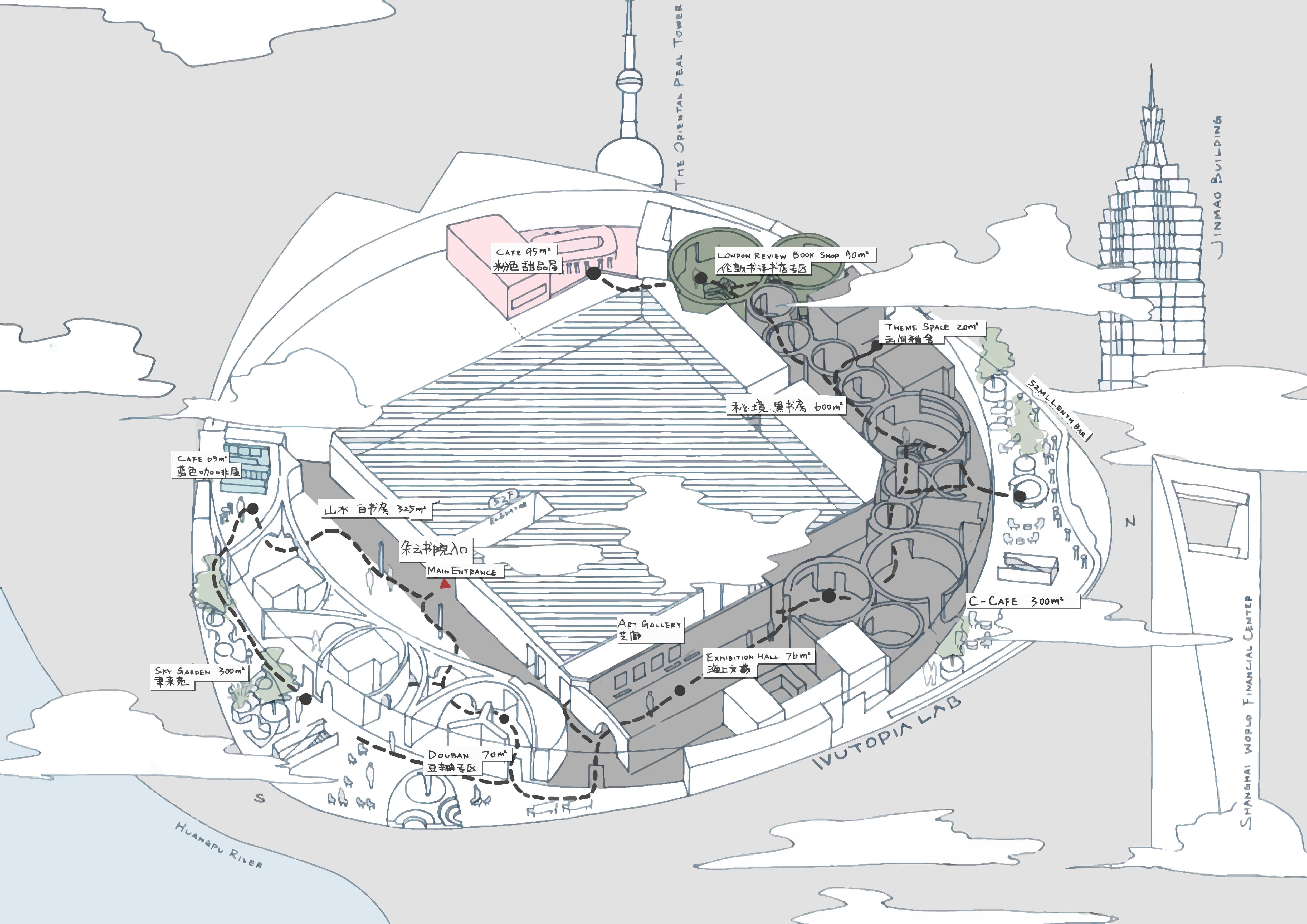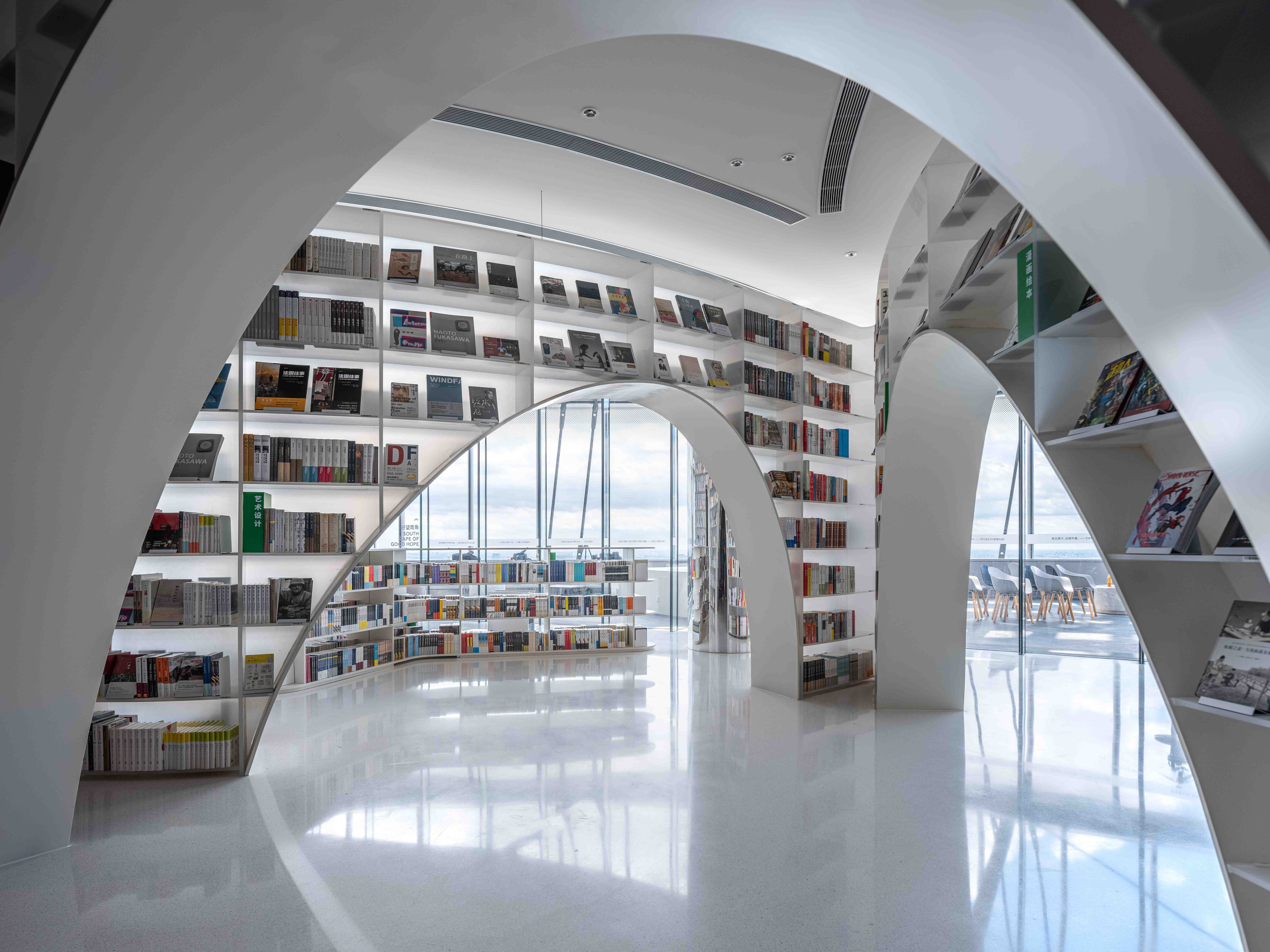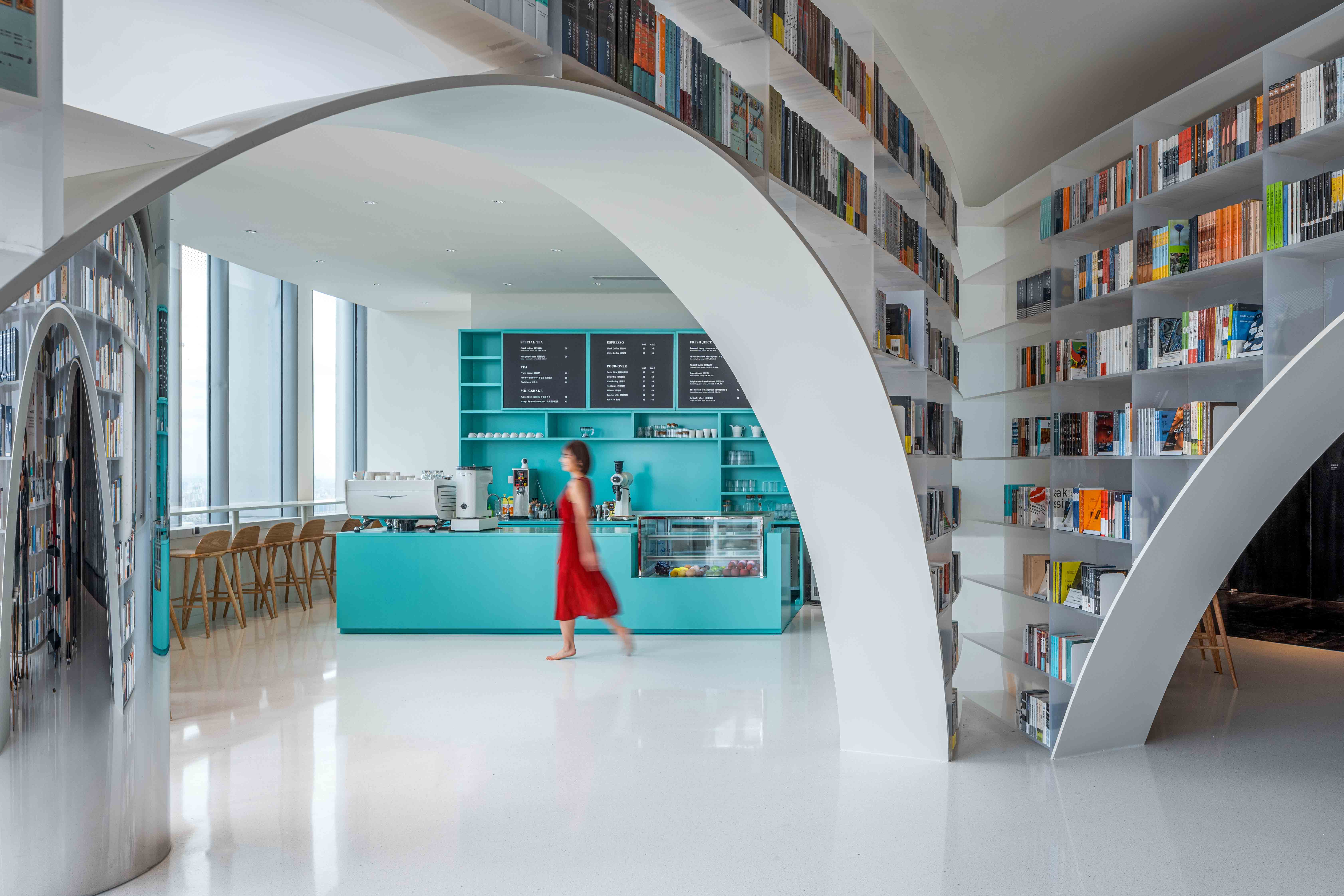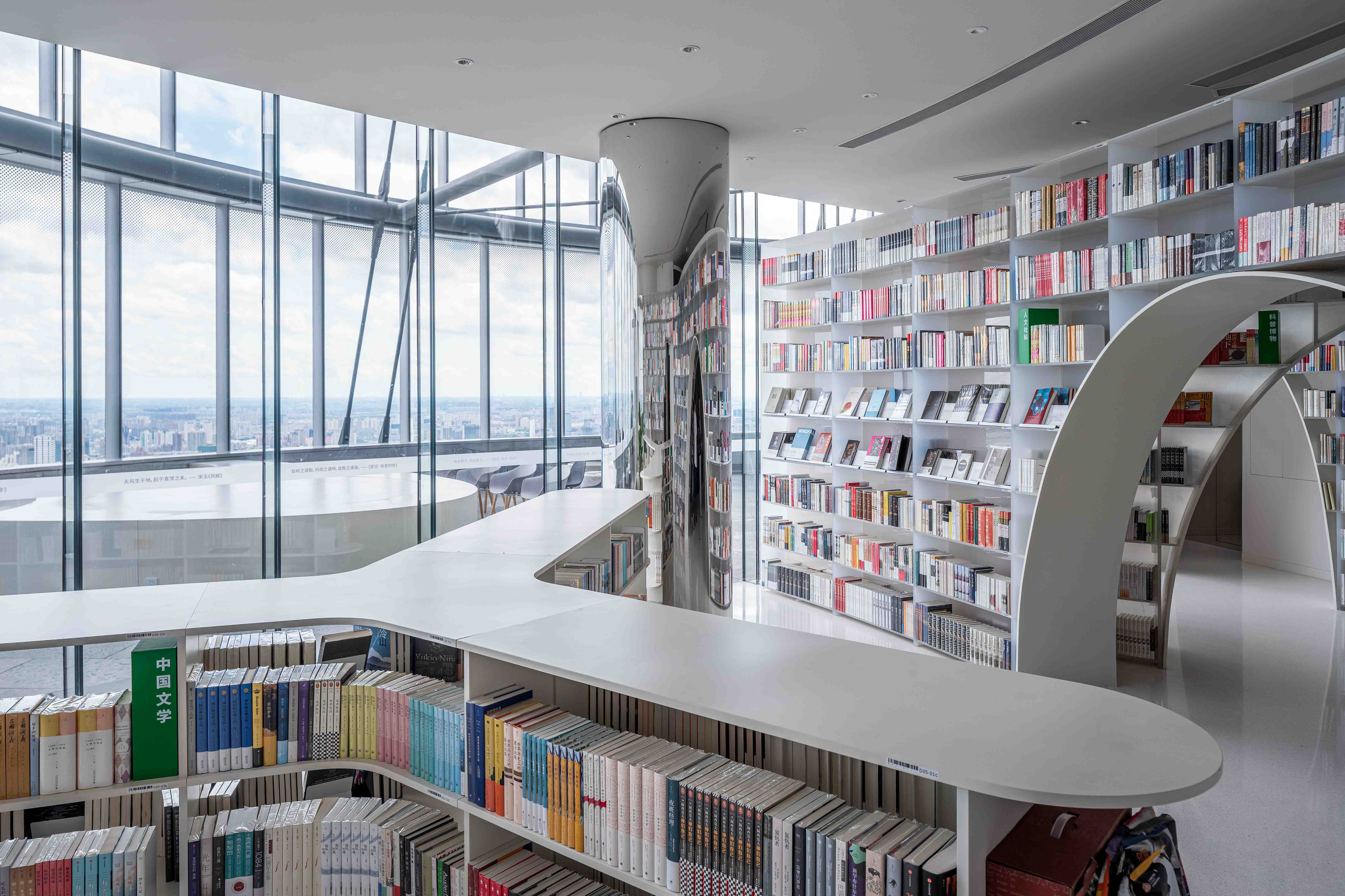 Duoyun Books is located on the 52nd floor of Shanghai Tower, the tallest building in Shanghai. The flagship store is a small cultural complex with seven functions, including a bookstore, lecture hall, exhibition hall, and coffee shop. It covers an area of 2,259 square meters, with 60,000 books and 2,000 products on display. At 239 meters high, it is probably the highest bookstore in China. It is a cultural landmark and an important public cultural space in the vertical city of Shanghai. The gardens on the south side offer spectacular views of the meandering Huangpu River.