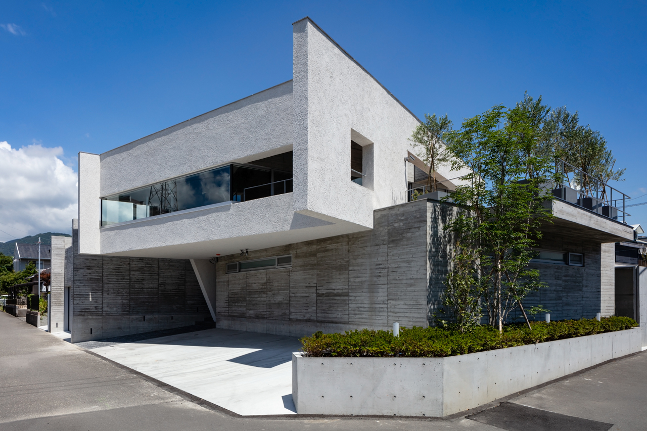 대지는 후지산의 경관을 바라볼 수있는 주거 지역에 있으며, 사각형 형태로 약 310m2의 면적을 가지고 있다. 또한, 도로쪽에서는 강을 마주 보고 있는 대지다. 민가, 공동 주택, 피트니스 스튜디오의 3개의 블록을 연결하는 중정은 집의 공간에 중요한 상호 작용과 깊이를 만들어낸다. 직사각형 프레임속에서 “후지산”을 향해 대각선 축을 따라 세워진 상징적인 벽은 강과 인접한 2층 데크를 통해 집 전체에 공간감과 관대한 아늑함을 제공한다.