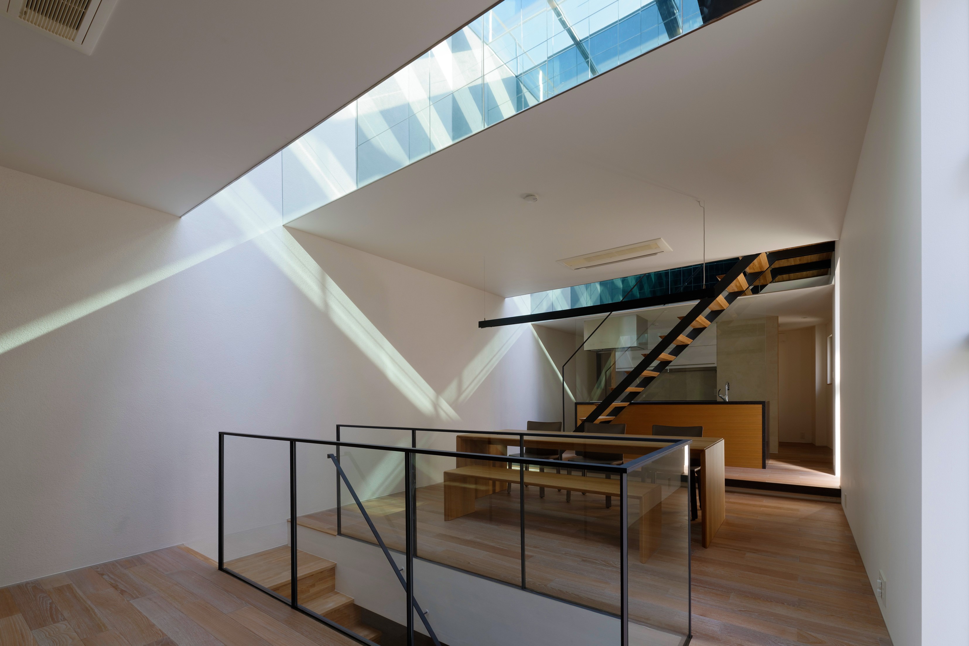 When designing this house, the client’s request was to build a “house where you can feel the sky”. In the congested environment of Tokyo, the answer to this request was to increase the inflow of daylight using ambient light.