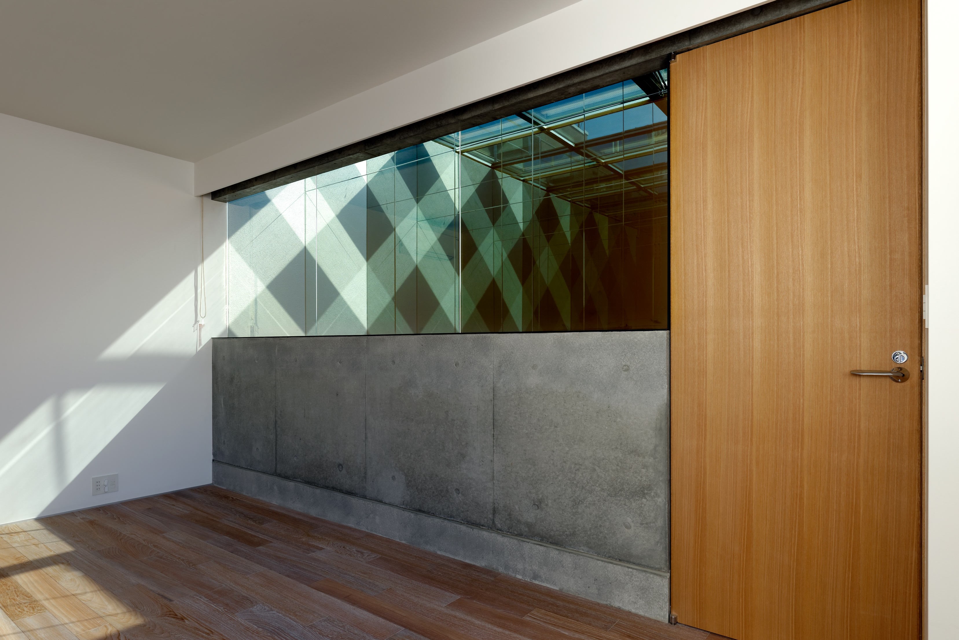 건축주는 이 집을 설계할 때, “하늘을 느낄 수 있는 집”을 지어달라고 요청했다. 도쿄의 혼잡한 환경에서 이 요청에 대한 대답은 톱라이트(Ambient Light)를 이용하여 채광을 늘리는 것이었다. 시원한 아침의 맑은 하늘, 여름의 밝은 햇살, 황혼의 푸른 하늘, 뭉친 눈송이, 비가 온 뒤의 물방울과 같이 하늘은 시시각각 다양하게 변하며, 거울 속으로 보이는 이미지는 무한하게 반복된다. 어떤 순간에는 빛이 벽에 복잡한 패턴을 생성하고, 어떤 순간에는 바다의 색처럼 채색된 하늘을 보여준다. 매 순간의 하늘에서 오는 메시지는 우리에게 구체적으로 다가온다. 이 집은 하늘을 추상화 하는 필터다.