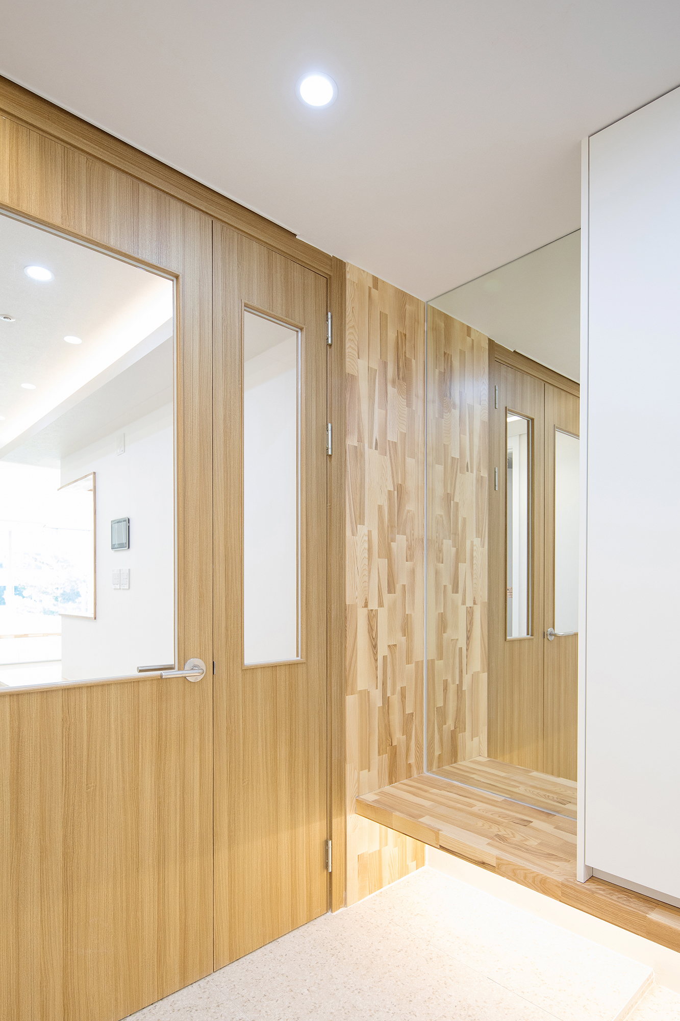 현관에서 거실까지, 다시 거실에서 안방까지 연결되는 복도는 이동만 하는 공간임에도 지나치게 넓고 어두웠다. 이에 이동만 하는 공간이 아닌 무언가를 할 수 있는 공간 혹은 쉬어갈 수 있는 공간으로 구성하였다. 주방에서 요리하는 엄마와 복도의 벤치에서 노는 아이가 서로 마주볼 수 있고, 복도에서 짐을 정리하는 아빠가 거실에서 노는 아이와 대화할 수 있다. 이는 지나가는 동선이 아니라 머무르는 동선을 만들어 각자 존재하던 거실, 화장실, 현관, 주방 등을 하나로 자연스럽게 통합해 사용하도록 하고 있다.