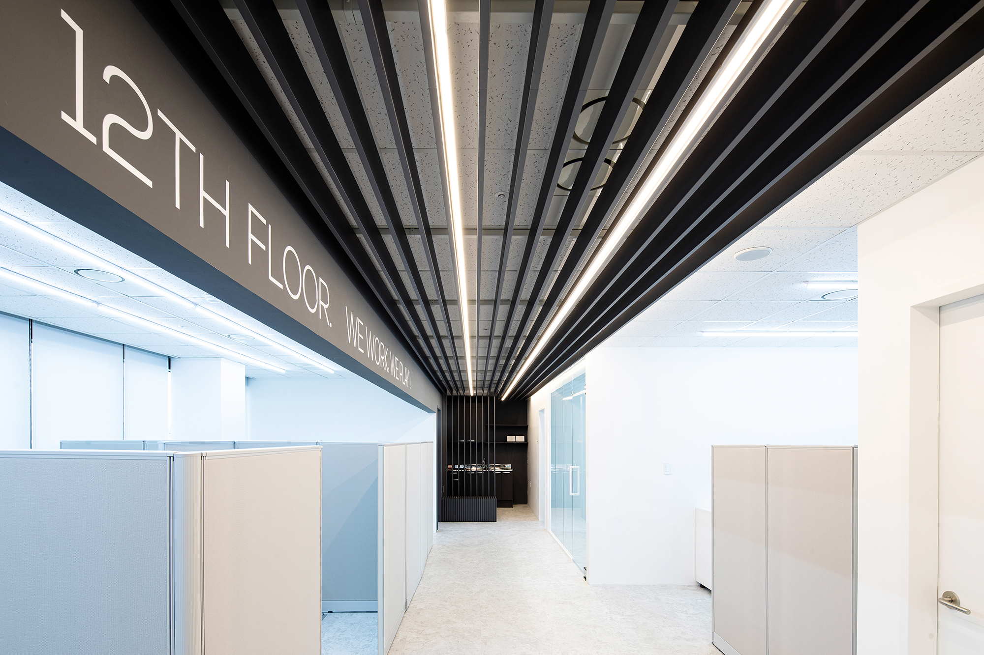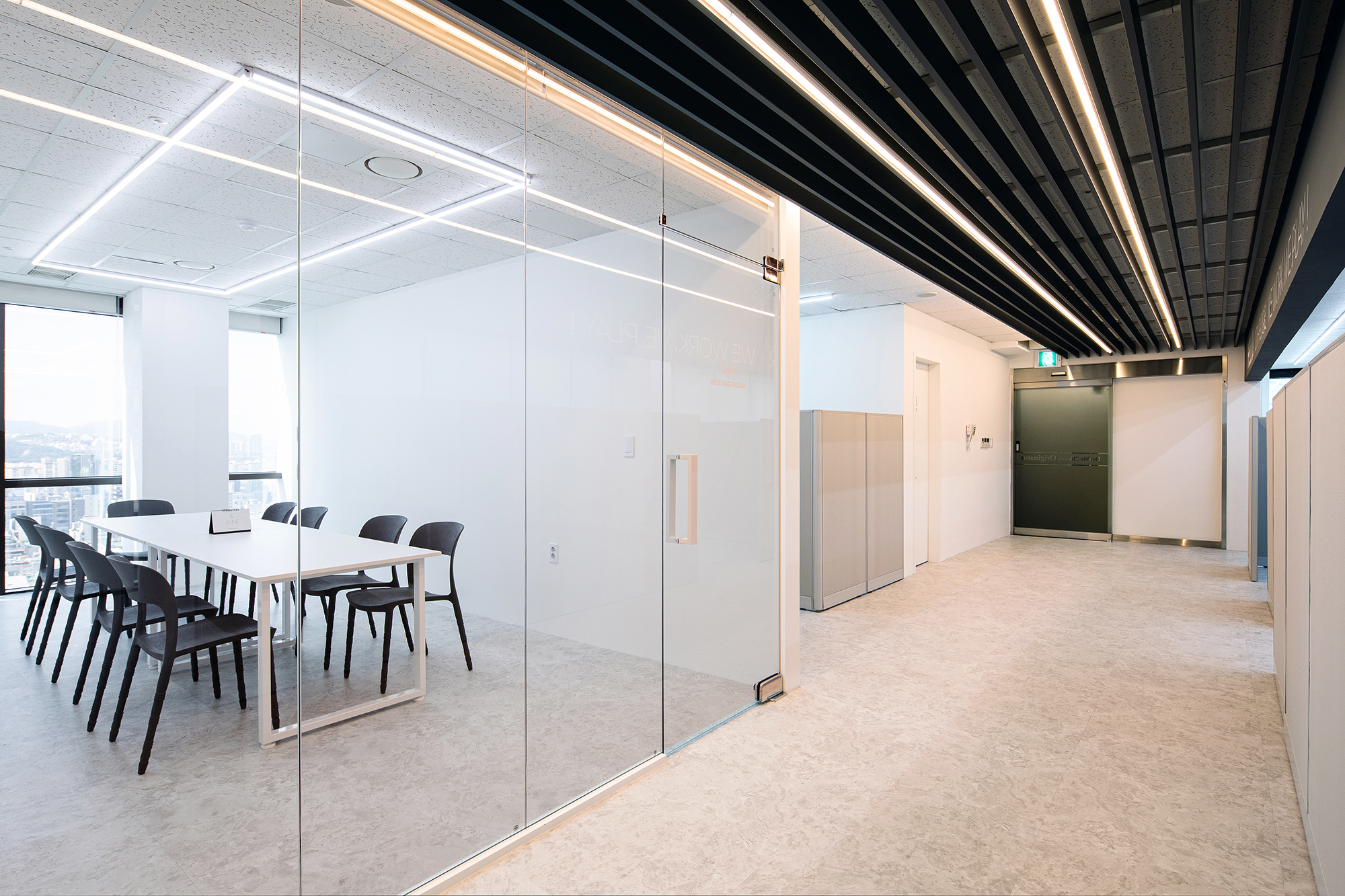 호식이 두마리 치킨 사옥 내 업무공간으로 사무공간, 제품개발실, 연구실, 창고, 탕비실로 구성되어 있다. 일반적인 업무공간과 비슷하지만 주방 타입의 제품개발실이 있고 이를 품평할 회의실이 연결되어 있다. 중앙의 복도를 기준으로 사무 Zone과 제품개발 Zone으로 나뉘고 공용으로 사용하는 탕비실이 위치해 있다. 엘리베이터에서 내려 하루를 온전히 보낼 업무공간으로 향하는 발걸음을 담을 첫 인상을 밝은 인사, Hello로 시작했다. 이는 걸어온 방향, 걸어갈 방향으로 시원하게 뻗은 복도의 짙은 회색 라인들로 그 걸음을 인도한다. 업무공간은 업무를 보는 공간만큼 이외의 복도, 탕비, 홀 등과 같은 다른 사람들과 마주치고 이야기를 나누는 공간이 중요하다. 이런 목적성을 가지지 않은 공간에서 자연스러운 소통과 생각들이 형성되기 때문이다. 이 복도가 자연스러운 직원들의 소통공간이 되길 바란다.