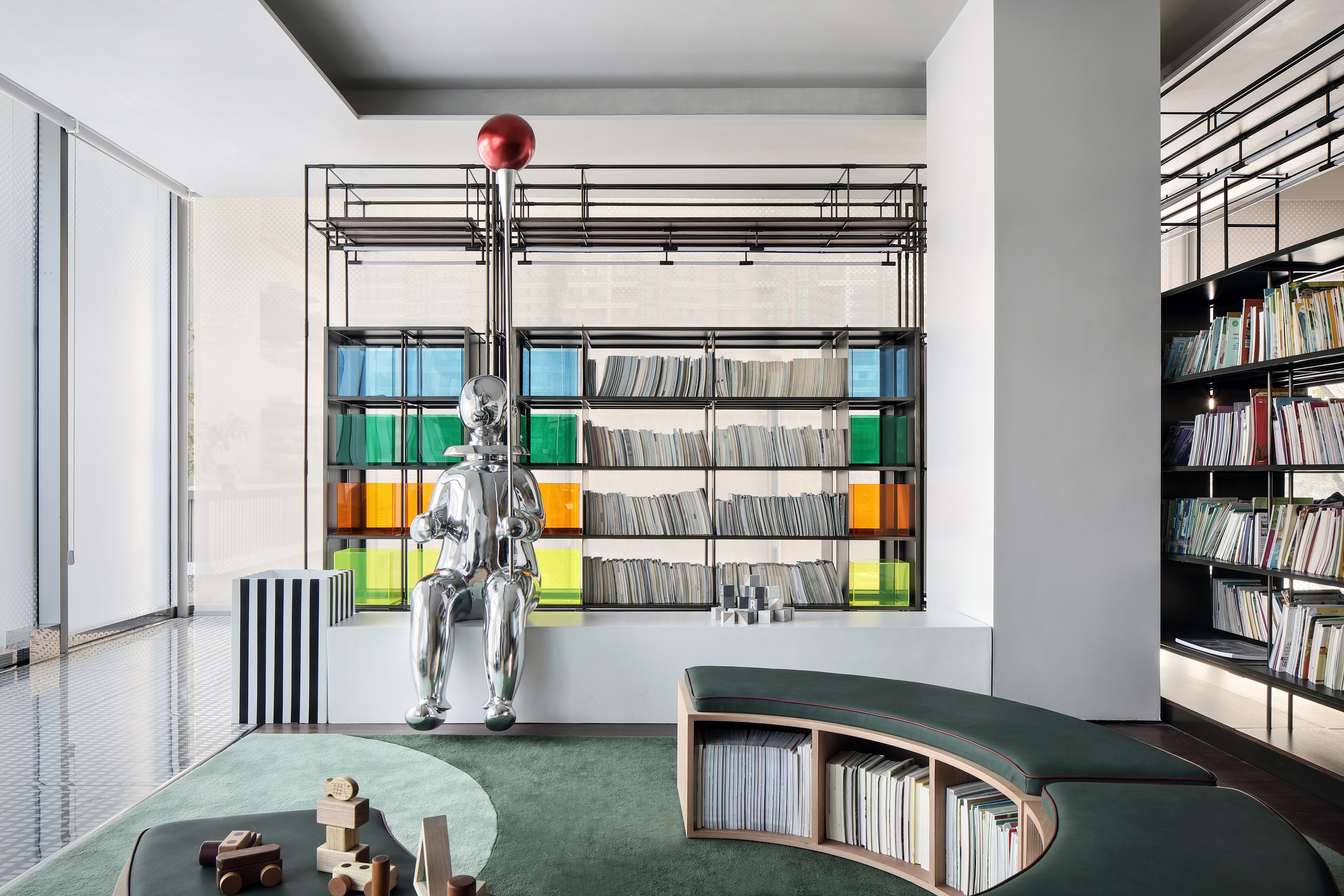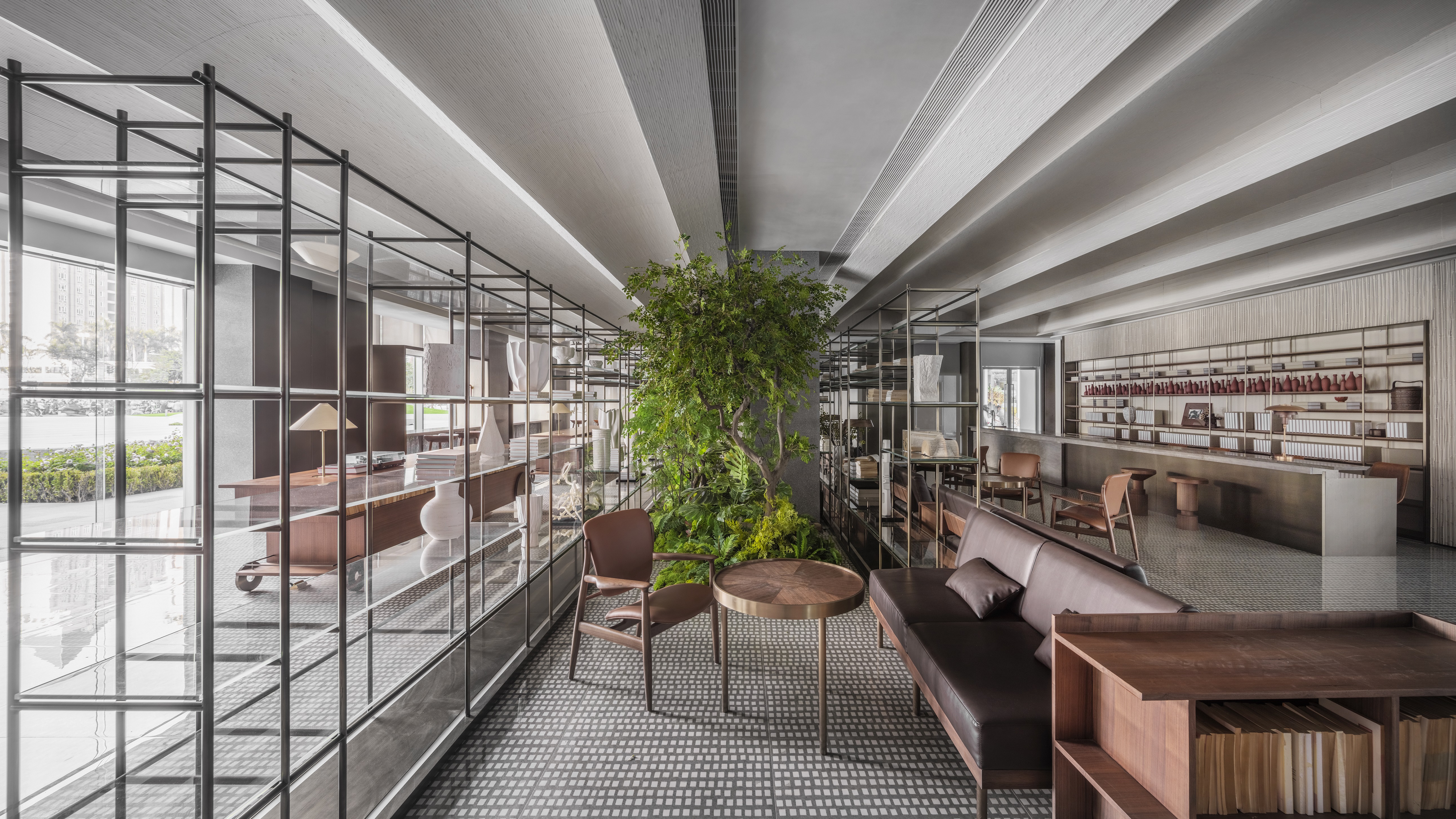 Waterfrom Design, responsible for the design of the Fuzhou Vanke Golden Field of the International Reception Center, considers "gathering" as the main concept and has created a social space where the emotional exchanges of modern society are able to take place. People can naturally gather, stay, and communicate here. Since Building No. 2 was intended to be used for cultural activities of the Fuzhou Public Library and community in the future, it needed to accommodate a large number of books. However, unlike other libraries that use bookshelves for display, this space has many bookshelves arranged in an organic form through design. This library becomes a space in the neighborhood with fences, roads, community courtyards, and squares for events. Accordingly, cultural activities are naturally carried out in the second-floor area.