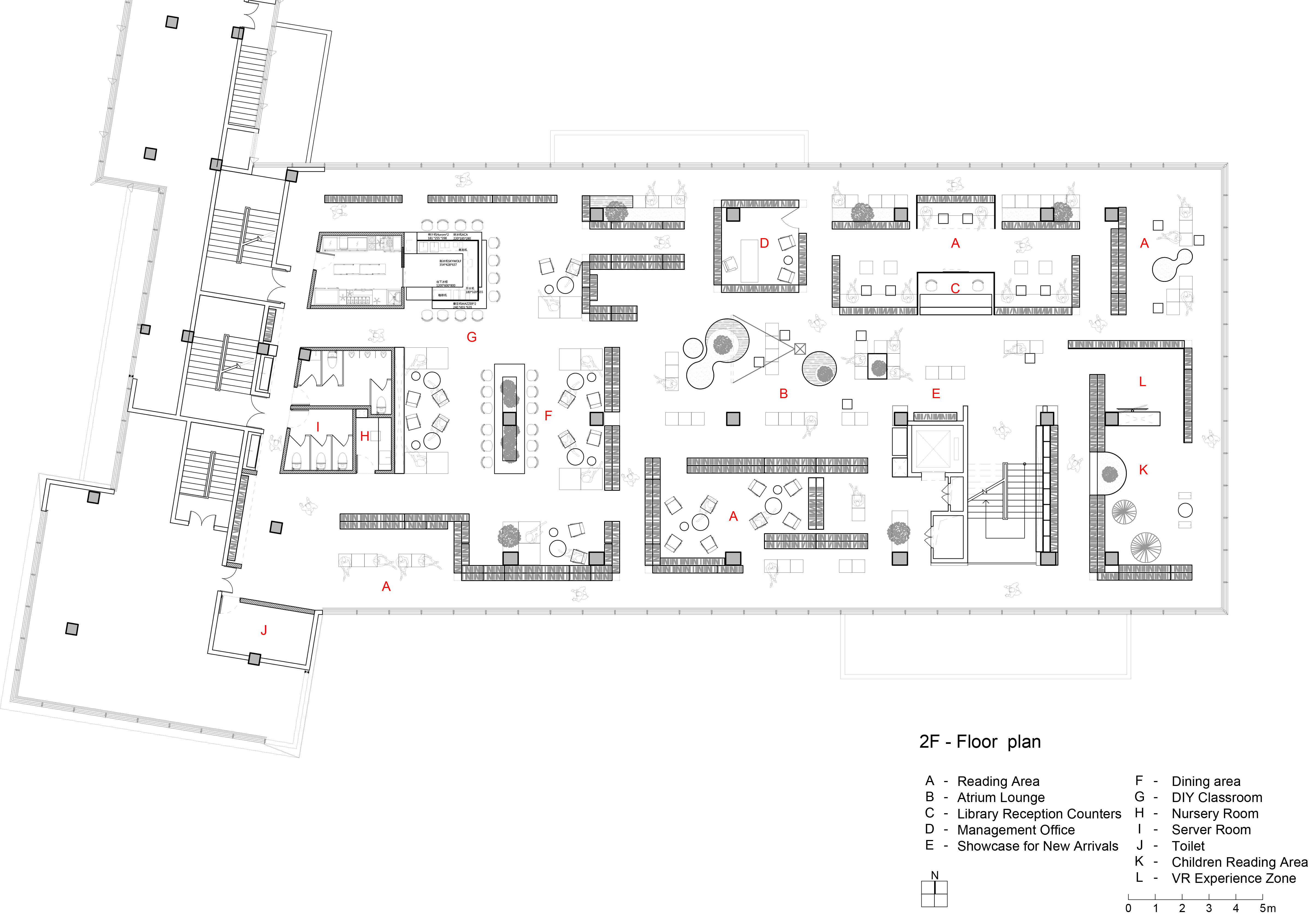 국제리셉션센터의 푸저우 반케 골든 필드(Fuzhou Vanke Golden Field) 디자인을 담당하고 있는 워터프롬 디자인(WATERFROM DESIGN)은 “모임”을 주요 콘셉트로 여기며, 이곳에 현대 사회의 감정적 교류가 이루어지는 사회적 장을 구축했다. 이곳에서 사람들은 자연스럽게 머무르고, 모이고, 소통할 수 있다. No. 2 빌딩이 미래에 푸저우 공공도서관과 커뮤니티의 문화 활동을 위한 곳으로 사용될 예정이었기 때문에 이곳은 많은 책을 수용할 수 있어야 했다. 하지만 이곳은 책꽂이의 진열을 사용한 다른 도서관들과는 다르게 디자인을 통해 많은 수의 책꽂이들을 유기적인 형태로 배치했다. 동네에서 이 책꽂이는 울타리, 길, 커뮤니티의 안뜰, 행사를 위한 광장이 있는 공간이 된다. 이러한 계획에 따라 자연스럽게 문화적 활동은 2층 규모의 공간으로 표현됐다.
