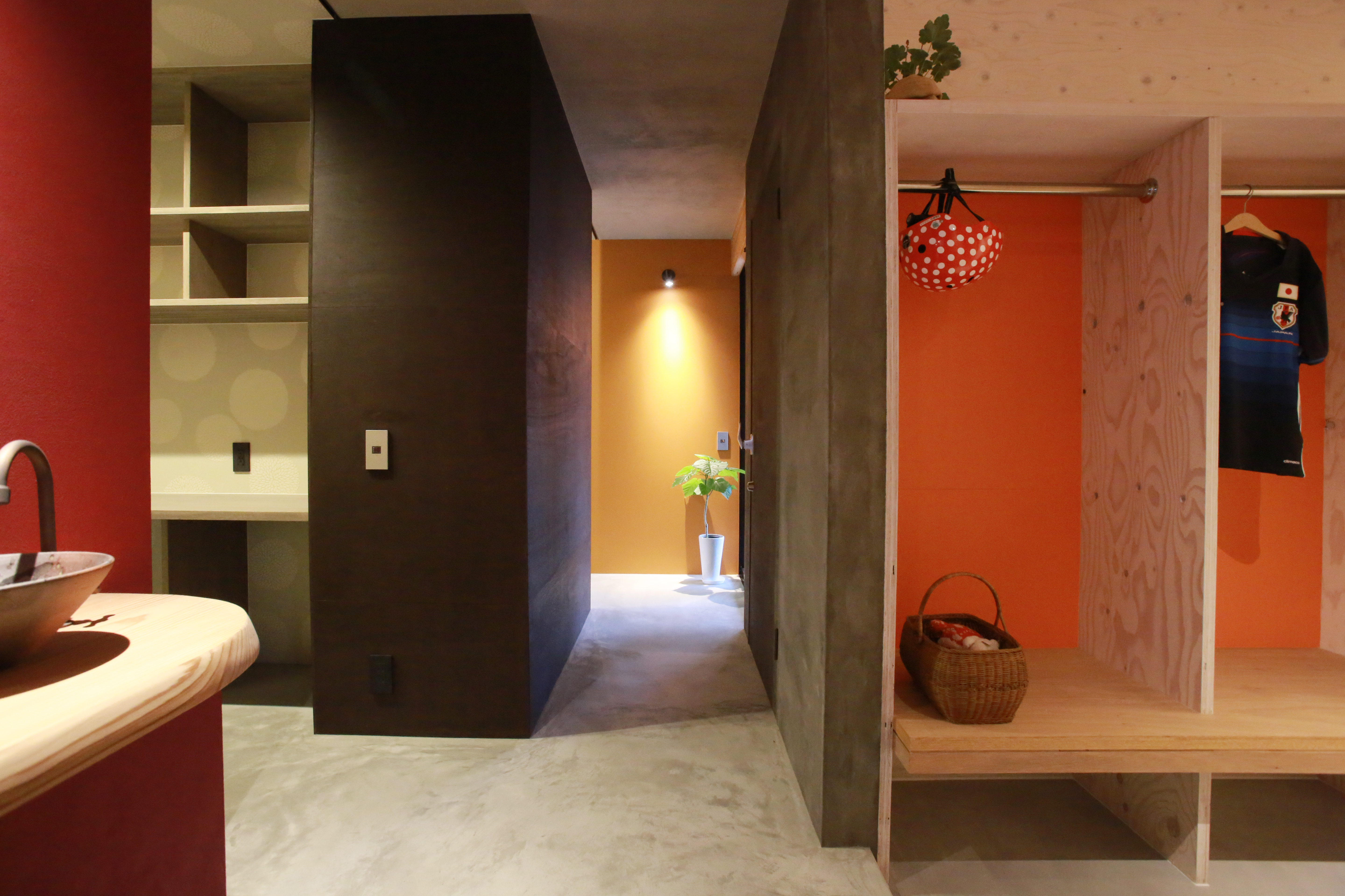 이 집은 따듯한 일본 남부 사가현에 지어졌다. 보통 단층 집에서 발견되는 단조로운 동선을 피하면서 중앙에 만들어진 팬트리를 중심으로 동선을 계획했다. 이러한 동선의 변화는 거주자의 일상에 유연함과 융통성을 부여한다. 건축주가 집의 미래에 대해 다양한 계획을 가지고 있었기 때문에 건축가는 최대한 많은 라이프스타일의 가능성을 가진 집을 설계하고자 했다. 집을 반으로 가르는 낮은 지붕은 테라스에 깊은 덮개를 제공한다. 한껏 낮춘 지붕은 작업대를 밟고 지붕에 올라갈 수 있을 정도로 땅에 가까이 다가와 있다. 더 나아가, 2층에 설치된 작은 다리는 집 안과 지붕을 연결해 지상에서부터 옥상까지 연결하는 경로를 더했다. 이를 통해 3차원적으로 연결된, 아이들을 위한 커다란 놀이터가 완성됐다.