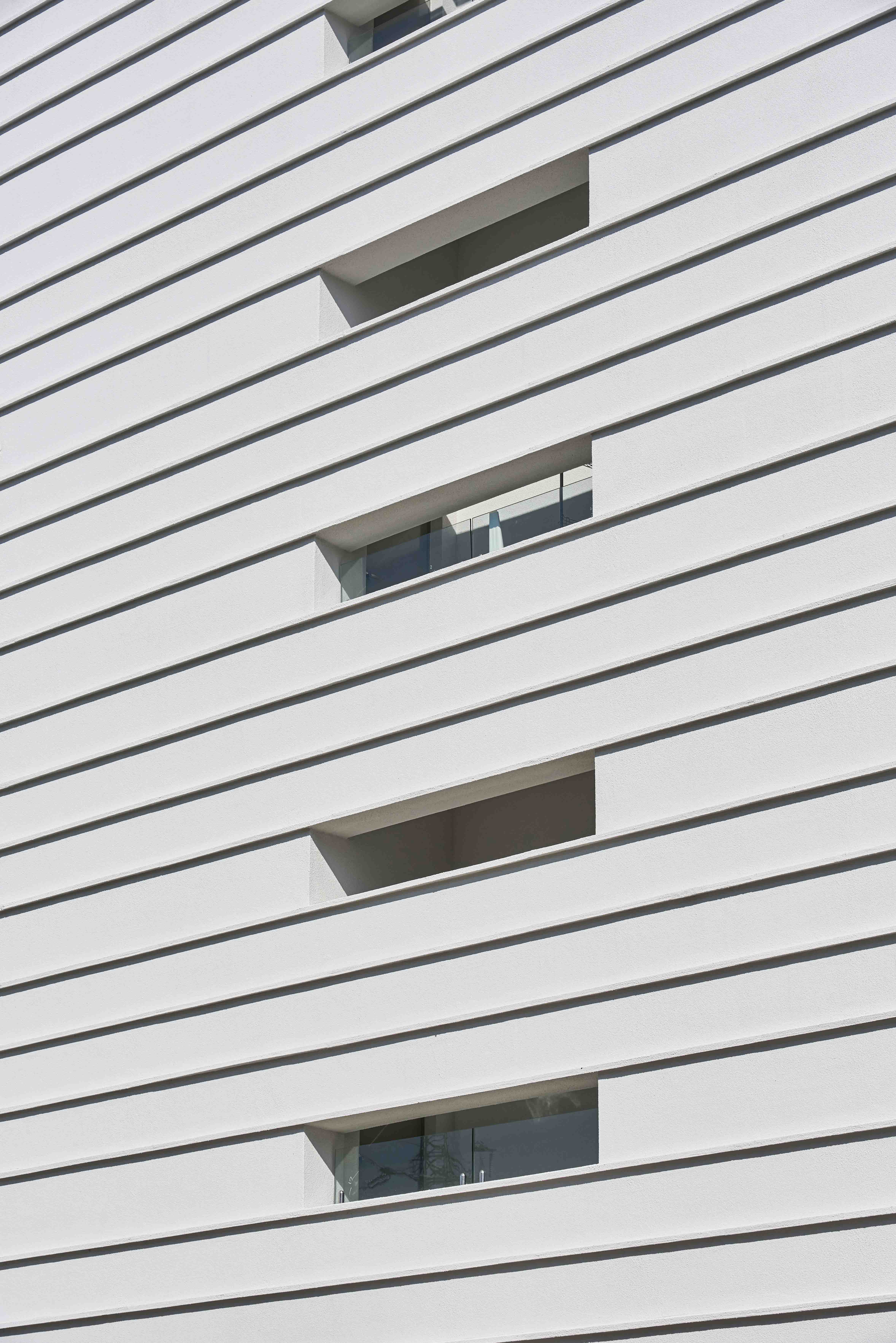 대상지는 지구단위계획구역으로 규모가 5층으로 제한되어 있다. 리메드 의장의 첫 번째 요구 조건인 커 보이는 사옥의 모습이란 이러한 규제로 인하여 어려운 난제가 되었다. 우리는 지구단위에서 허용한 4.5m의 층고를 전 층에 적용하기로 했다. 블랙박스 같은 비밀스러운 모습이었으면 좋겠다는 의장의 바람을 받아 필요한 환기와 채광을 위한 최소의 창만을 두기로 했고 그 창은 층 당 2열로 배치했다. 층의 구분을 모호하게 만들 목적과 뇌의 주름을 표현한 외부의 패턴 안에 10열의 창이 배열됐다. 여기에 높은 층고의 효과가 더해져 건물은 5층이 아닌 10층의 규모처럼 보이게 된다. 우리는 건물의 전·후면에 규칙적이고 날카로운 주름을 만들었다. 이 주름은 뇌 주름의 은유이며 단순한 매스에 생기를 불어 넣는 장치이다. 주름이기 위해선 면의 끊어짐 없이 이어져야 했고 그러한 이유로 마감재의 선택에 있어 스토벤텍 시스템은 낯설고 모험적이었지만 결과적으로 탁월한 선택이었다. 서향의 큰 도로에 면한 주름은 늦은 오후부터 해질 때까지 낮은 색온도의 빛과 그림자의 움직임이 더해져 풍부한 표정을 만든다.