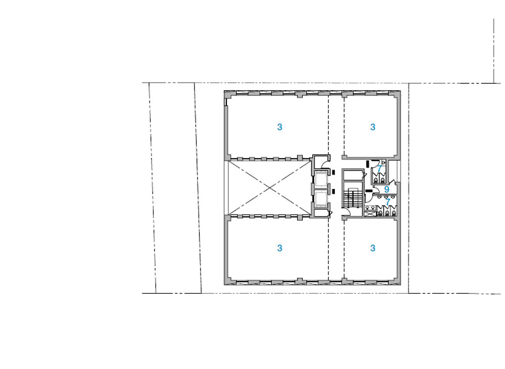 최대한의 볼륨을 만들어내기 위해 사옥은 그 중심에 중정을 품는다. 이 중정은 보행자도로변으로 공공 장소로 열려있어 자칫 배타적으로 보일 수 있는 건물의 인상을 상쇄하며, 동네에 그늘 있는 마당을 제공한다. 중정이 파고들어 드러난 속살은 외부의 백색 마감과 달리 질감 있는 벽돌이다. 이 대비는 중정이 도시에 속한다는 것을 명확히 드러낸다. 중정과 1층 내부 공간과의 관계는 다소 소극적이다. 적극적 관계는 오히려 상부 층에서 드러난다. 천공광의 편안한 빛은 건물 내부로 들어와 편안한 업무 환경을 제공한다. 단순하고 거대한 매스가 날씨와 시간의 변화를 담아내며, 다채로운 표정으로 도시에 말을 거는 건축물이 되길 기대해 본다.