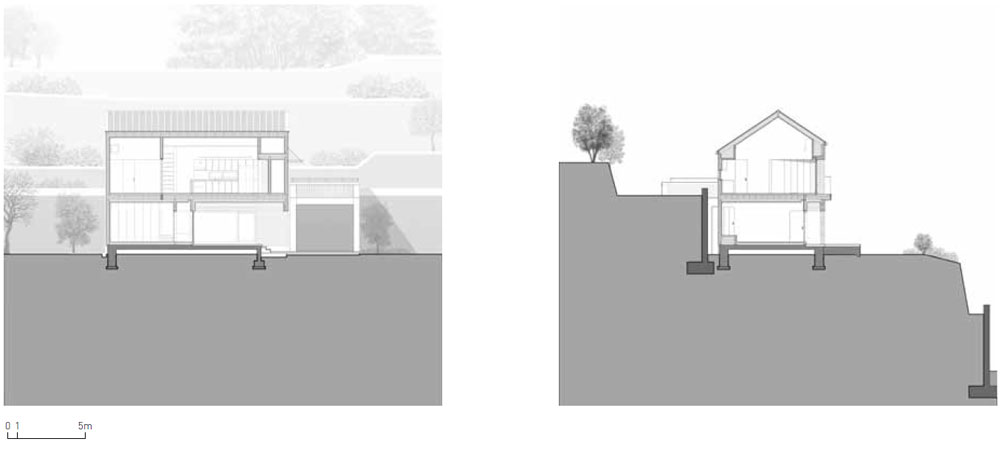 조그만 인간 존재 의미를 거대한 자연과 병치시켜 유장한 흐름 속에 삶도 죽음도 아무것도 아닌 게 되는 그런 집. 그것을 이루기 위해 먼저 대지가 위치한 계룡산의 뛰어난 자연경관을 활용하기로 하였다. 이 집의 모든 거주하는 방들은 산을 면하는 쪽에 배치하였다. 거실과 서재에는 바닥부터 시작되는 큰 창으로 넉넉하게 계룡산 능선을 끌어들였다. 특히 2층에 위치한 거실은 창을 향해 점점 열리는 각도의 벽을 이용해 더 넓은 시야를 확보하고, 방해가 되지 않도록 발코니 난간도 최대한 투명하게 디자인 하였다. 안방과 손님방의 창은 가장 오래 머무르는 가구(침대)의 높이를 기준으로 하늘과 산과 숲이 다가오게 하였고, 다락의 천창은 밤하늘의 별을, 계단실 창은 걸어 올라오면서 계룡산 최고봉인 삼불봉을 마주한다.