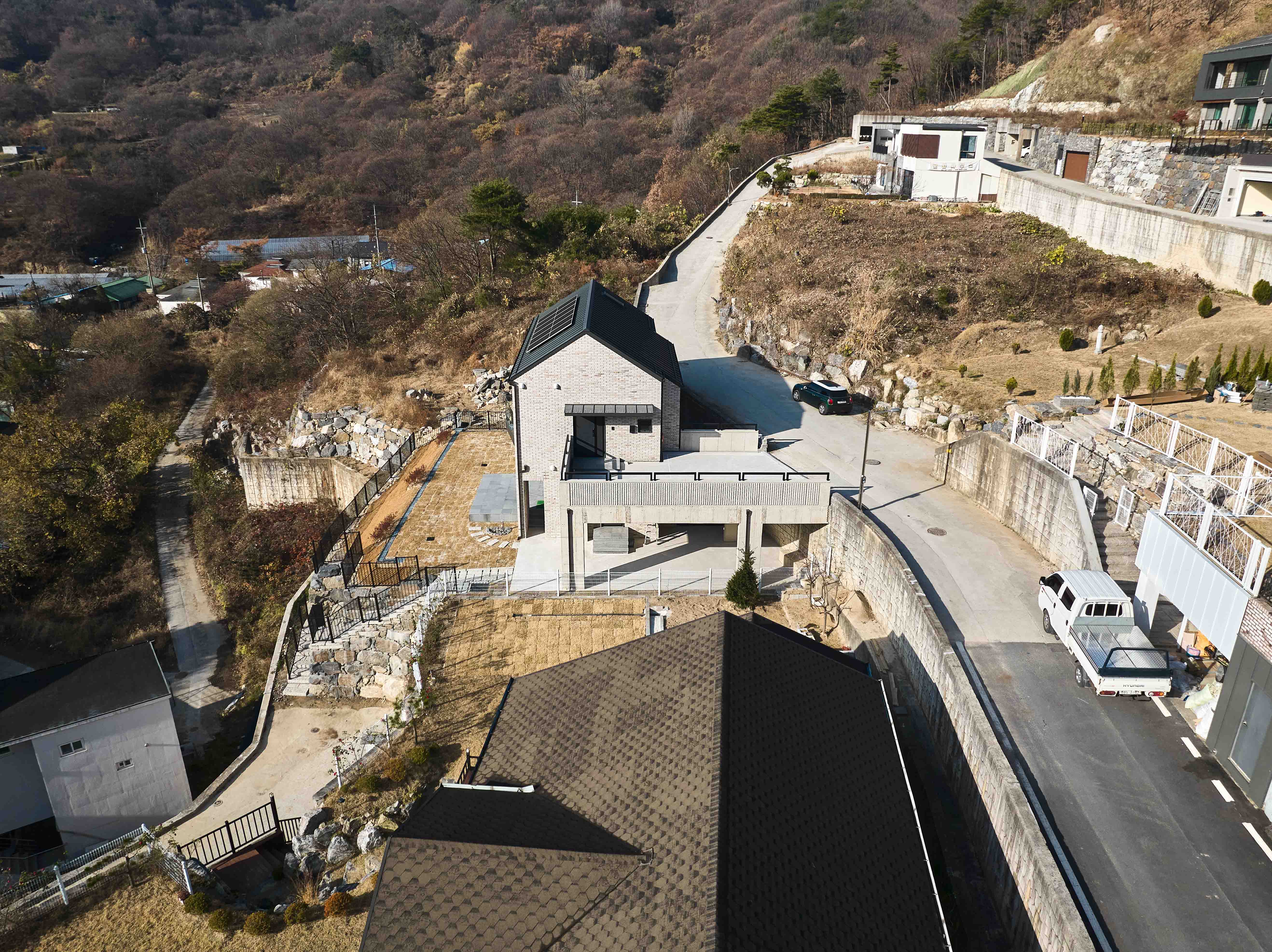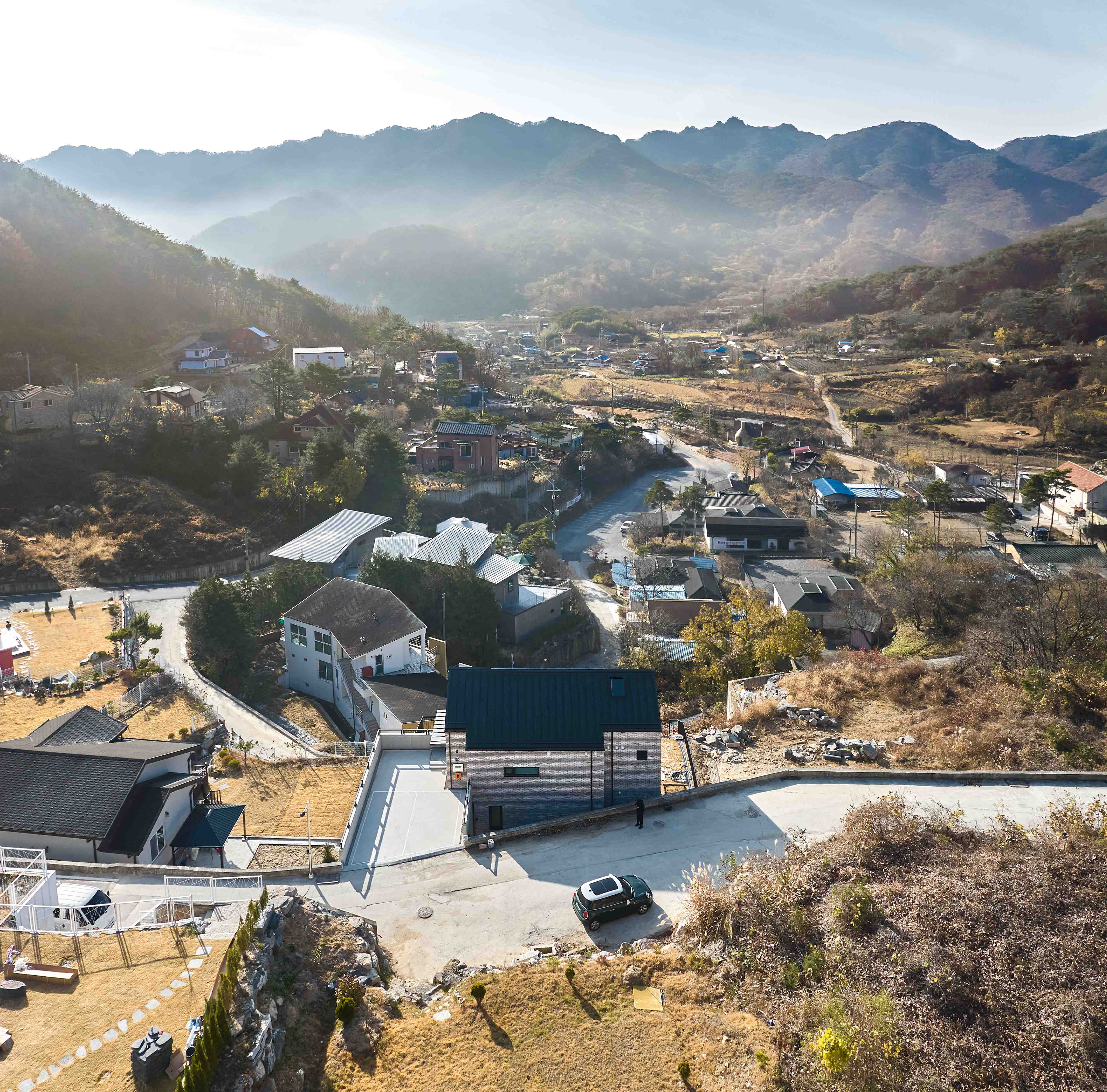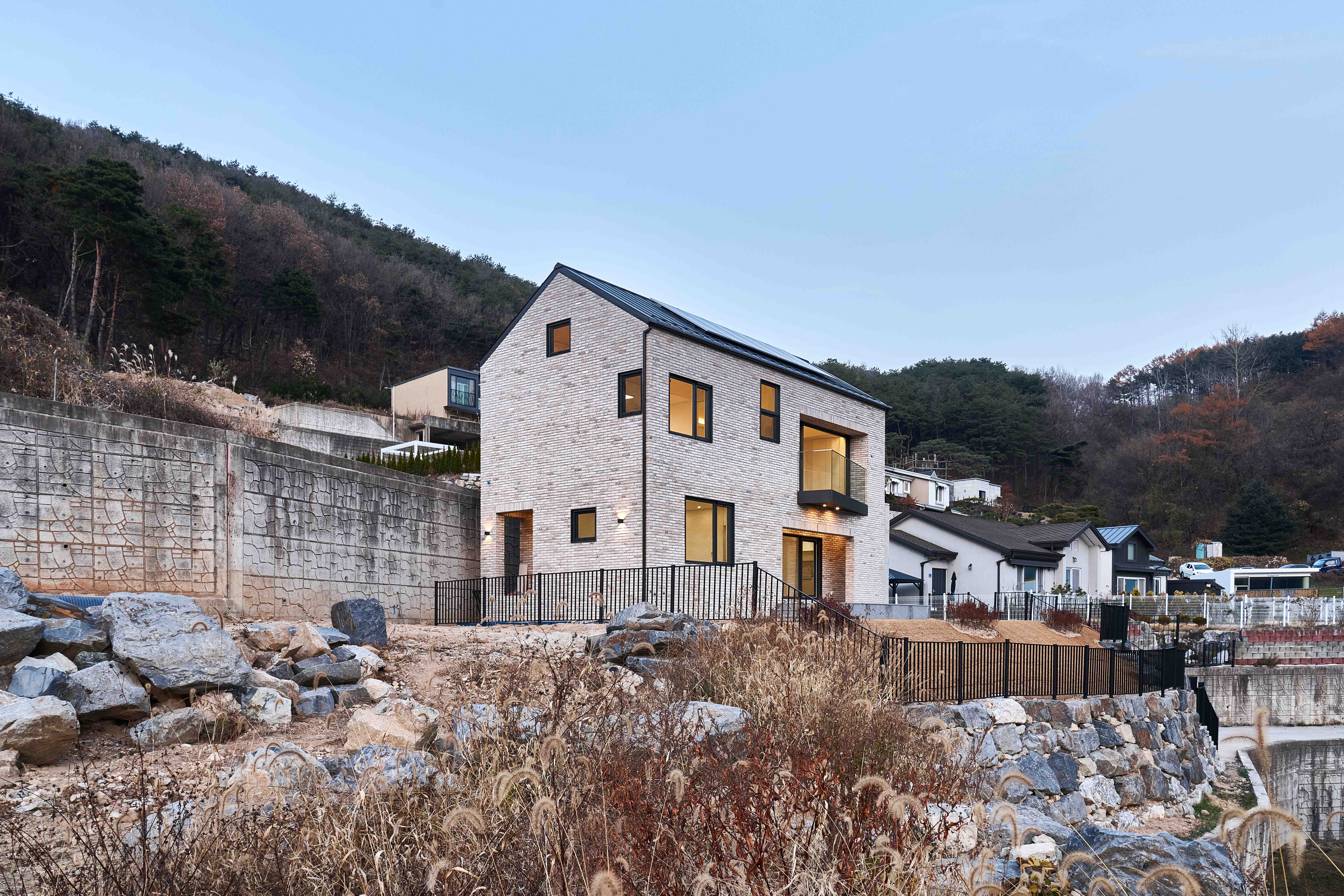 Musimjae is a small house with a simple and unadorned design, covering an area of less than 198 square meters. However, it responds to the topography of the site and has a different interior space height from typical houses due to the gable roof structure. The materials, colors, and details were meticulously selected, but the spatial profile is understated yet elegant, offering rich and varied perspectives. The aim was to have just the necessary elements, nothing more, nothing less. Nonetheless, it is hoped that this dwelling, which lacks any excess, embodies the discerning mind of the owner who sought to achieve a nonchalant atmosphere