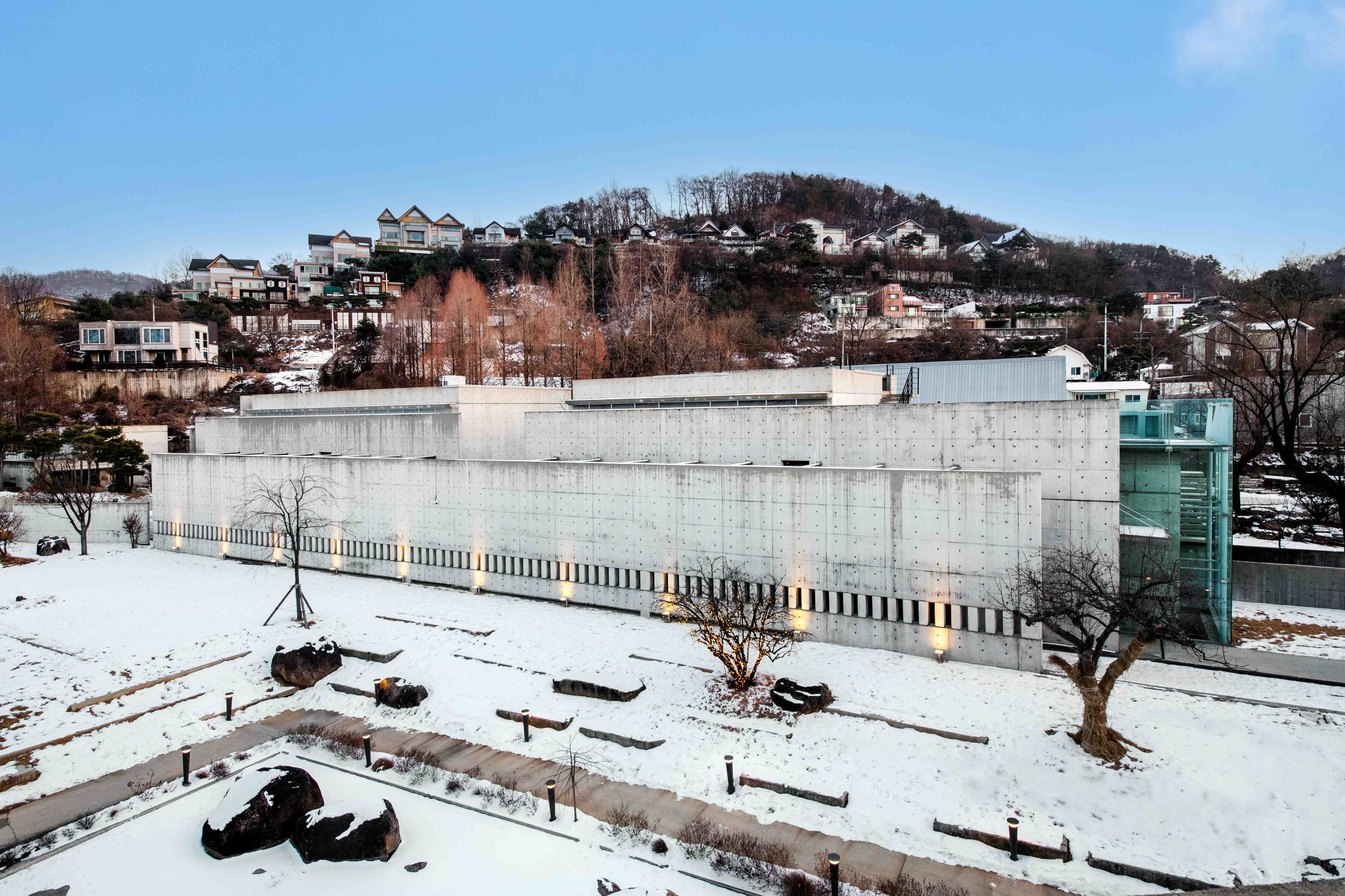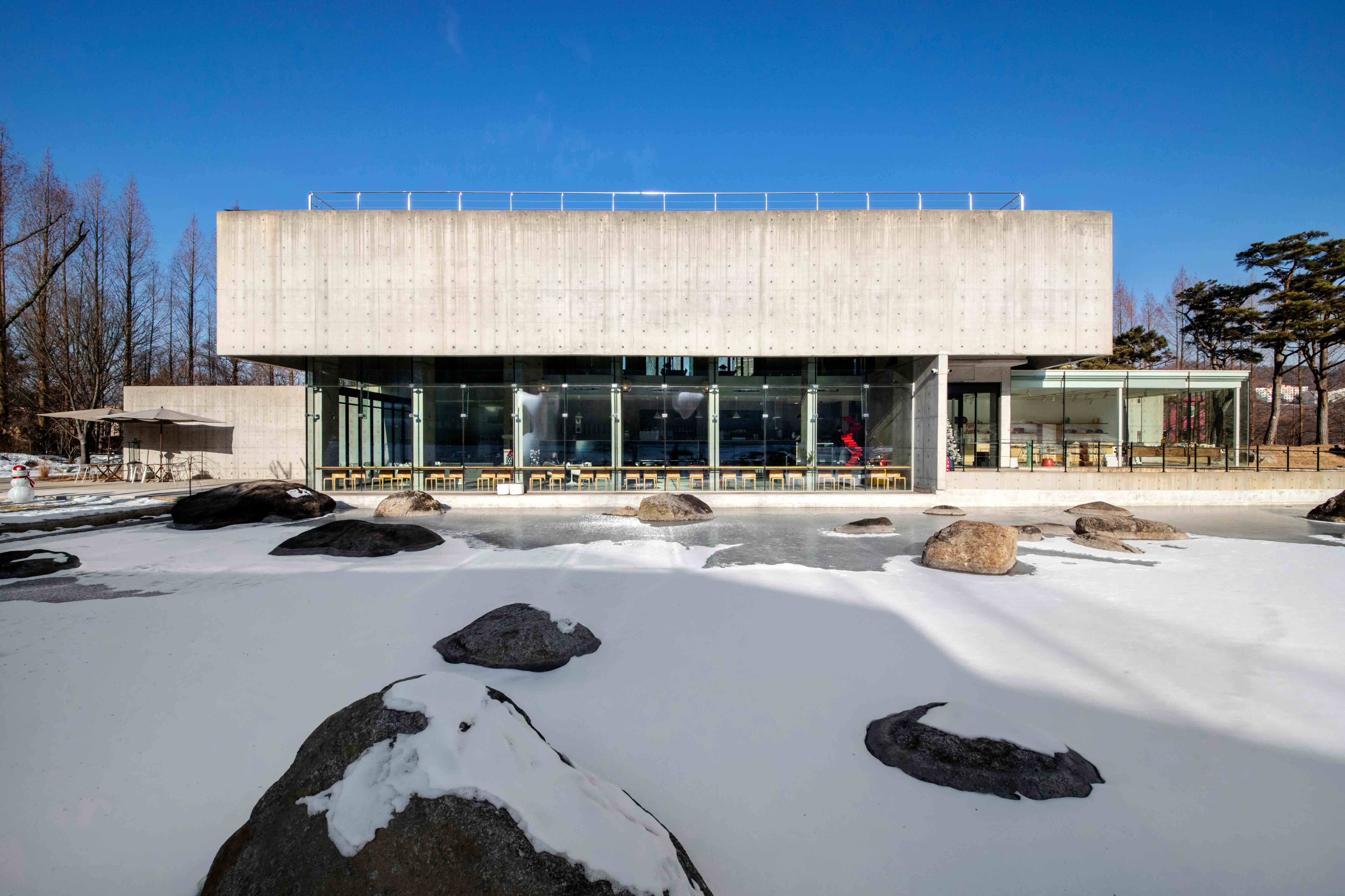 This project was carried out as a collaborative effort. One day, we received a proposal from Professor Kim, Gae-cheon, who was then the representative of Lee Do Architecture and is currently a professor at Kookmin University, to work together on a small private art museum project in Yangpyeong. Despite the rarity of such a project, we decided to collaborate and even moved our office to the site to work on it. Originally known as the “Yangpyeong 00 Gallery” project, it expanded to include an exhibition hall and restaurant, management residence and warehouse, and a hanok exhibition hall. As more land was acquired, five projects were carried out simultaneously, including the addition of a glass pavilion, gallery storage, and café.