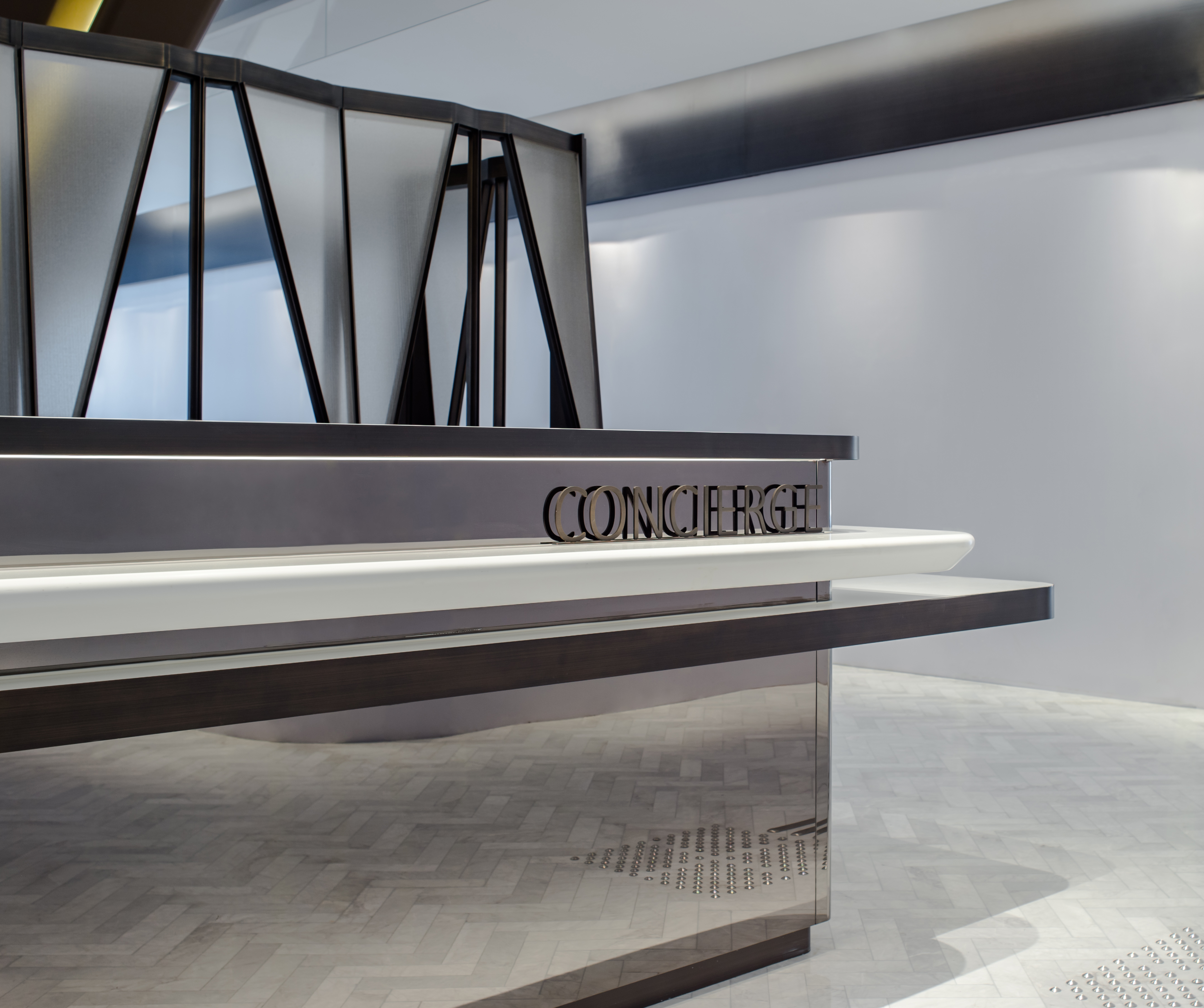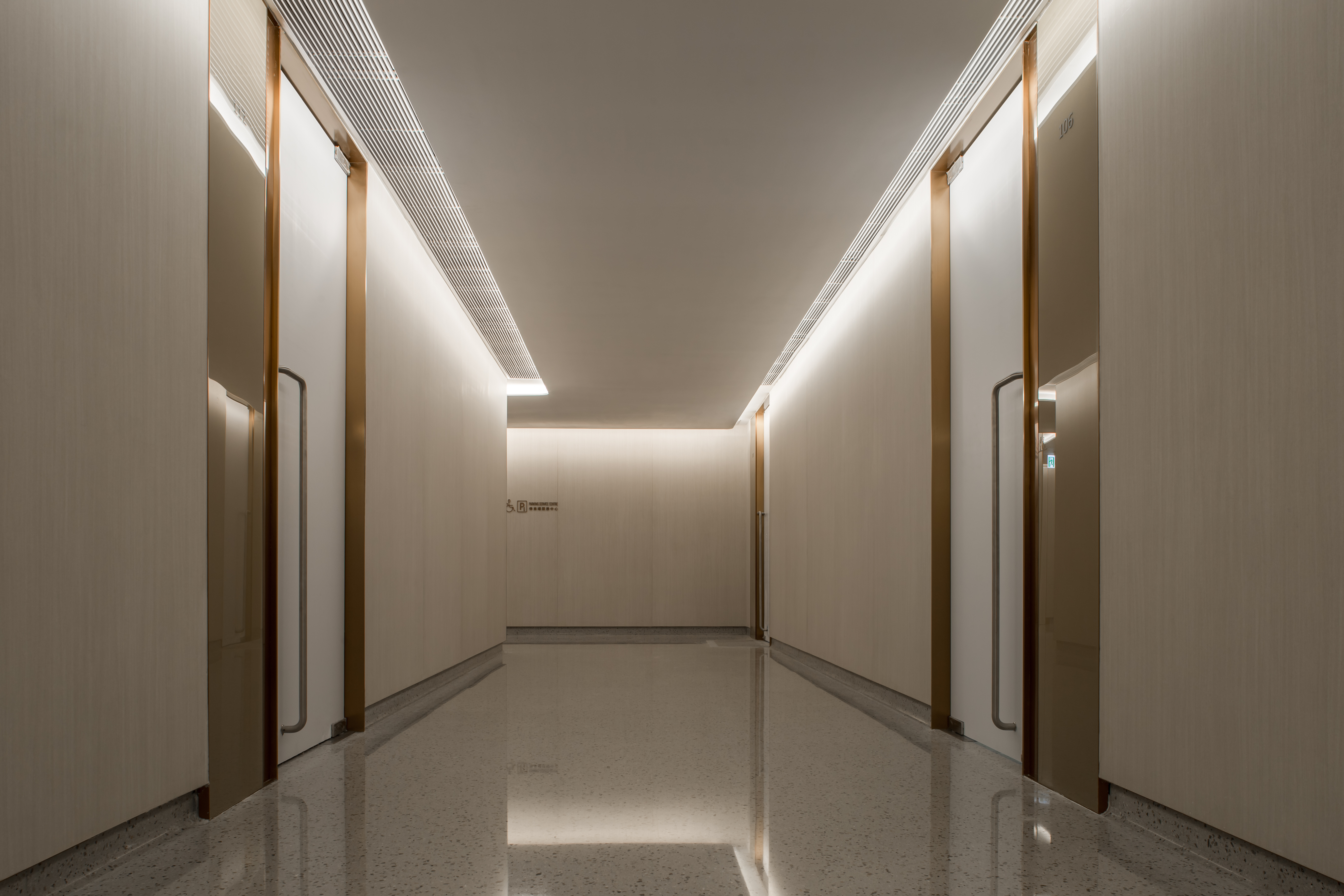 Built with a unique design for Hong Kong's well-being and health industry, the 20-story H Zentre is located in the heart of Tsim Sha Tsui. There are two floors selling beauty products, 10 floors consisting of medical and beauty clinic facilities, and F&B facilities on the top five floors. It is easy to clean using smooth flooring and walls commonly used in hospitals, and it is characterized by rounded corners with a design that considers the efficiency of the working movement. White and brass colors create a healthy and hygienic look with modern and luxurious textures. Automatic doors and fixtures provide out-of-touch access to most facilities and are suitable for buildings in cities that require distancing in their lives due to infectious diseases such as COVID-19.